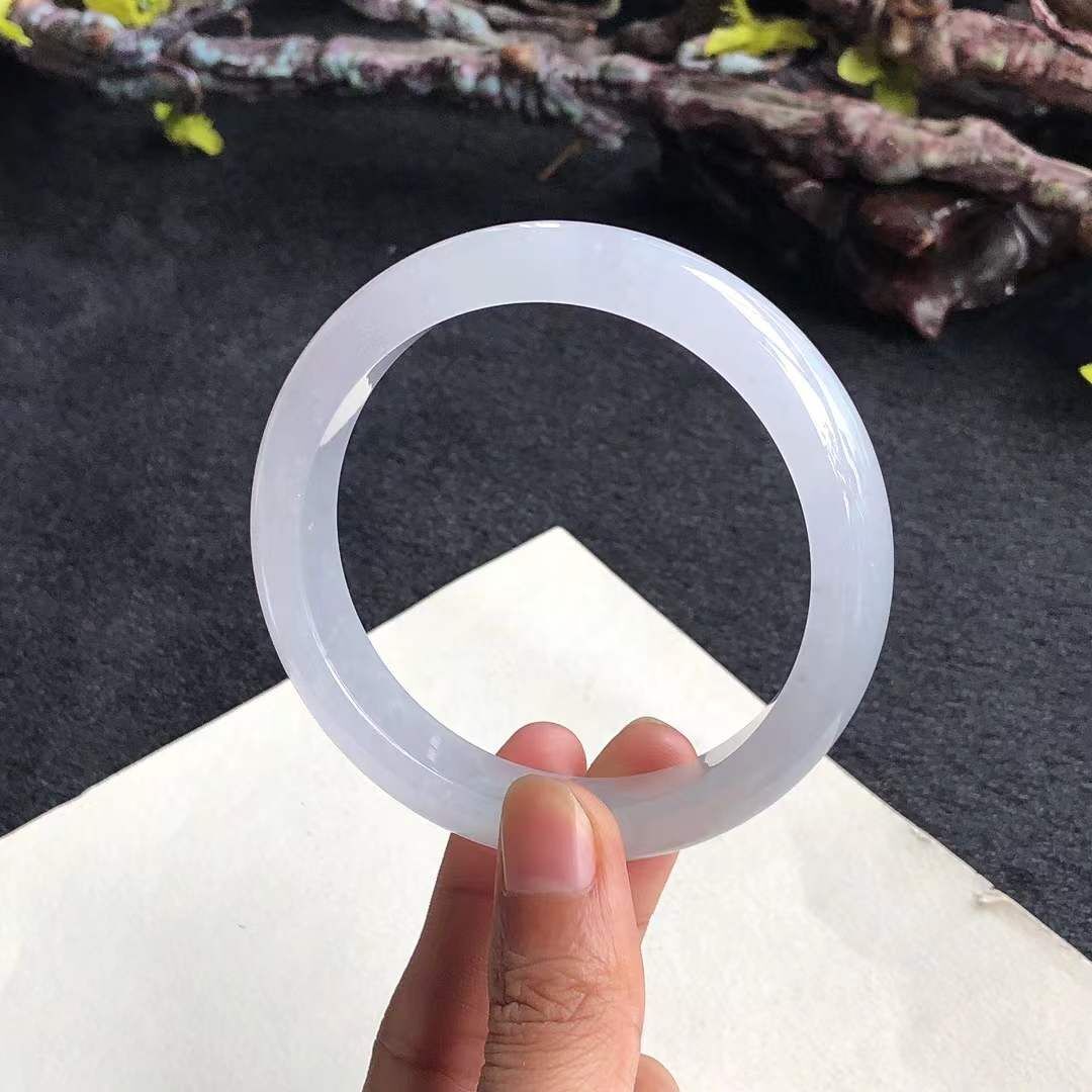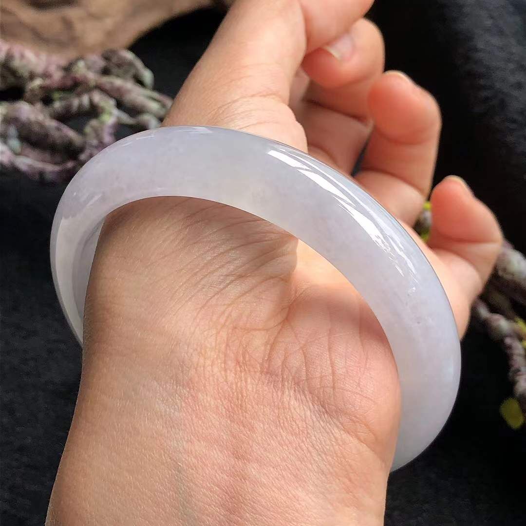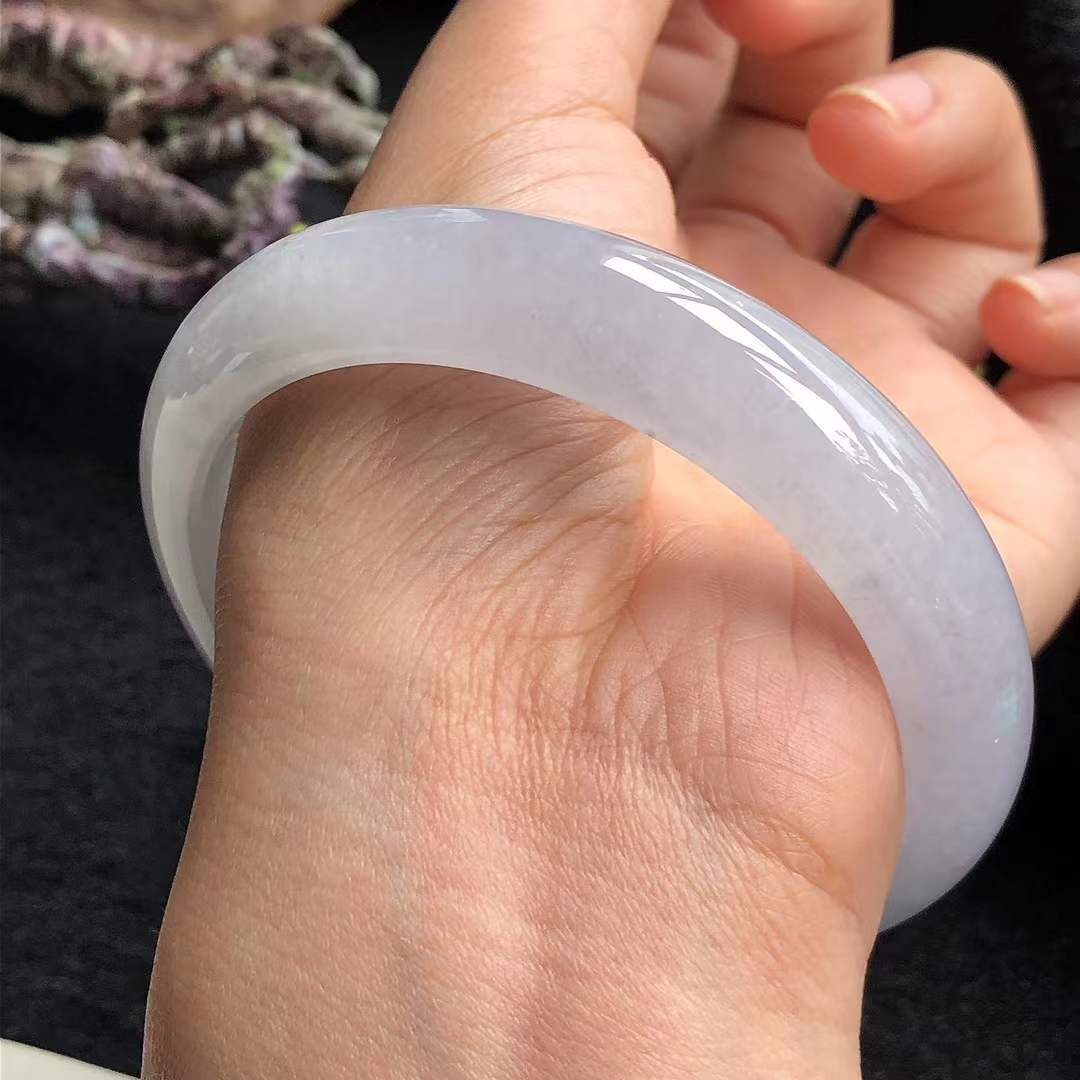 • 冰糯種淡紫翡翠正圈手鐲,天然翡翠A玉, 緬甸玉, Jade, Jadeite