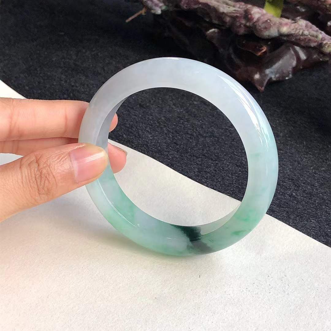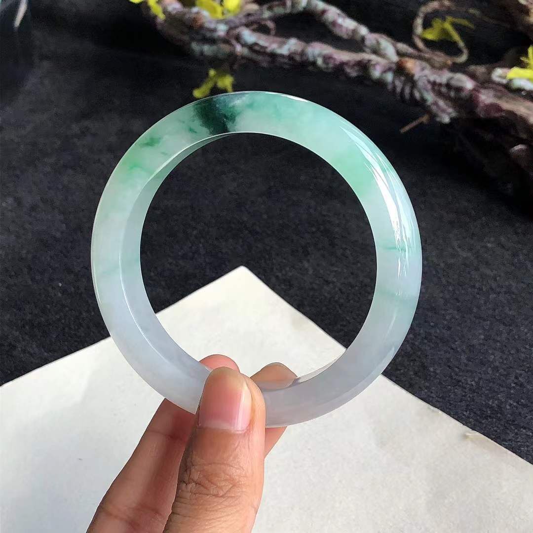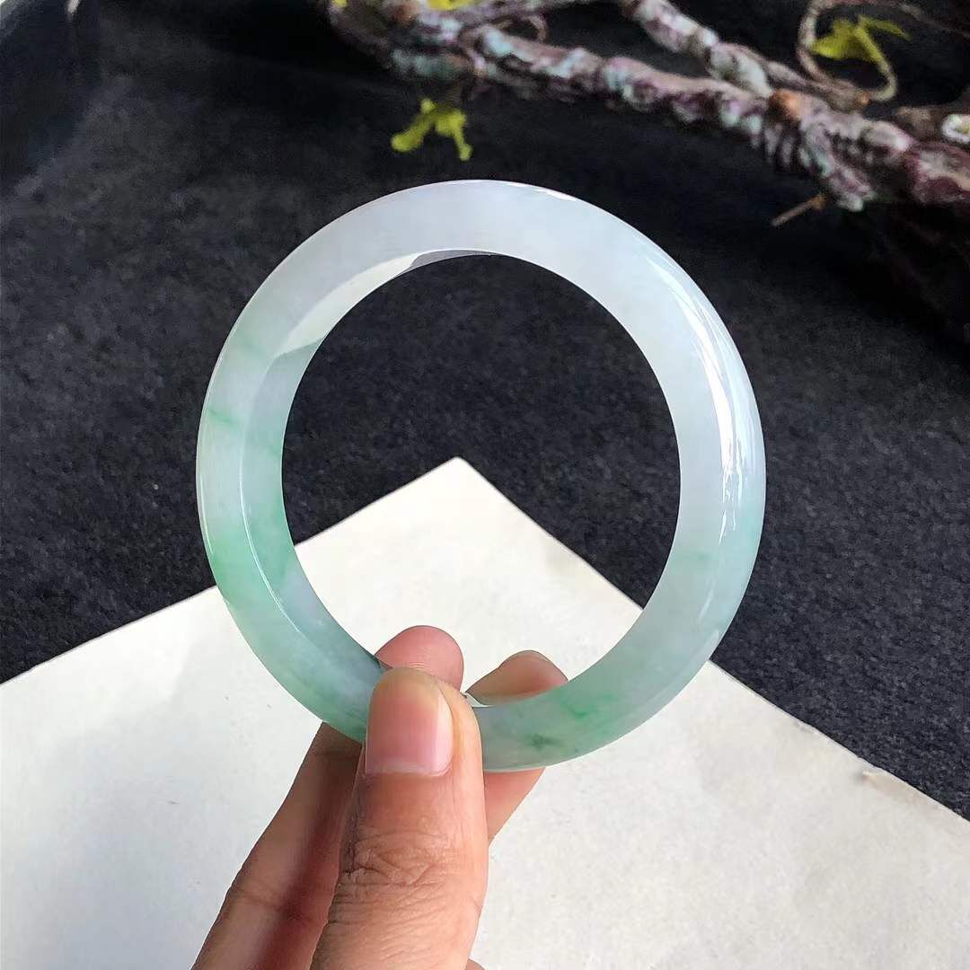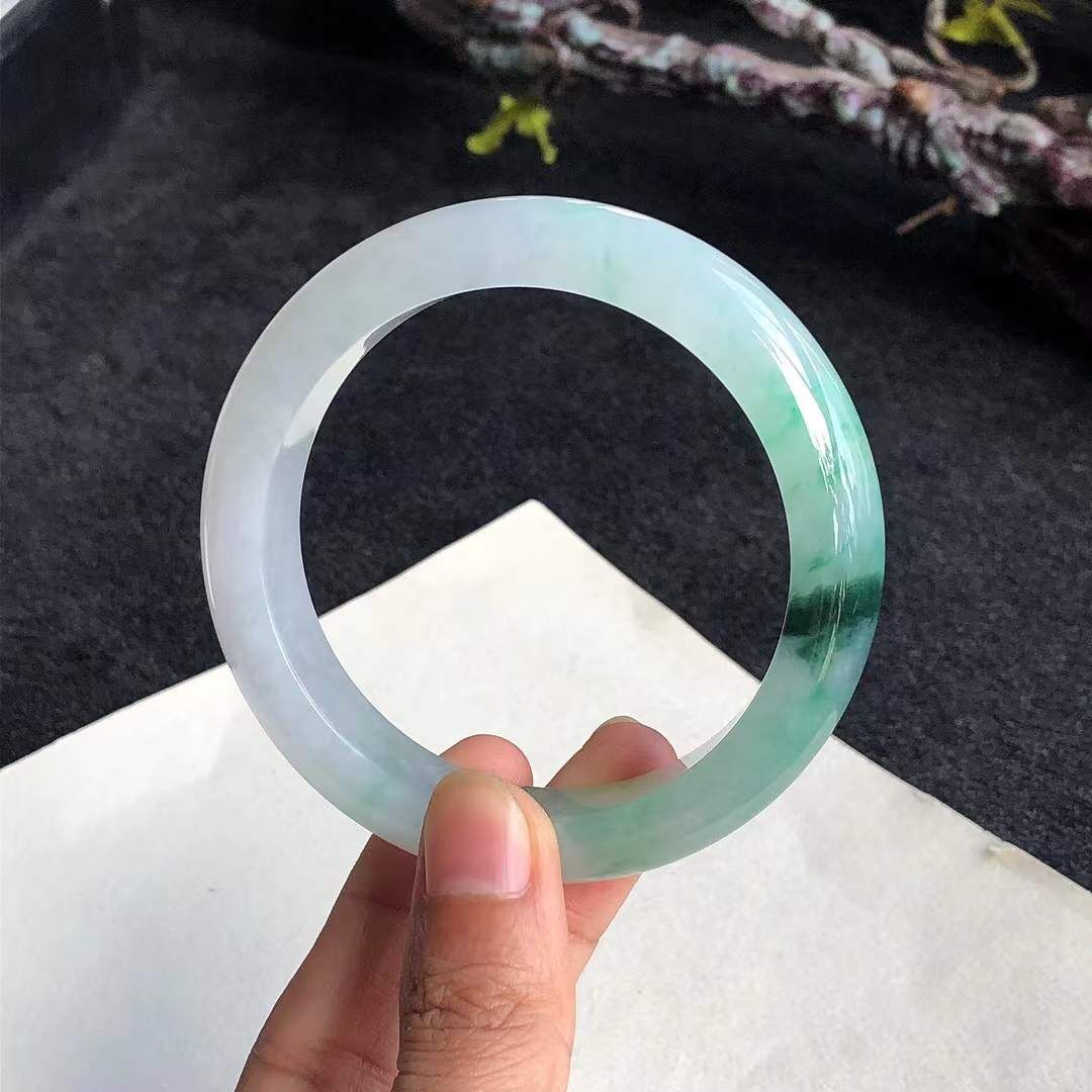 • 冰糯種飄辣綠翡翠正圈手鐲,天然翡翠A玉, 緬甸玉, Jade, Jadeite
