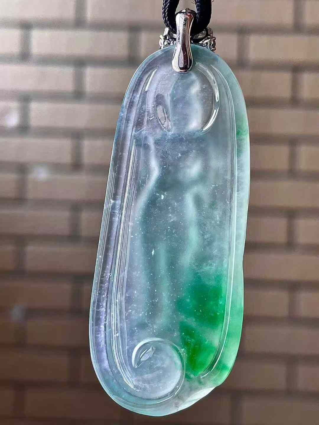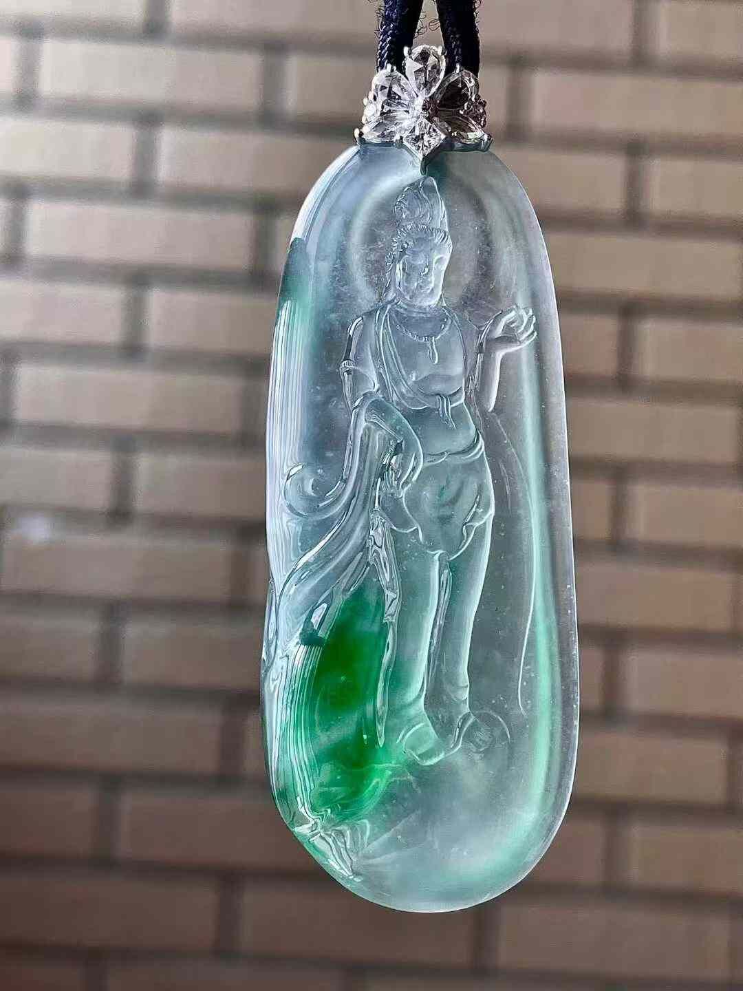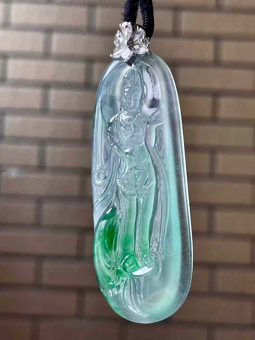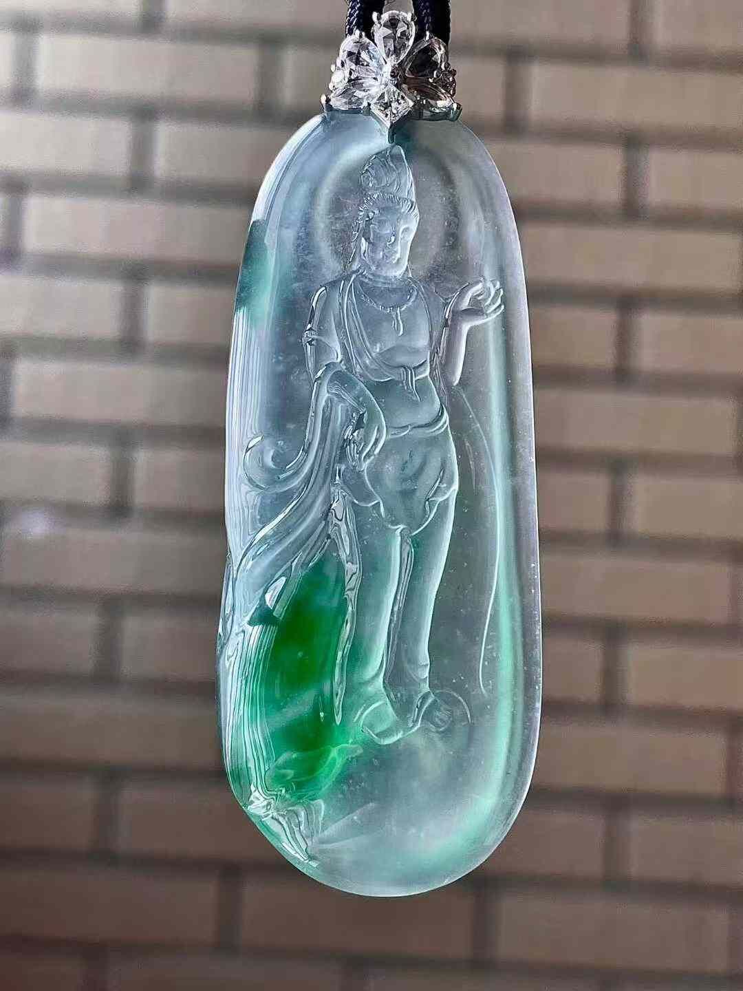 • 翡翠高冰飄綠自在觀音吊墜,天然翡翠A玉, 緬甸玉, Jade, Jadeite