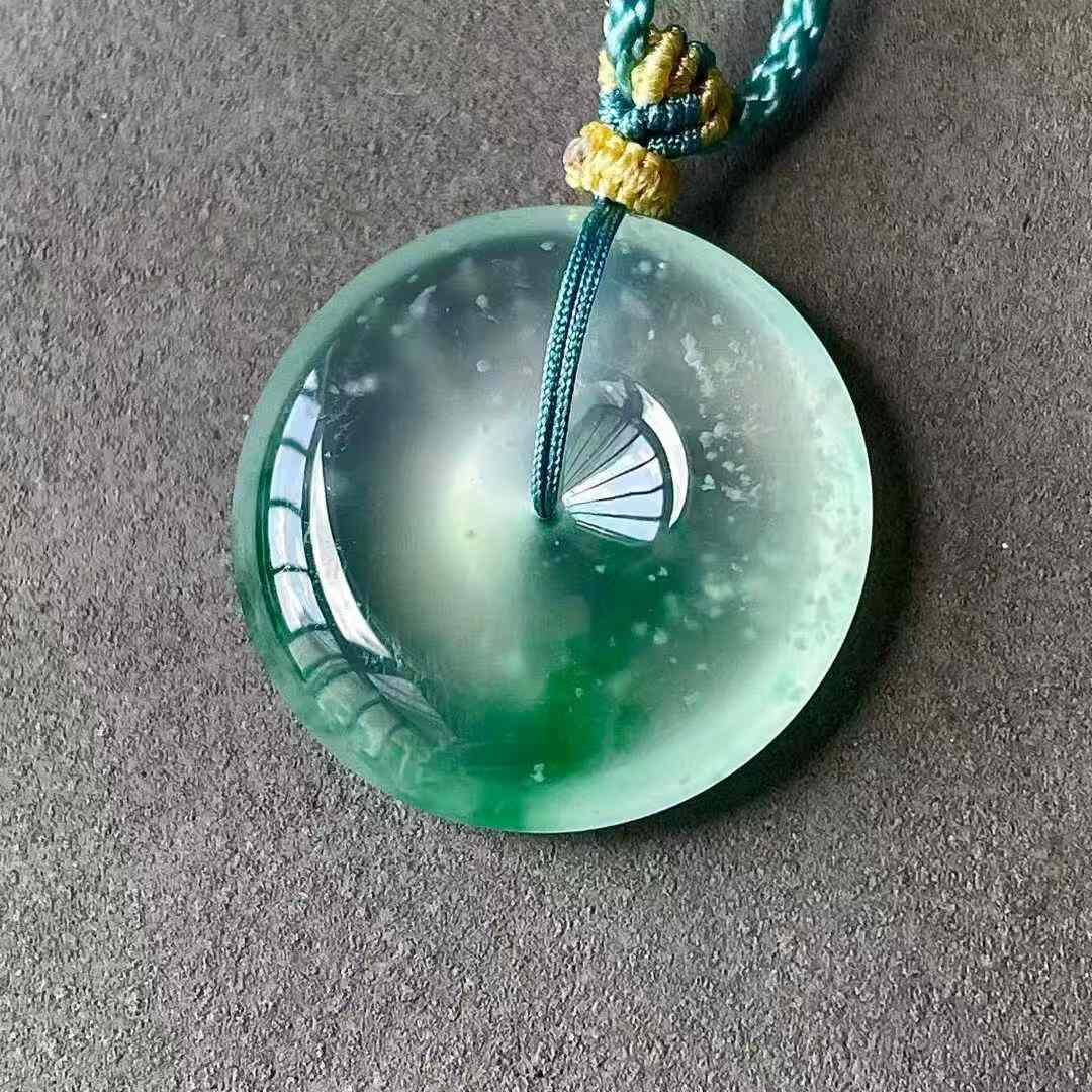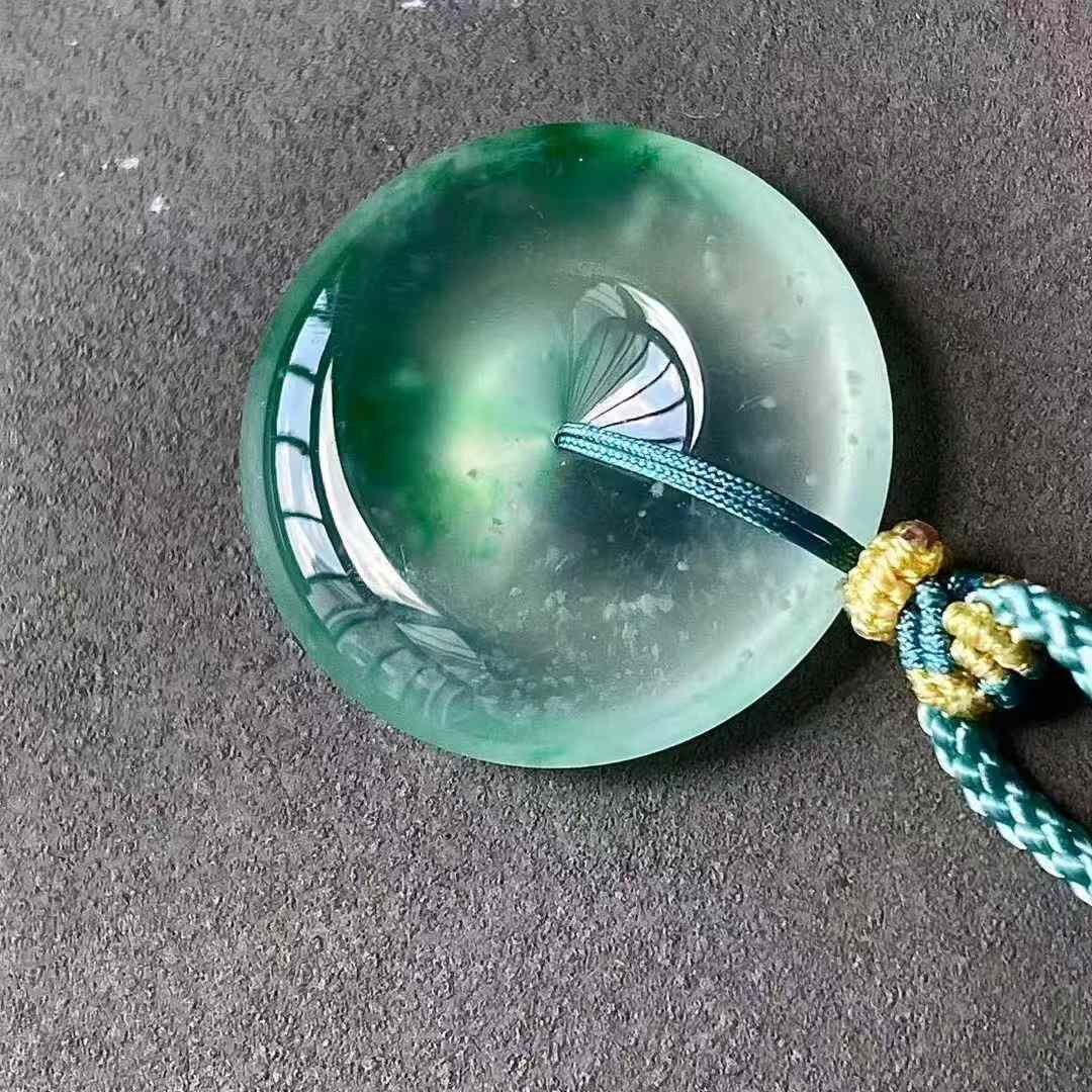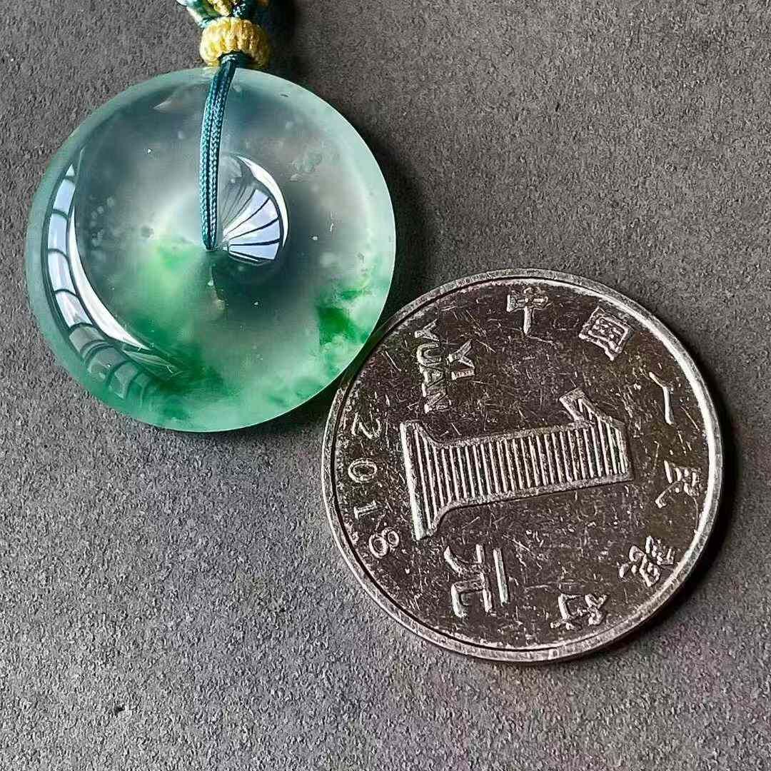 925555 翡翠玻璃種飄綠平安扣吊墜