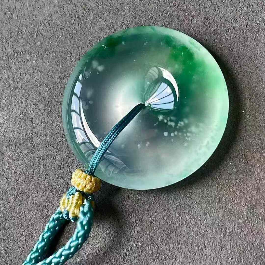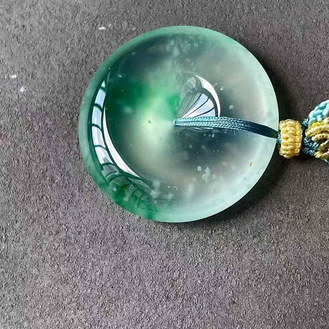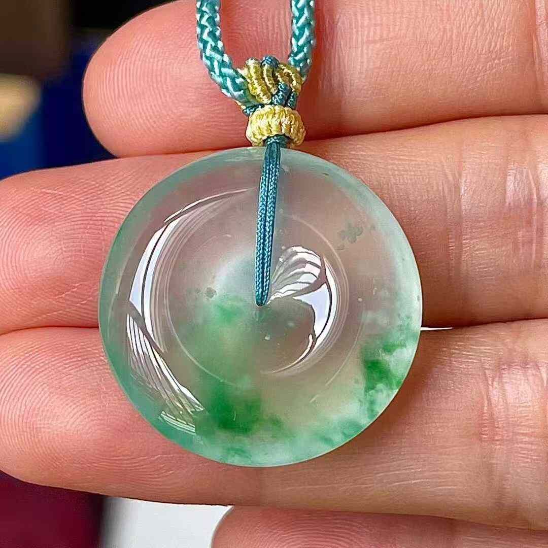 925555 翡翠玻璃種飄綠平安扣吊墜