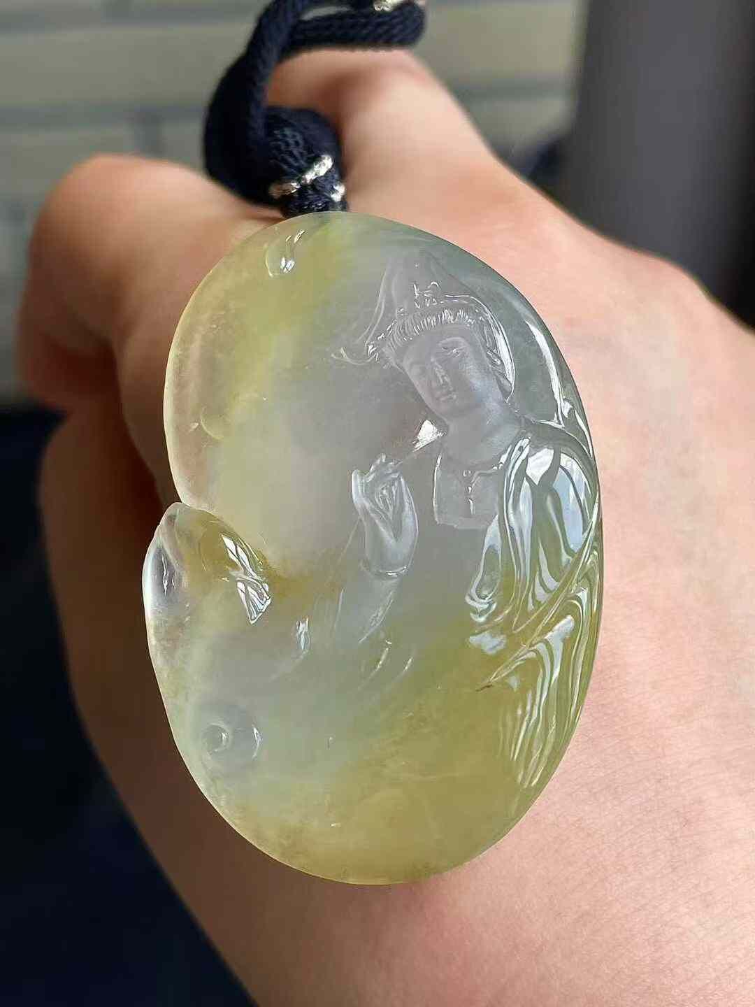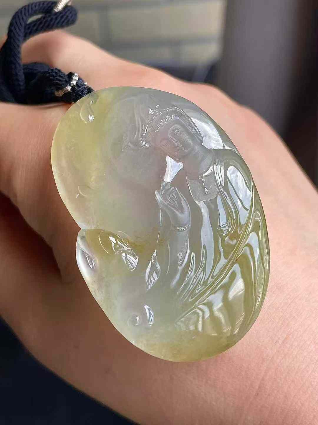 • 翡翠冰種黃自在觀音吊墜,天然翡翠A玉, 緬甸玉, Jade, Jadeite