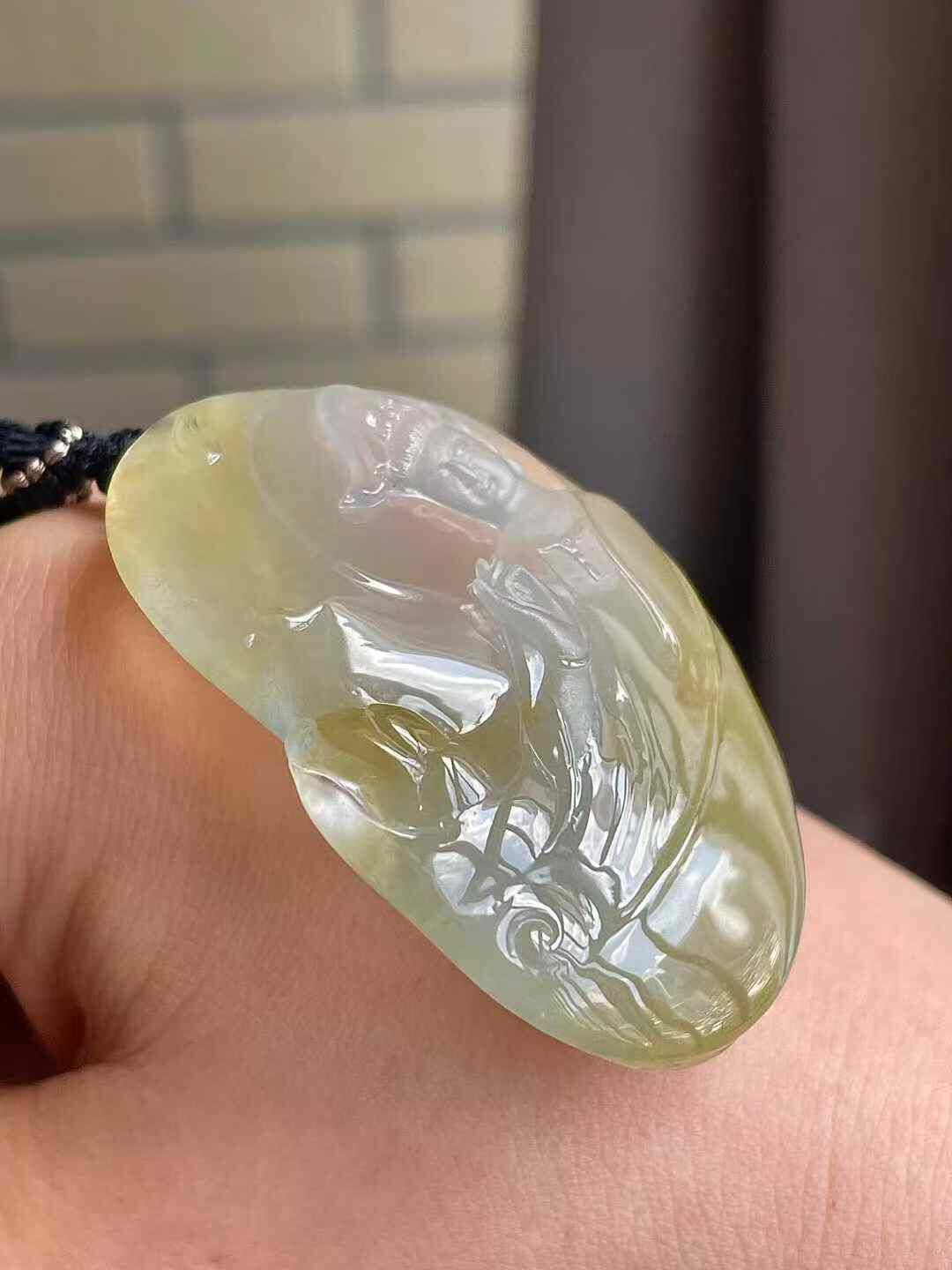 天然翡翠A玉,緬料,飽滿水潤,雕工精美。