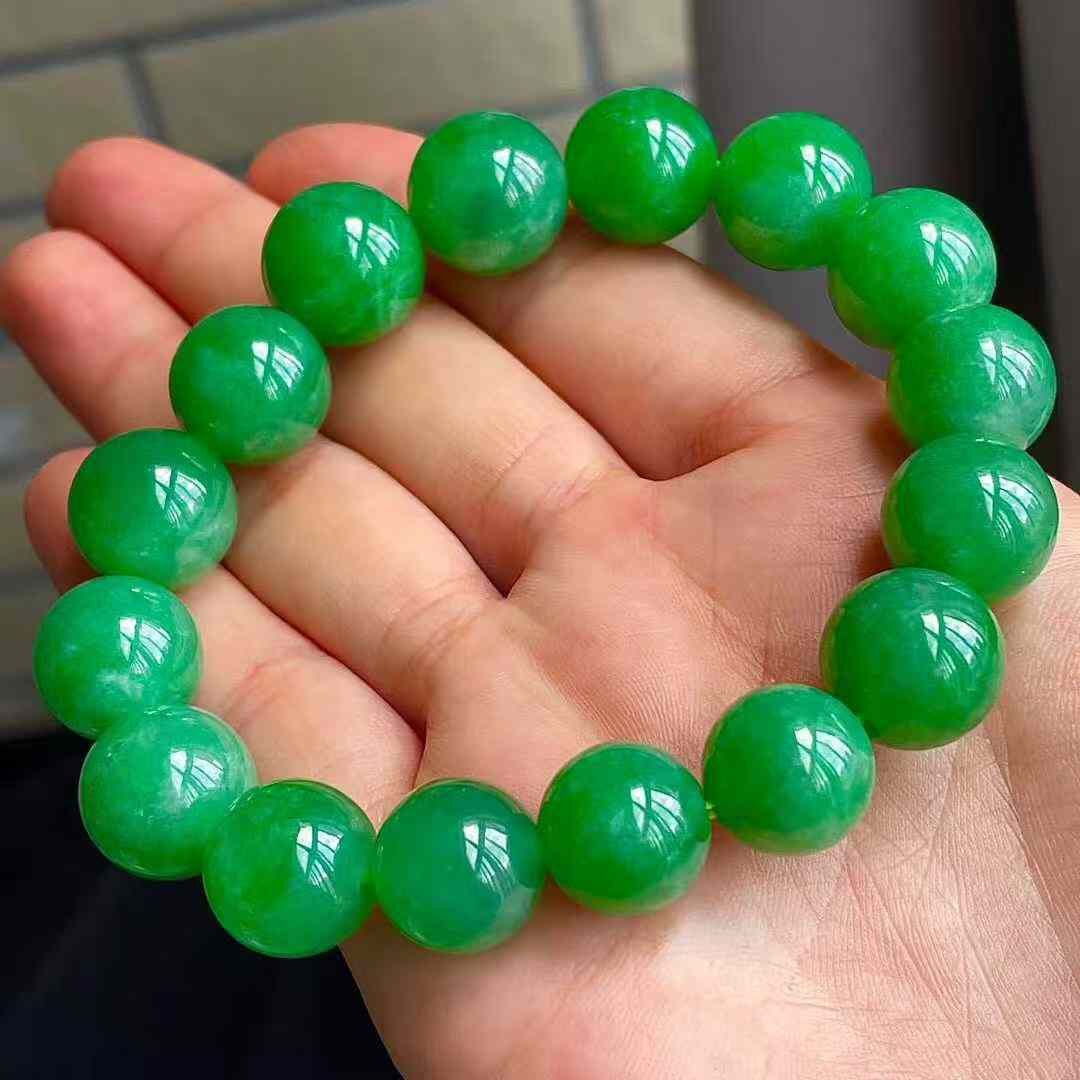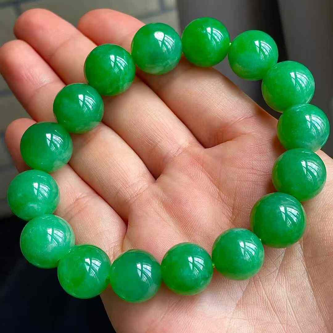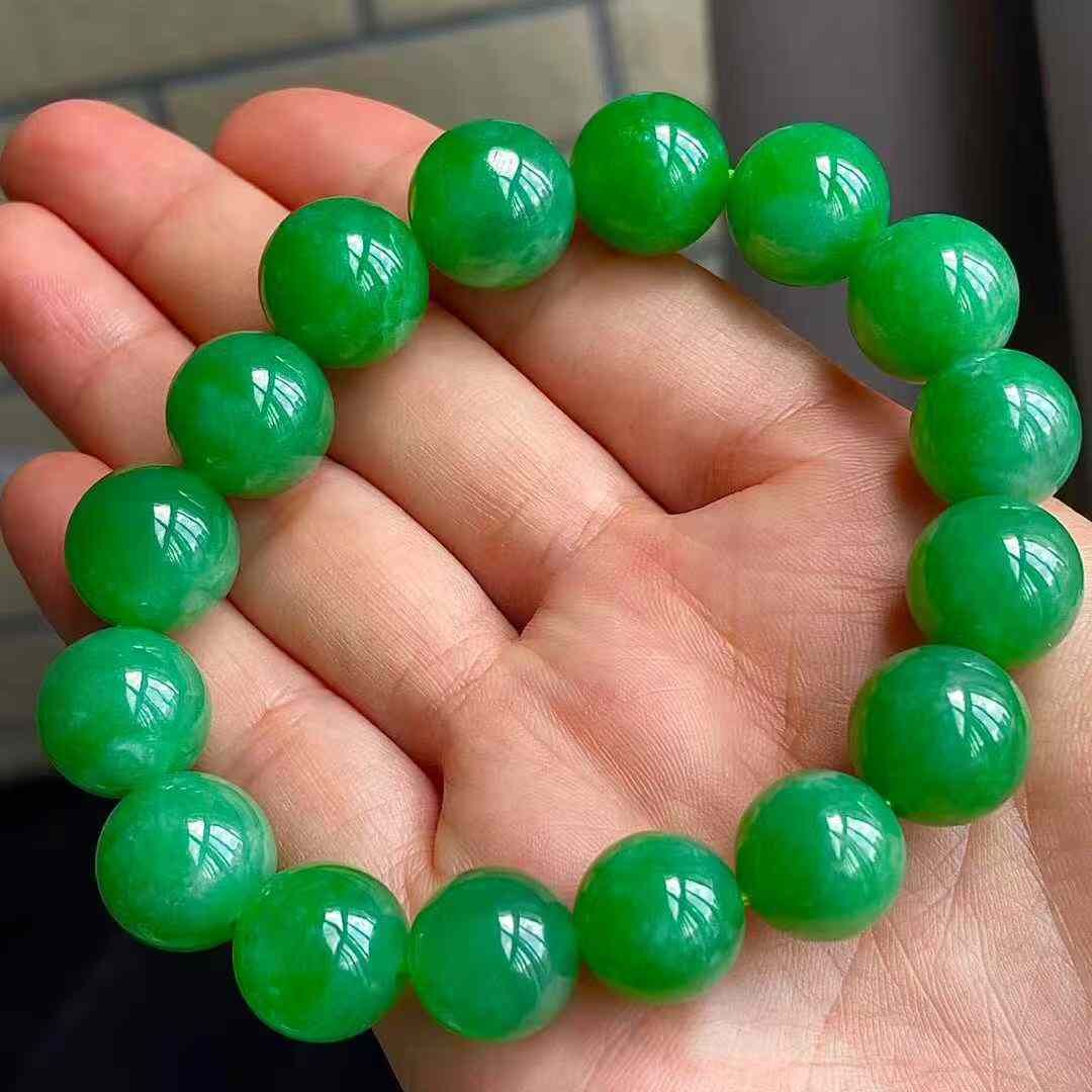 • 翡翠冰陽綠手串 (12.7mm直徑),天然翡翠A玉, 緬甸玉, Jade, Jadeite