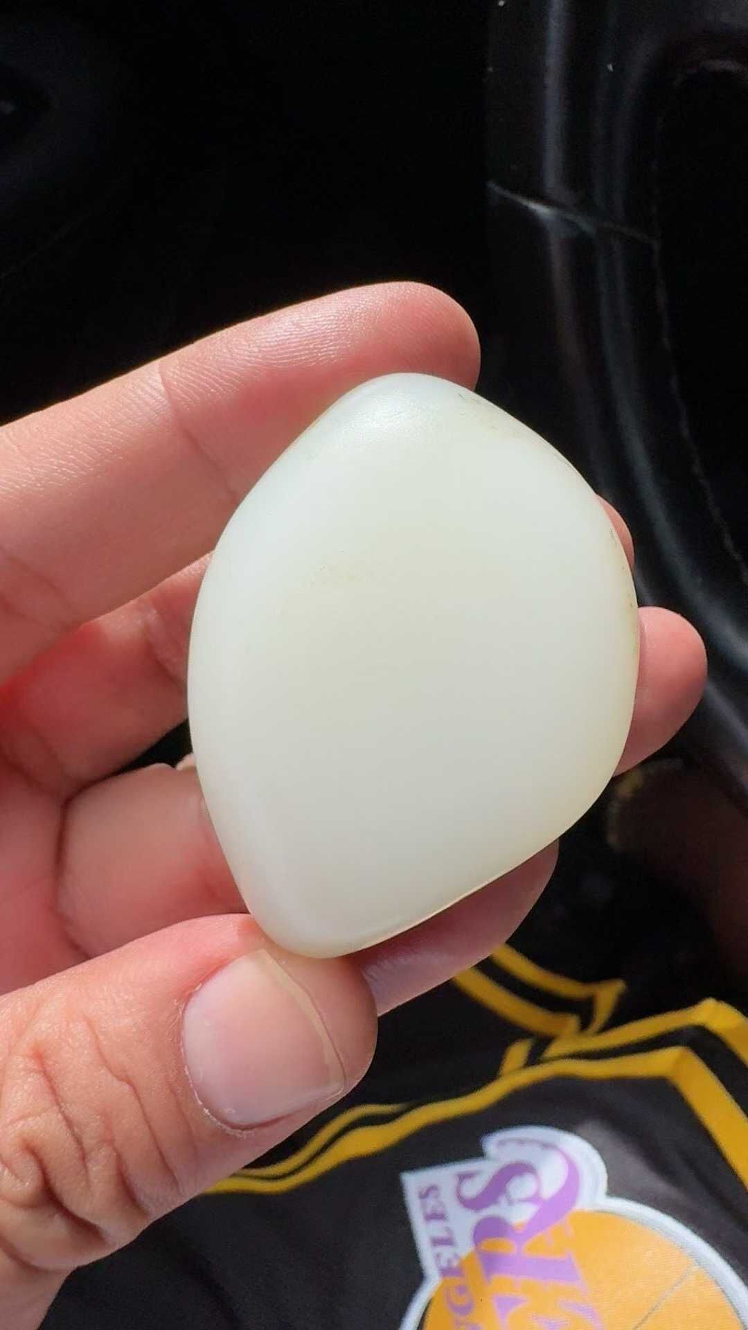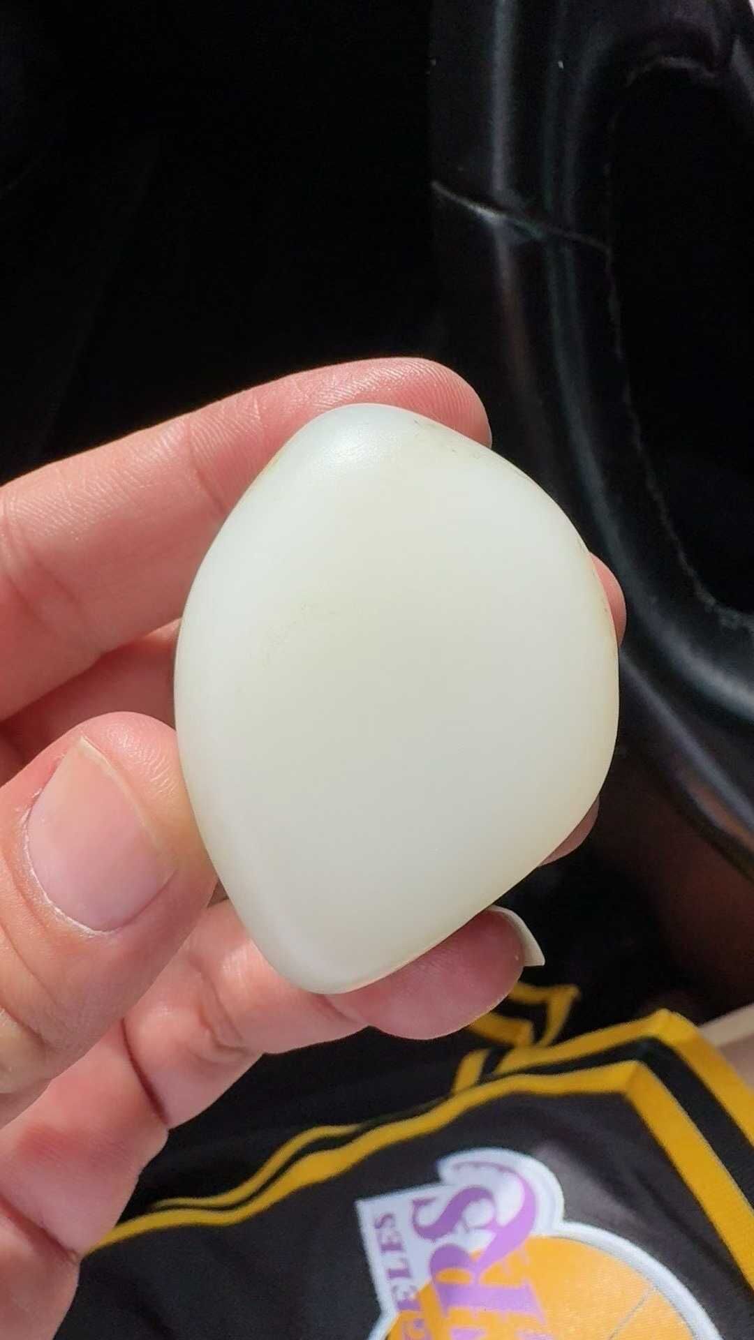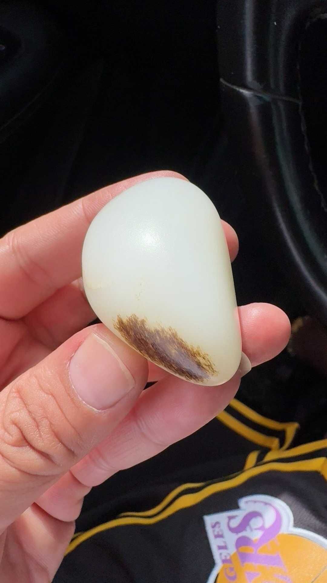 新疆和田玉籽料羊脂白原籽,頂端聚油黑皮。