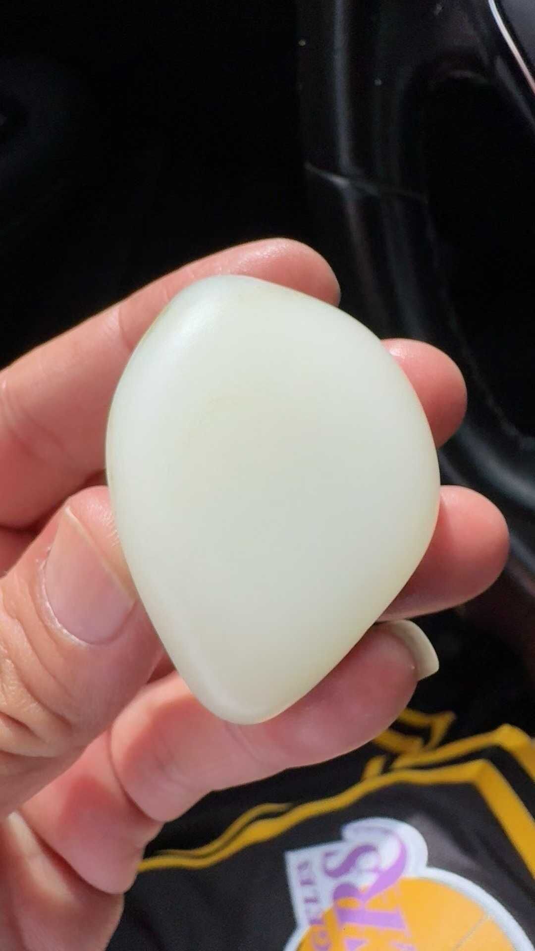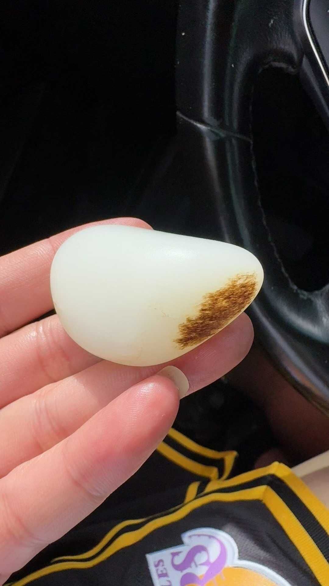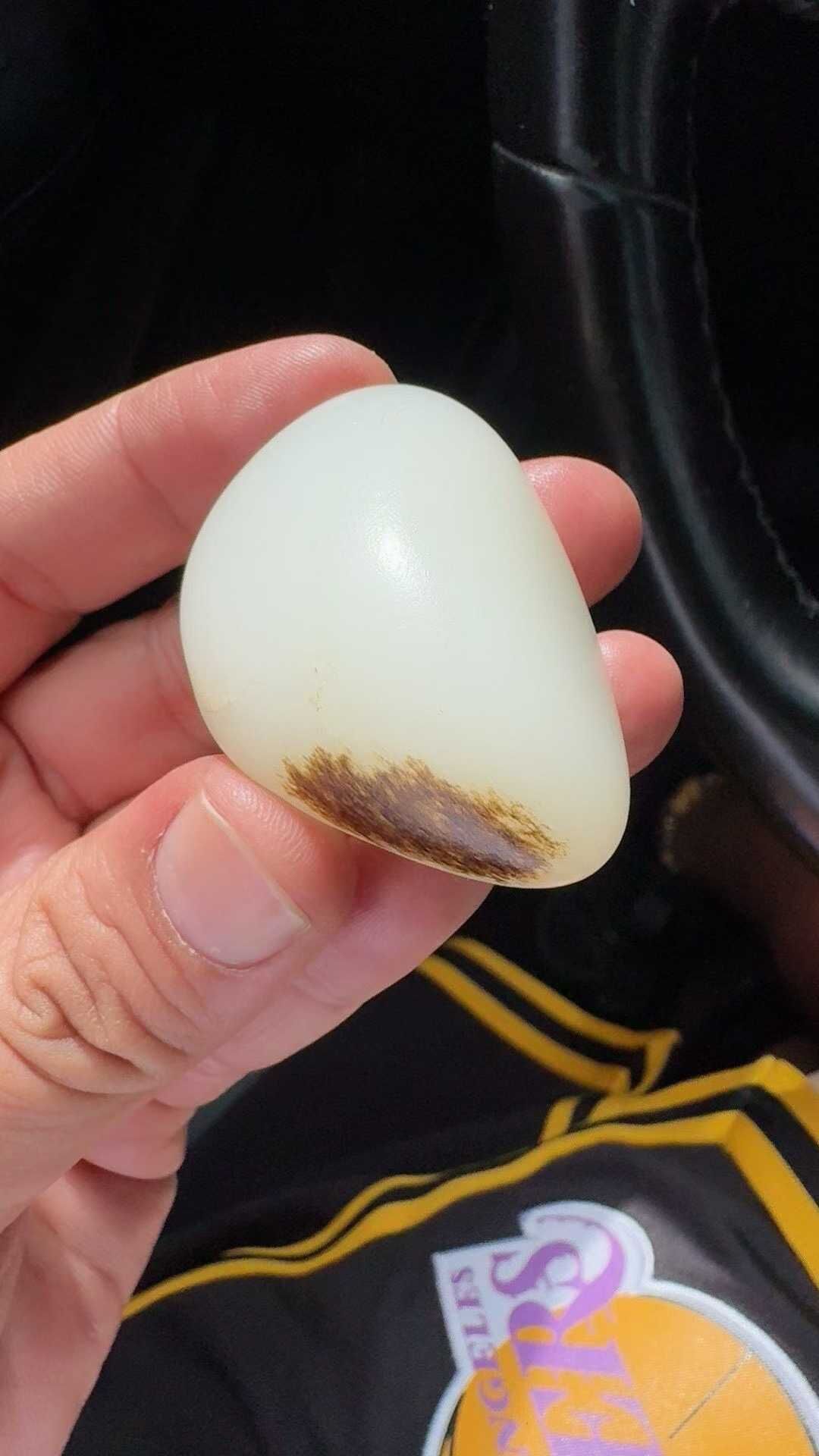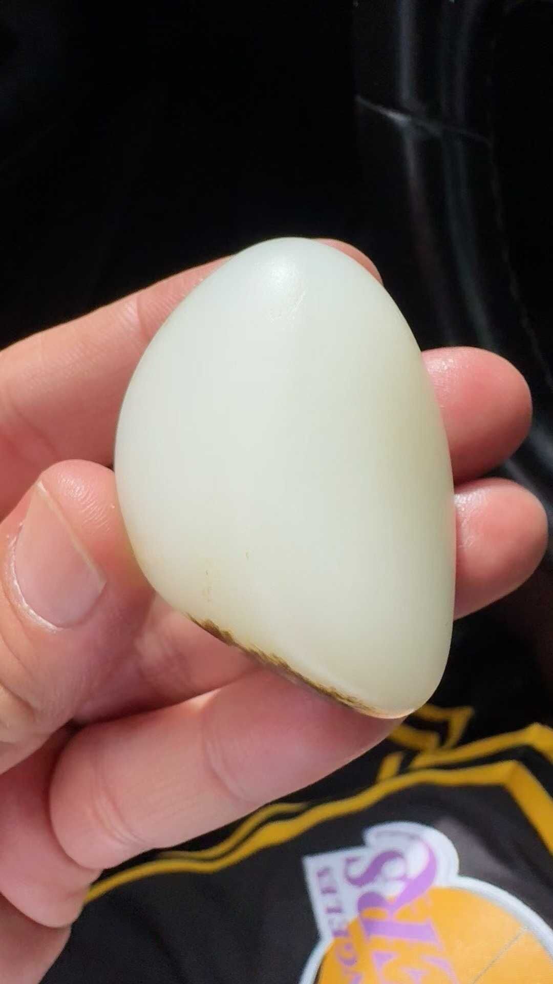 新疆和田玉籽料羊脂白原籽,頂端聚油黑皮。