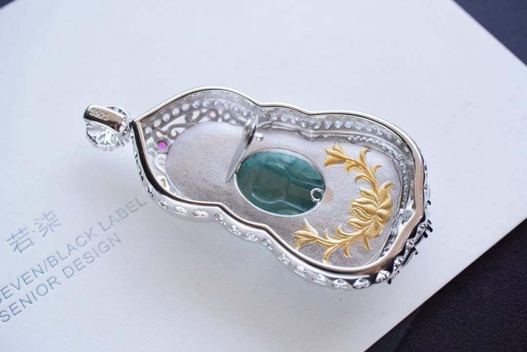 因為是做度母像,我們的要求是:必須要完美無紋裂祈願每一位緣主都能喜樂無虞,心想事成天然翡翠A玉,純銀鋯石鑲嵌,完全是K金工藝背後可開蓋。