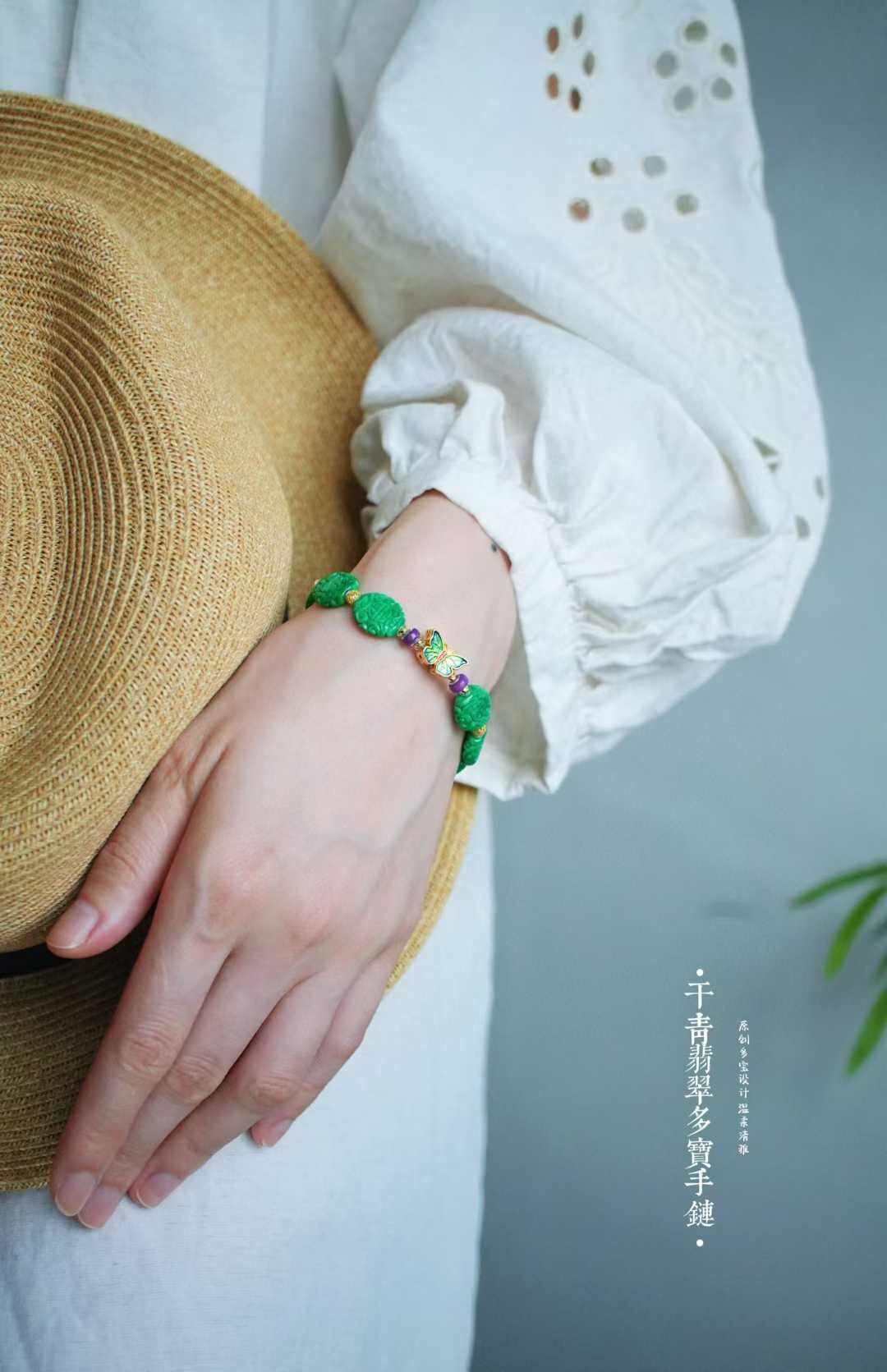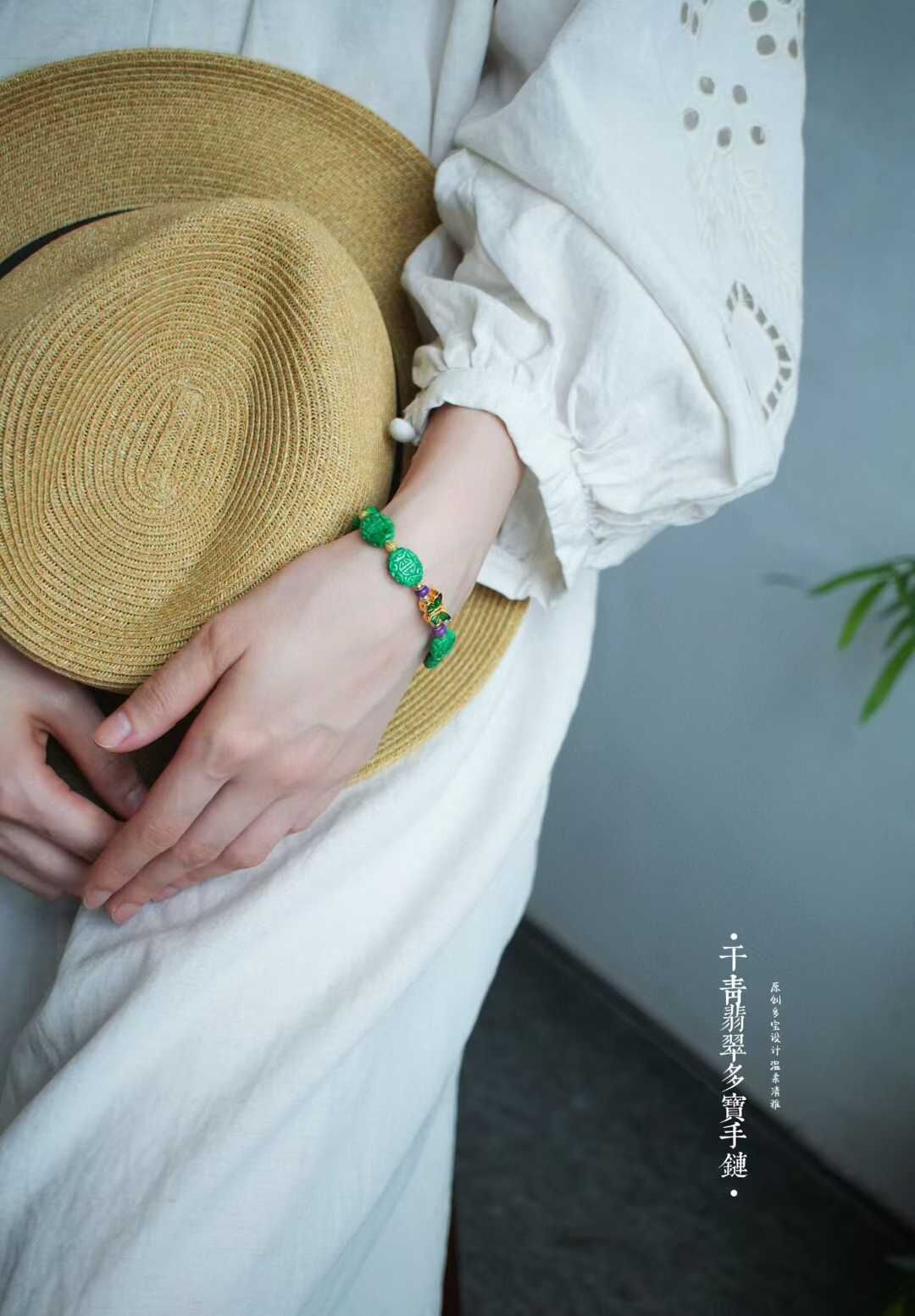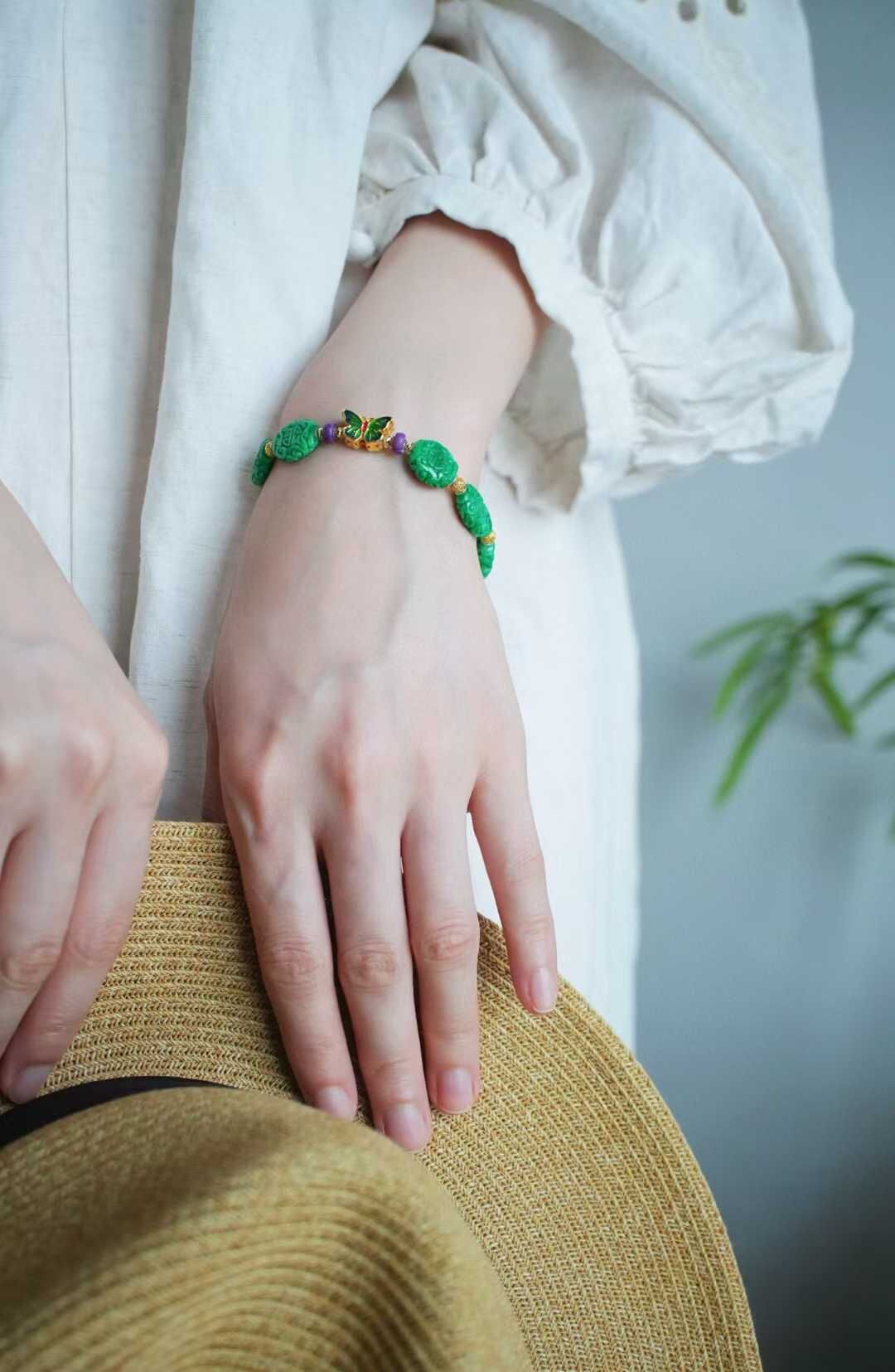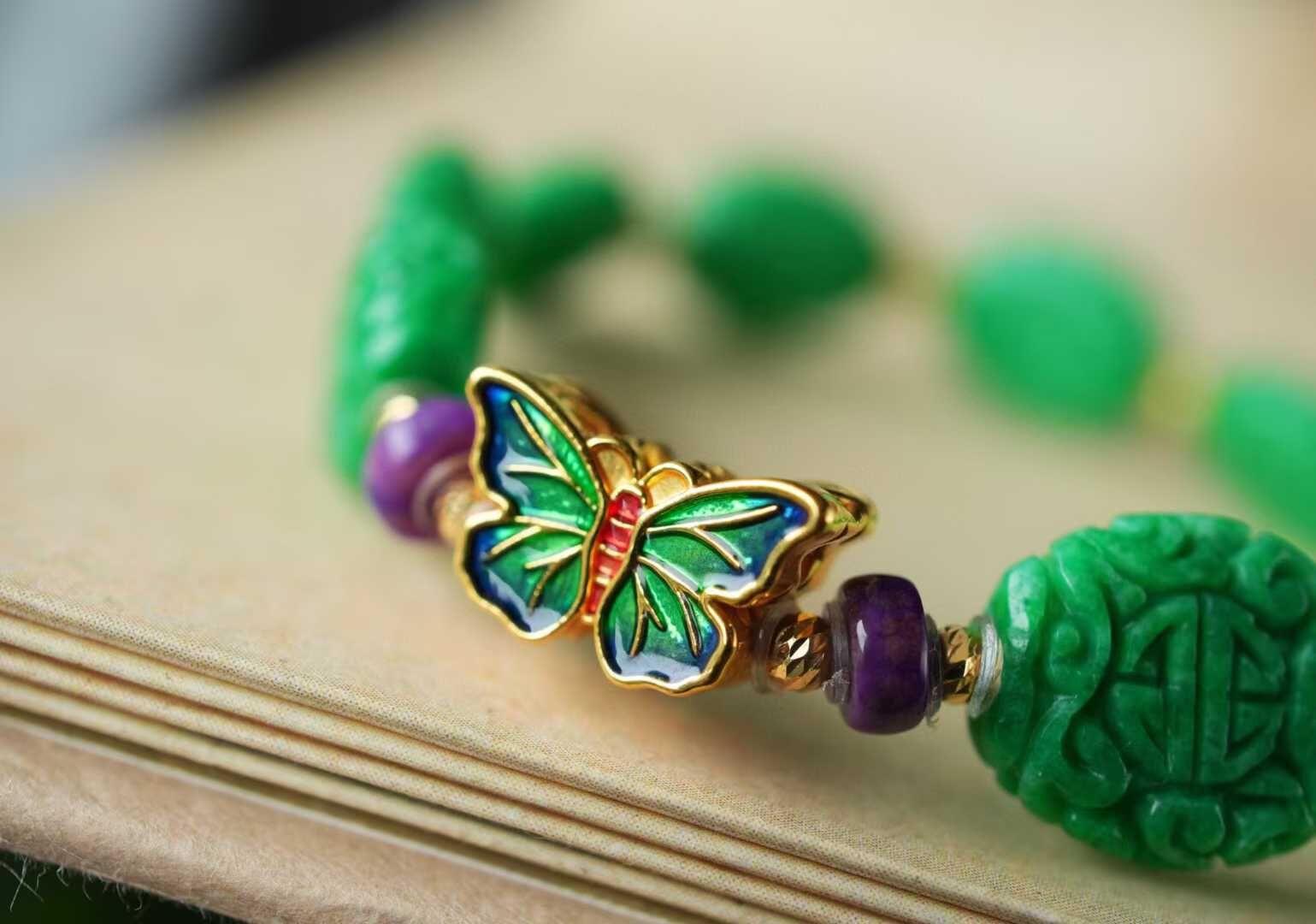 以現在金價飆升狀態來看,這條下次再發就要調價了,整條重金的!成本高了很多了第一次遇到這麼鮮陽、這麼水潤的翡翠乾青料精工雕刻,古典纏枝團壽紋,寓意健康長壽和幸福。