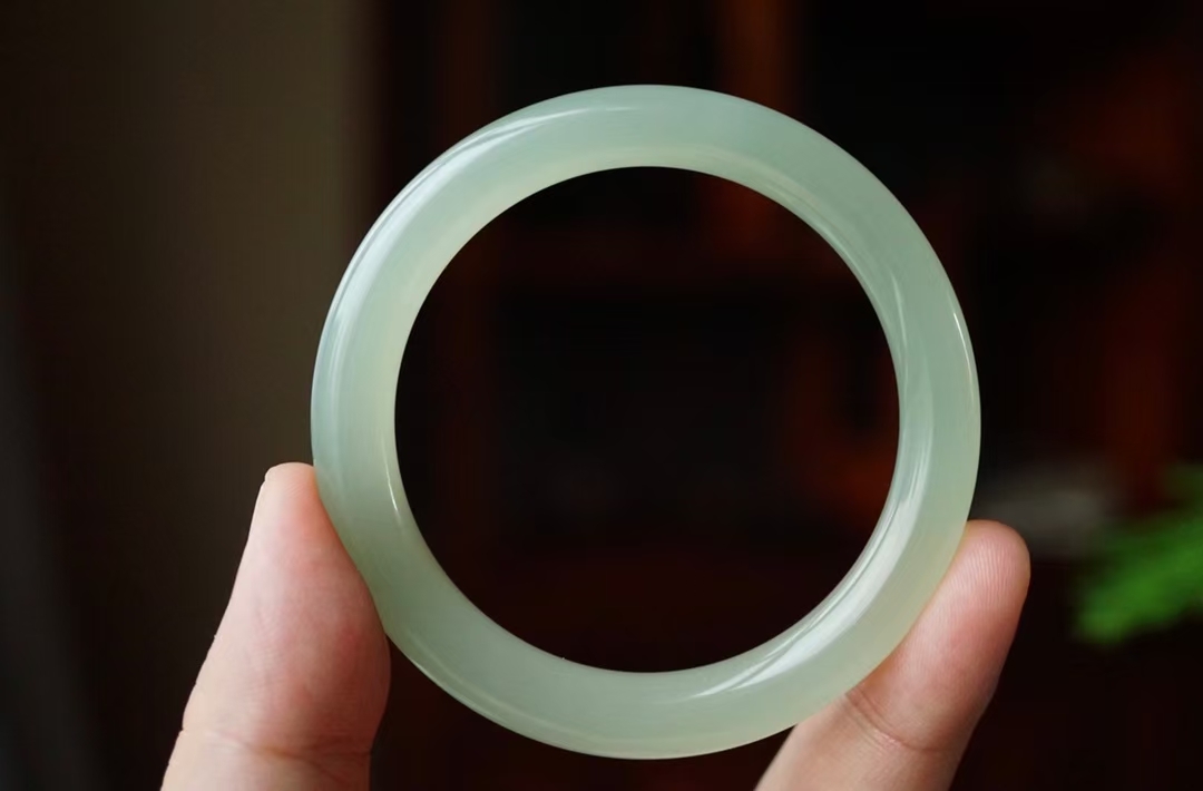 和田玉冰底晴水玉鐲,顏色清雅,冰透瑩潤細膩,過燈純淨,無棉無水線,無雜無裂完美品相。經典圓條福鐲,上手不挑人,溫婉顯氣質。
