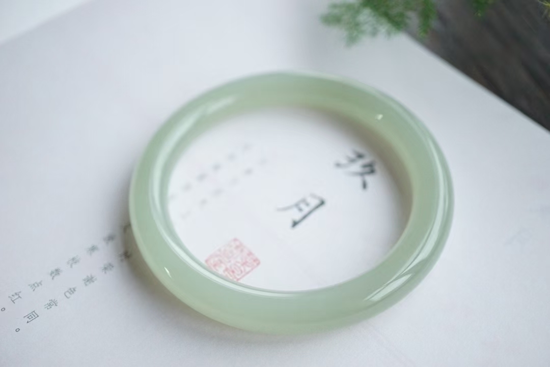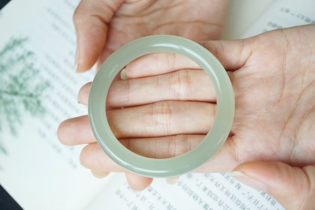 • 和田玉冰底晴水圓條福鐲 51mm, 天然和田玉軟玉