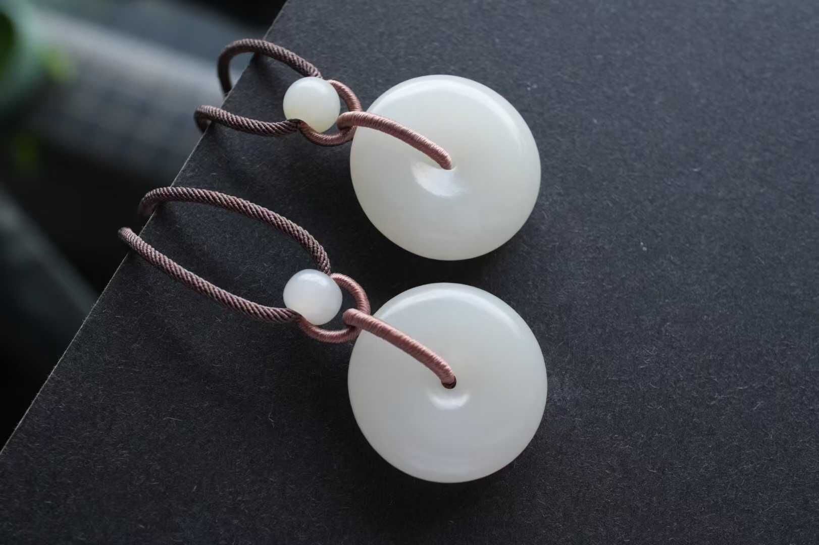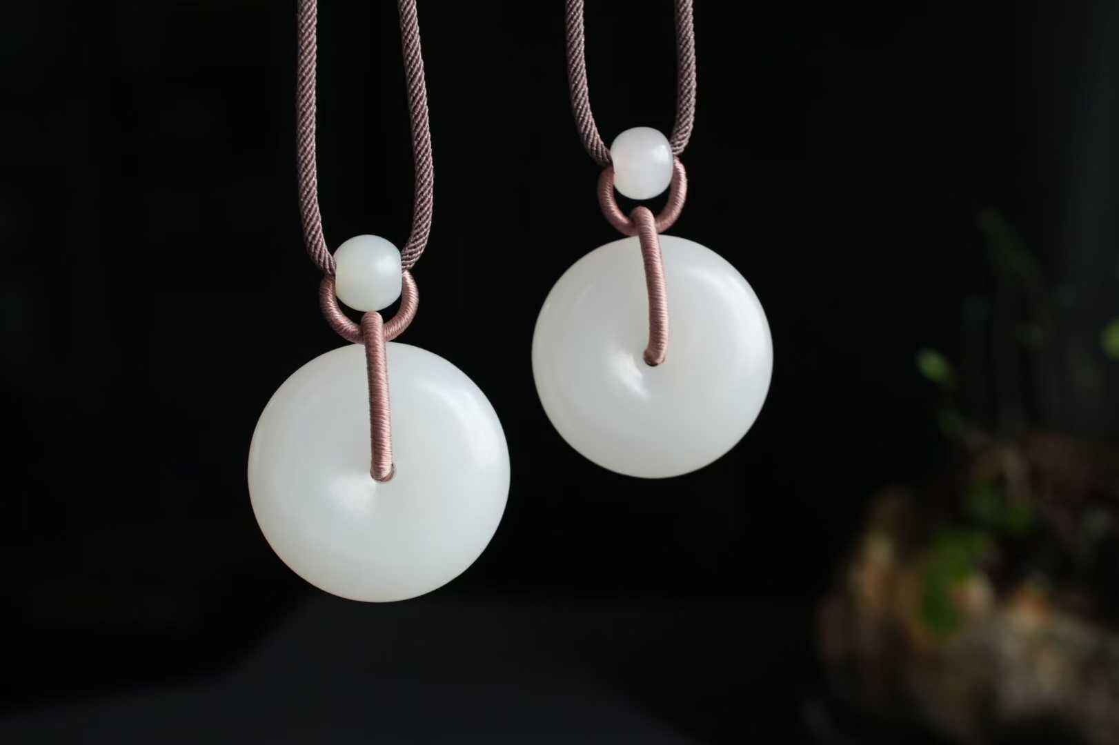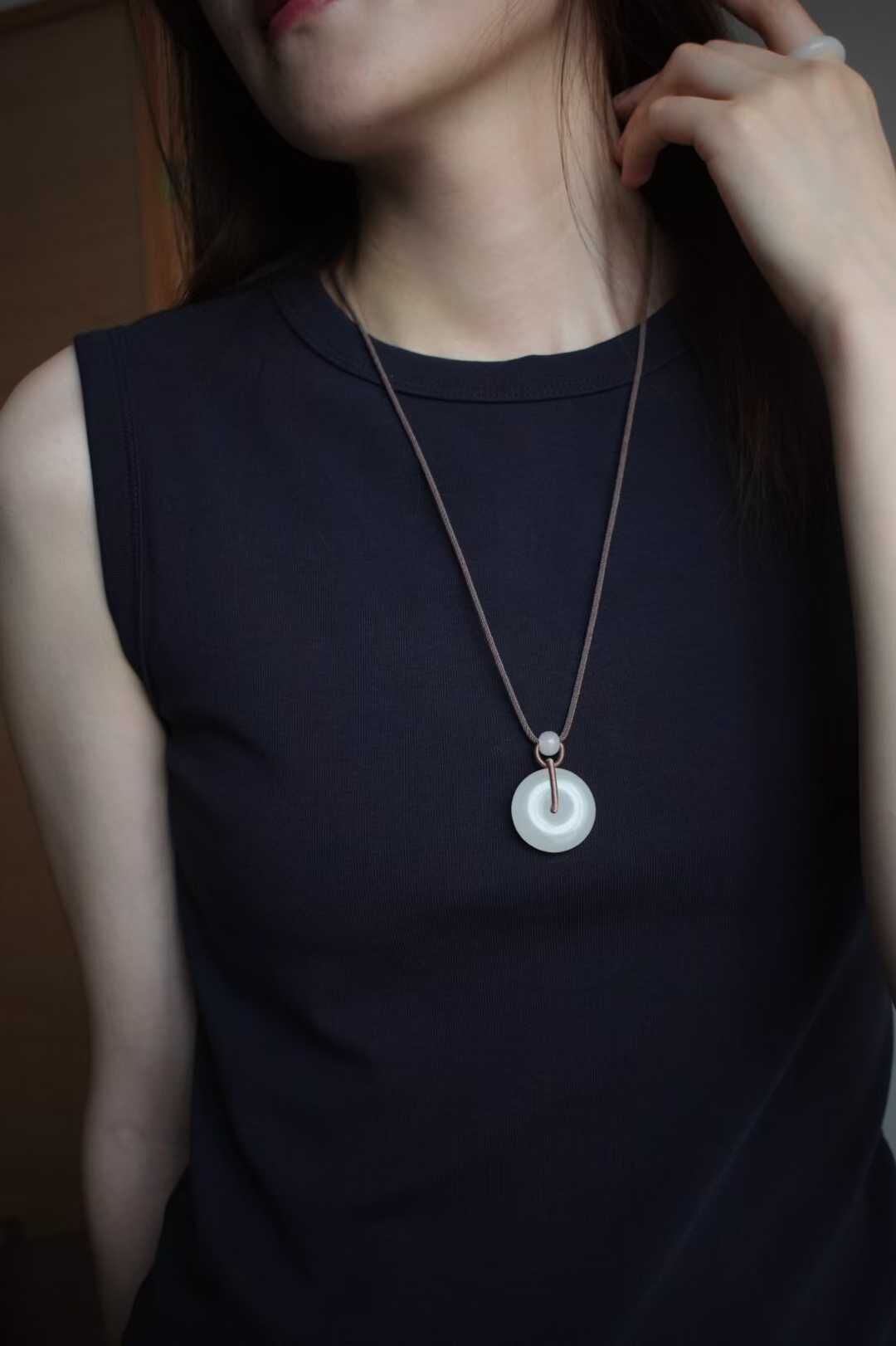 搭配純手工製作繩,白玉如意/平安扣作尾墜,糖料祥雲作背雲,點綴藕粉/白玉路路通、純銀小配件等佩戴典雅大方。