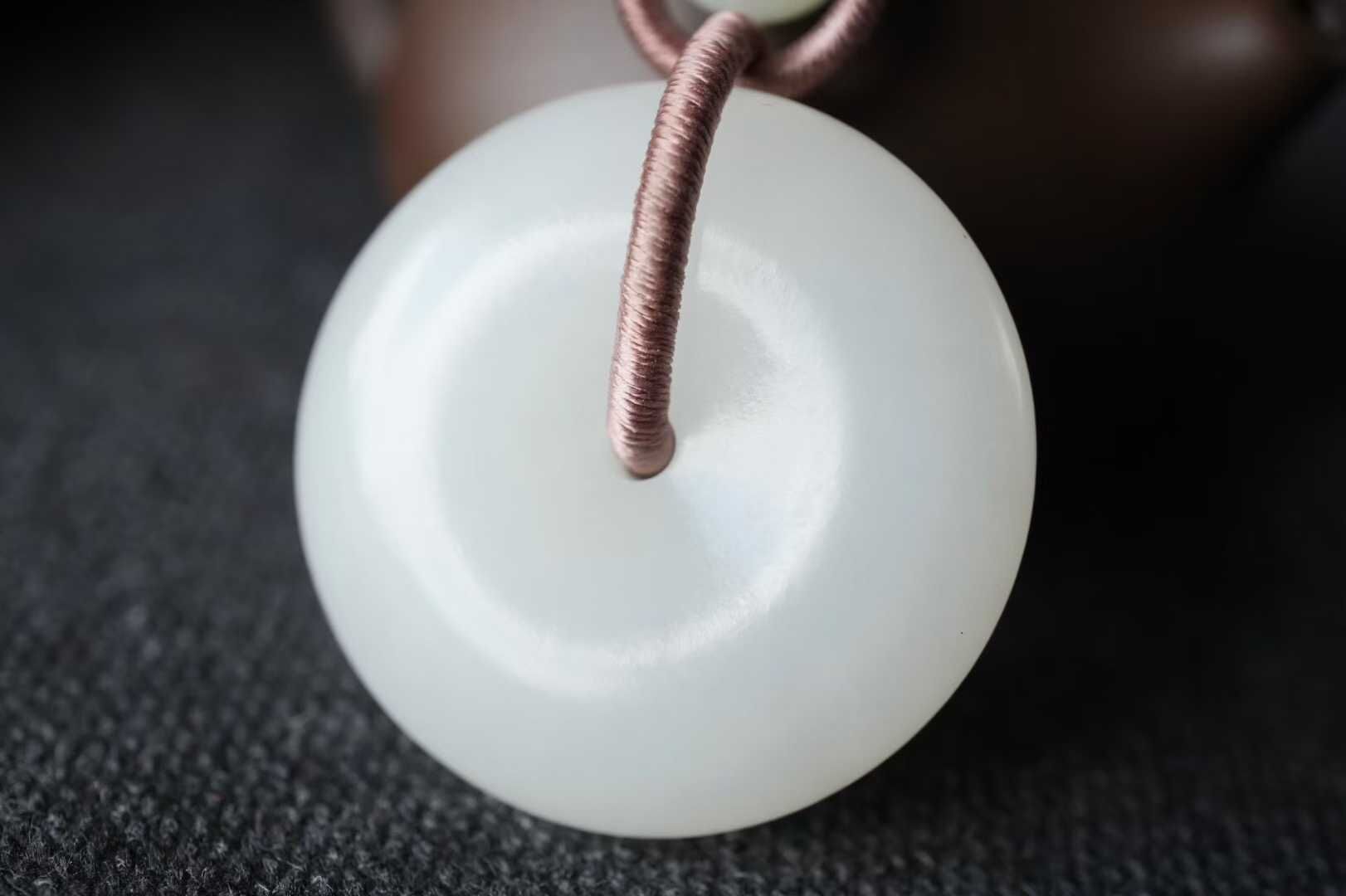 和田玉藕粉,色澤柔雅均勻,恰到好處的藕調,不悶不灰,上身就是溫溫柔柔的大家閨秀感,玉質細膩,油性非常好,無棉無水線,無雜裂完美品相。平安扣造型厚實,寓意吉祥圓滿,雙面均可佩戴。