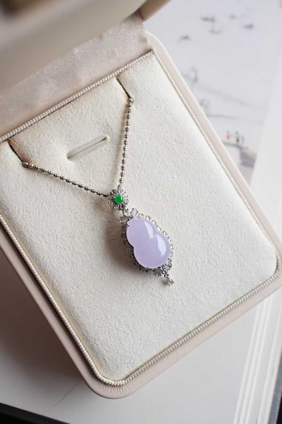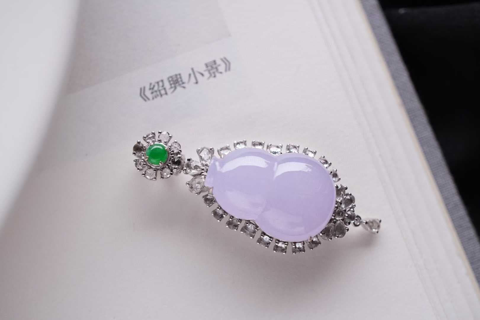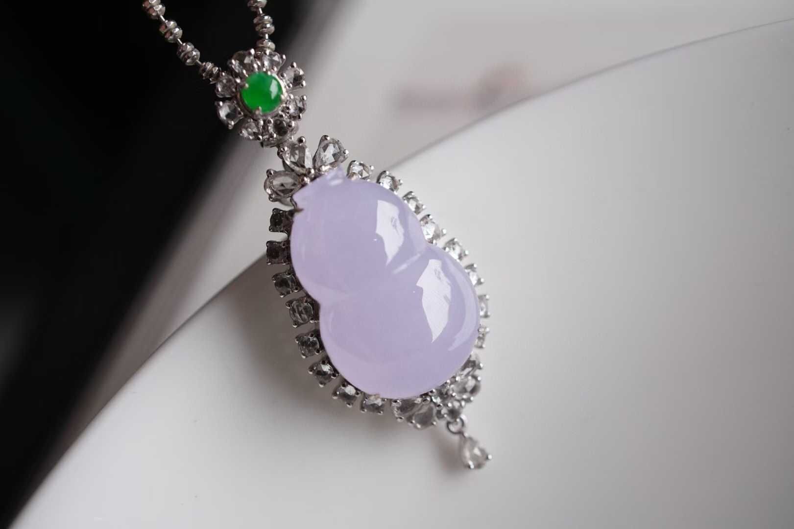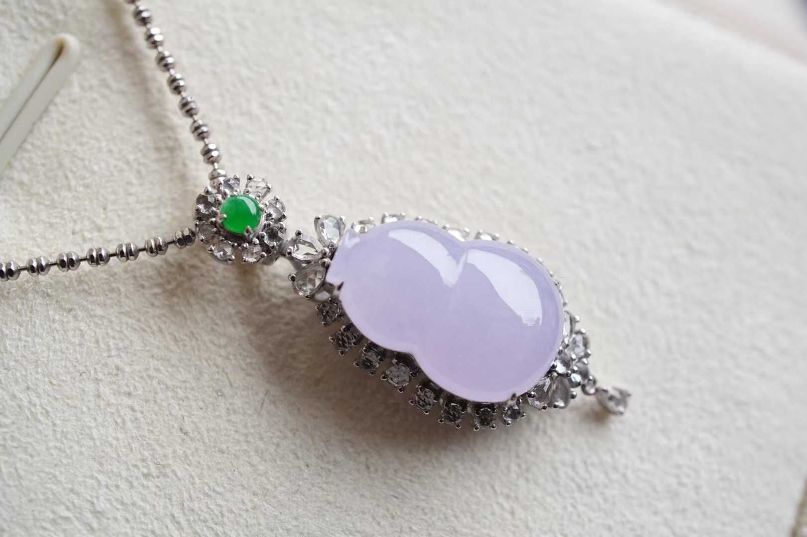 • 翡翠冰紫羅蘭葫蘆吊墜,天然翡翠A玉, 緬甸玉, Jade, Jadeite