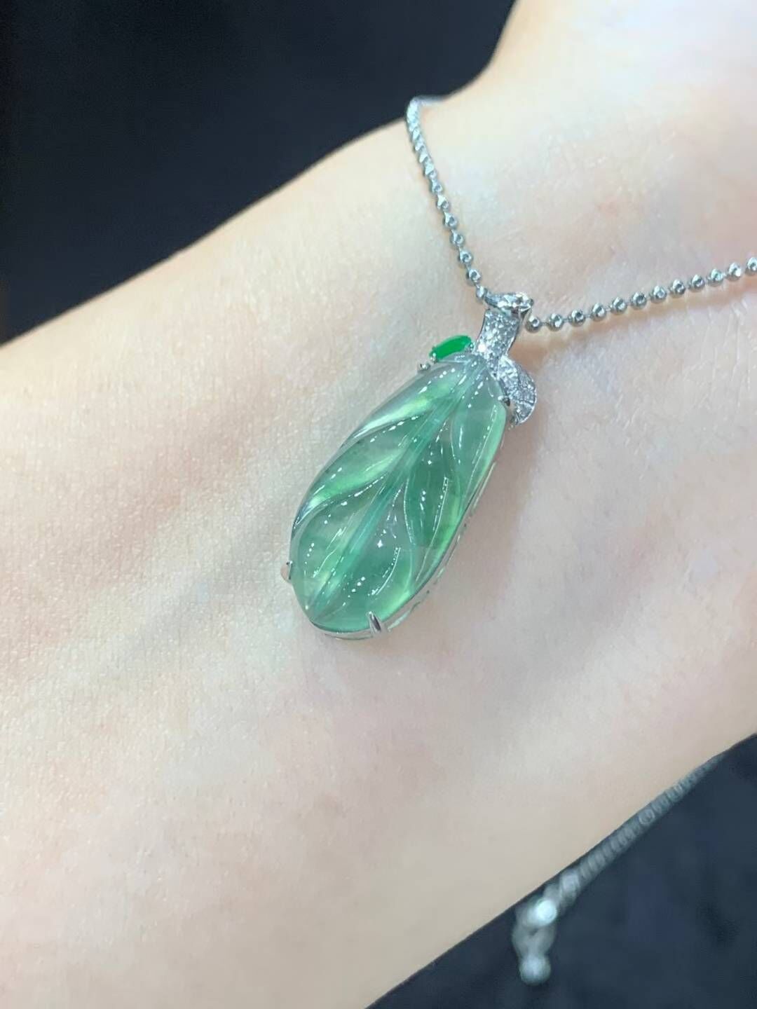 • 翡翠葉子,天然翡翠A玉, 緬甸玉, Jade, Jadeite
