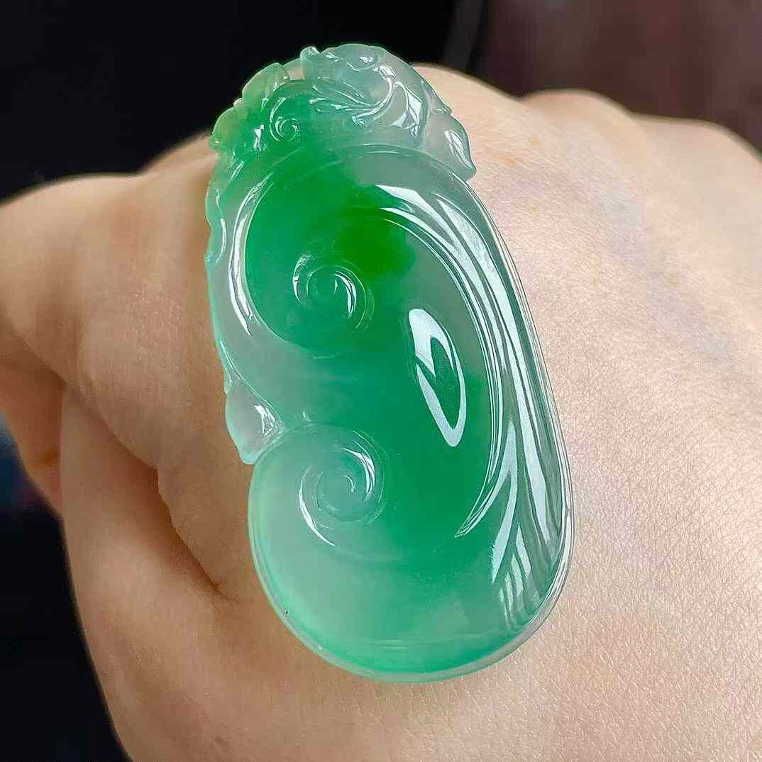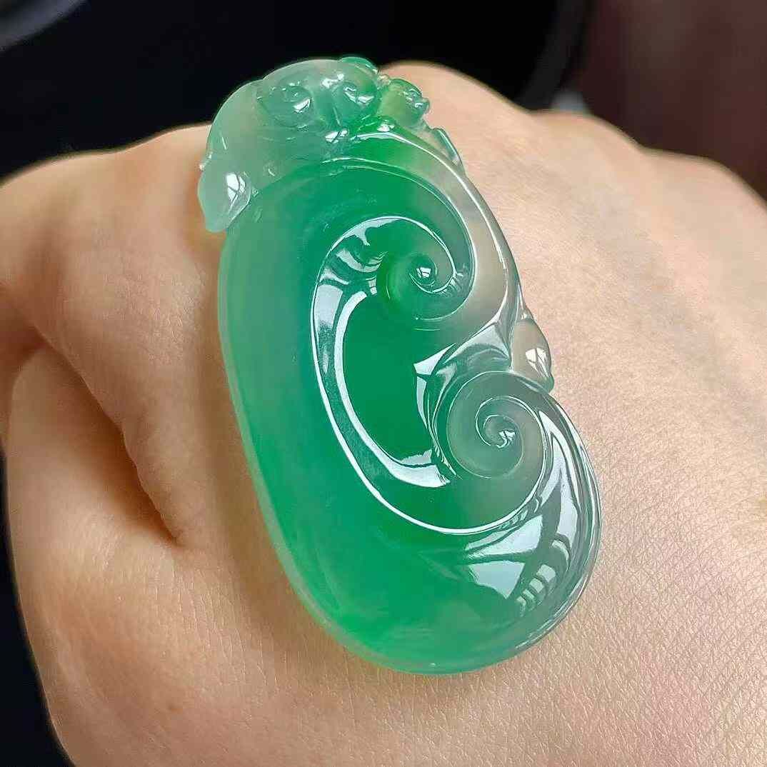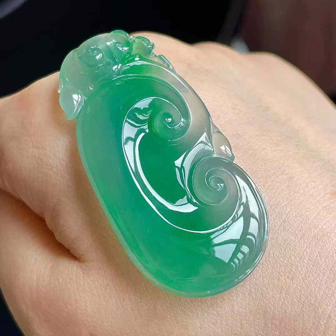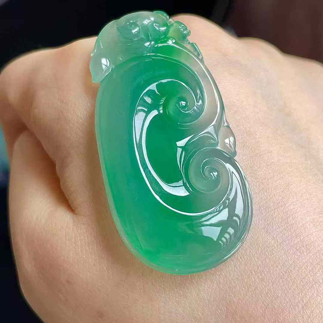 • 翡翠冰陽綠如意吊墜,天然翡翠A玉, 緬甸玉, Jade, Jadeite