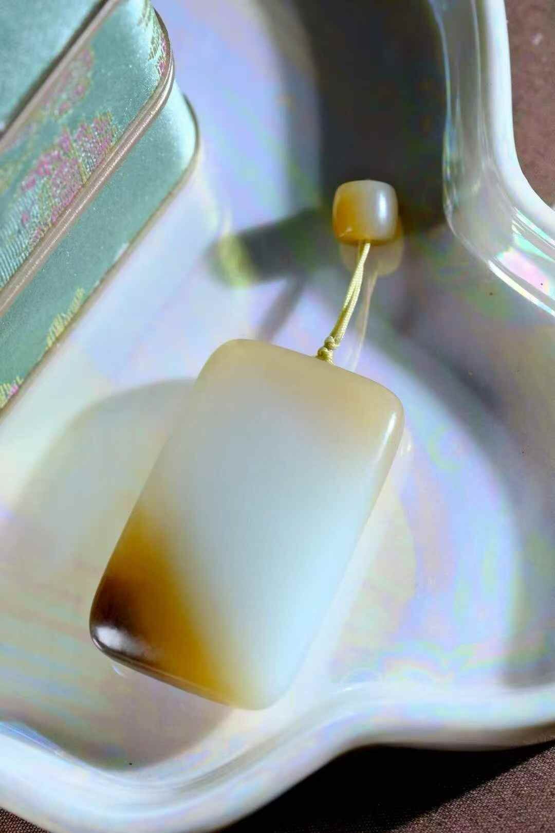 • 和田玉糖白平安無事牌,天然和田玉軟玉