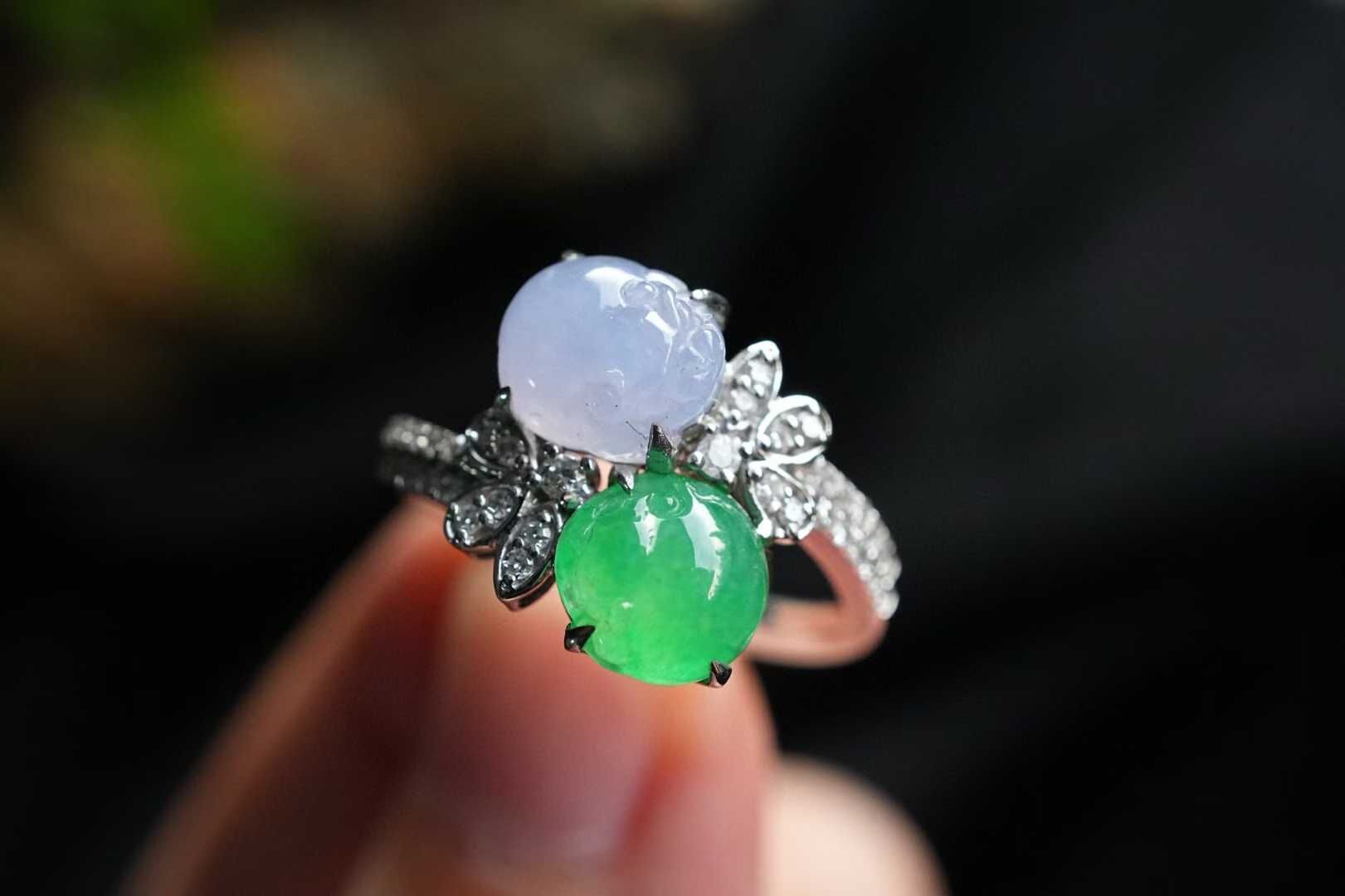 • 翡翠雙色貔貅戒指,天然翡翠A玉, 緬甸玉, Jade, Jadeite