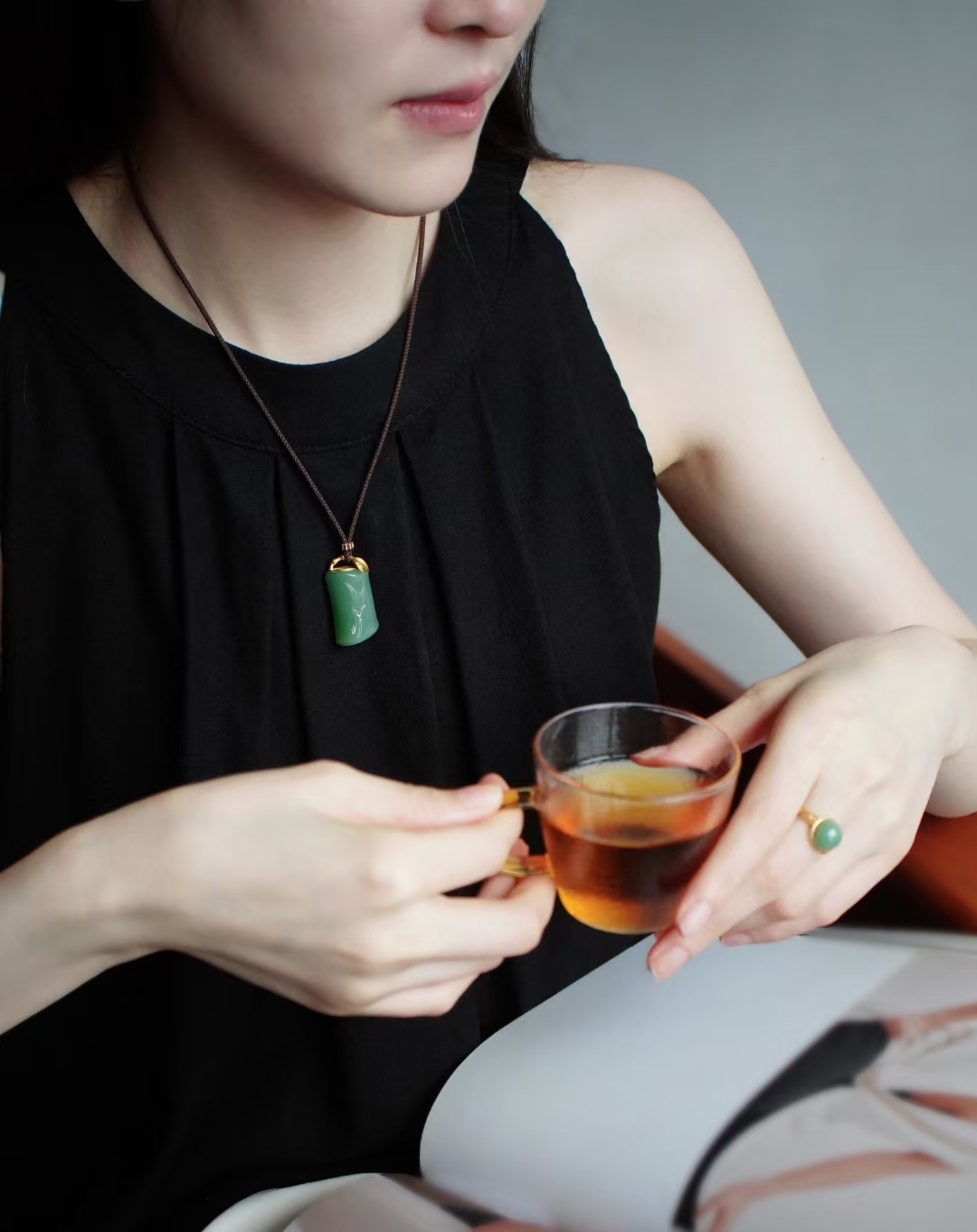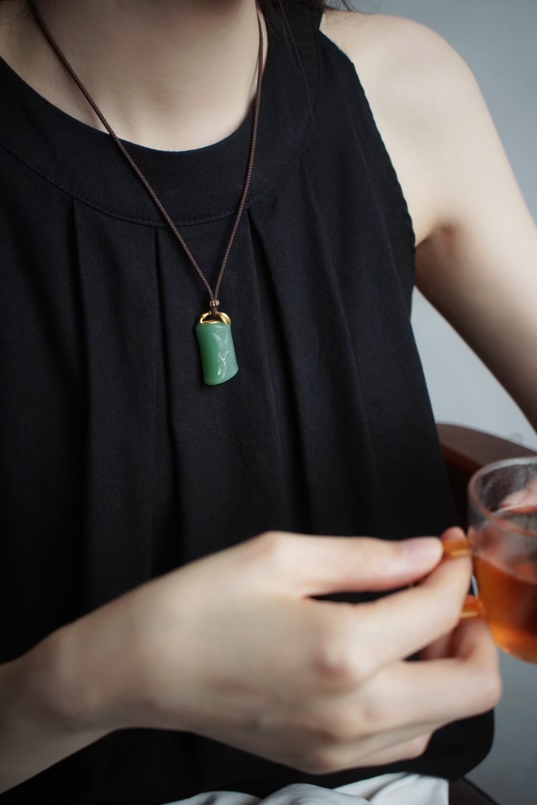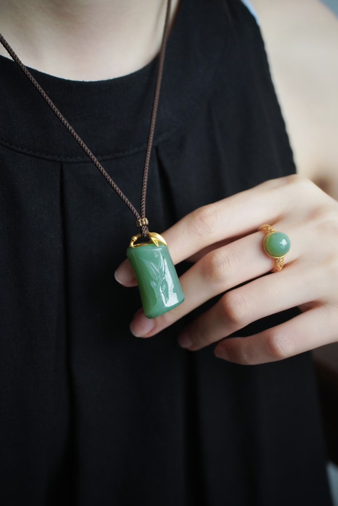 搭配純手工製作進口繩,繞線精緻牢固,18K金立體竹節扣頭首尾呼應主題,佩戴典雅大氣,可與戒指配套。