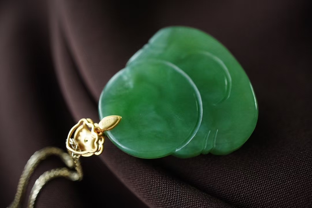 和田玉碧玉果綠,顏色濃郁鮮亮,玉質細膩油潤,過燈乾淨,背面一處棉紋不影響,無雜無裂完美品相。