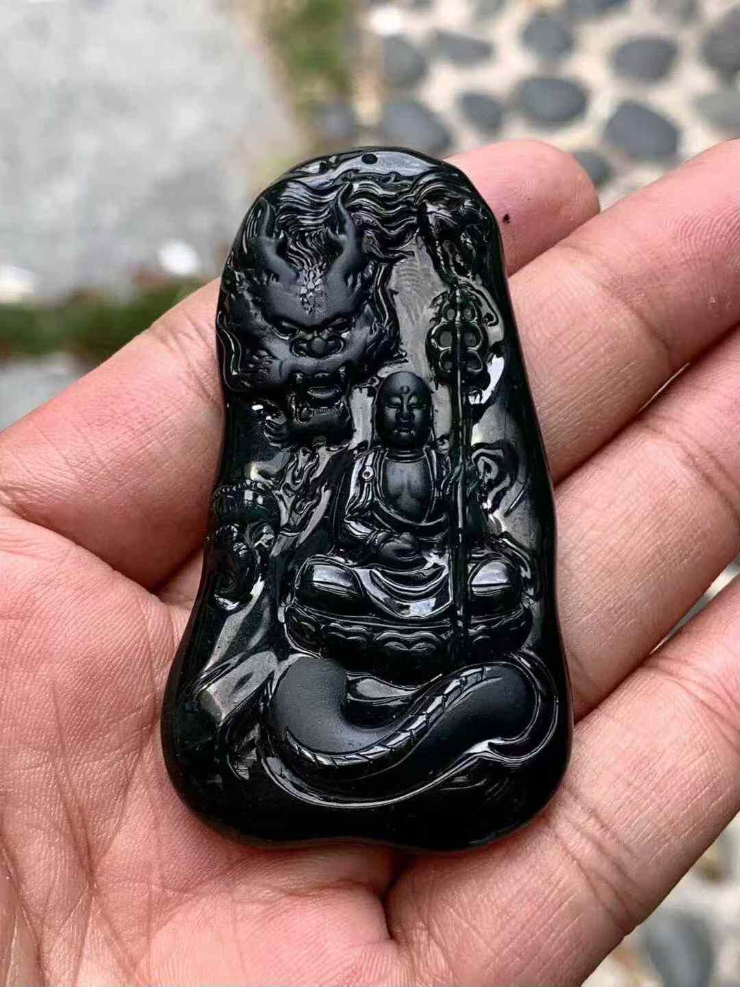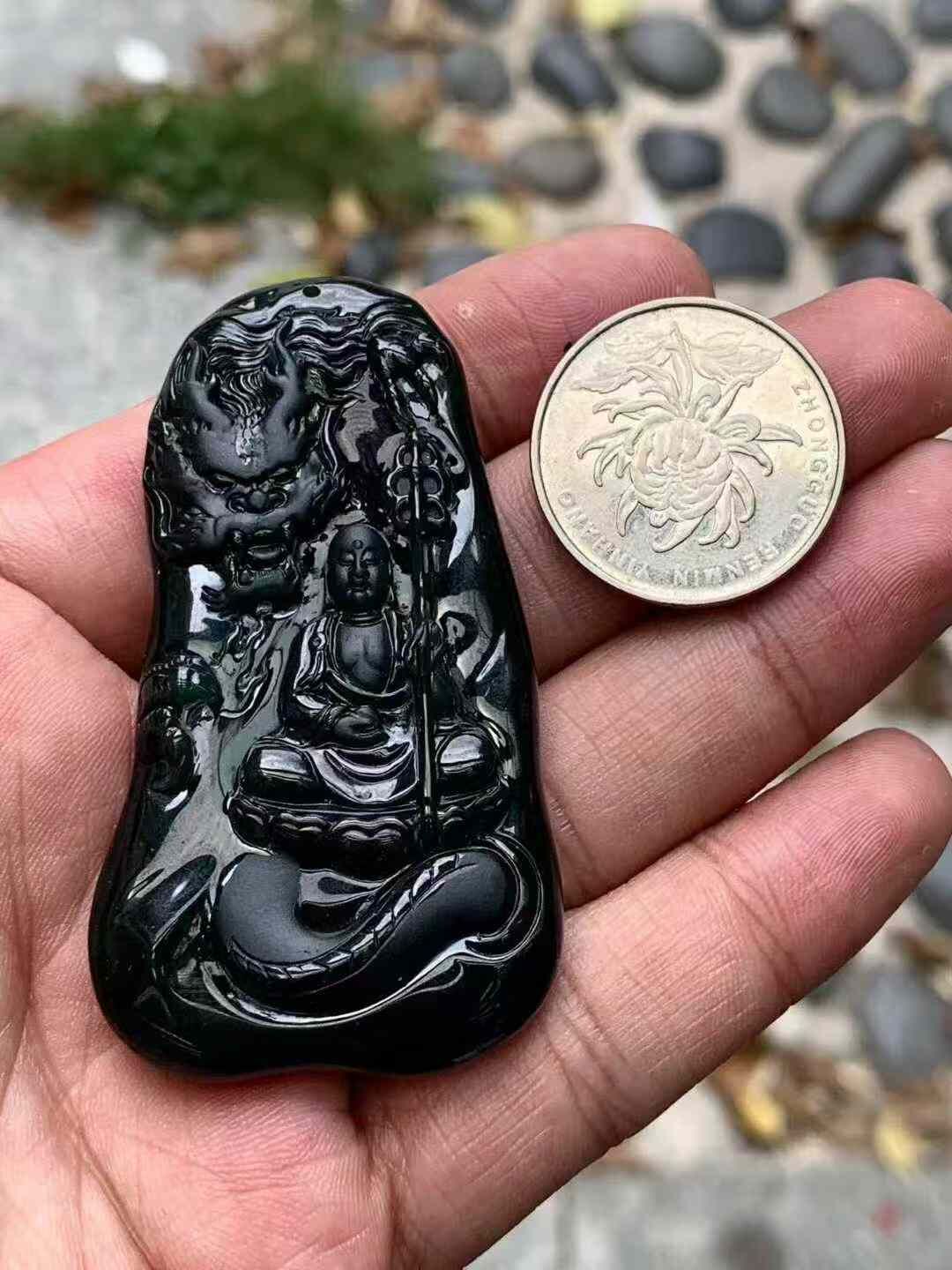 • 翡翠墨翠地藏王菩薩,天然翡翠A玉, 緬甸玉, Jade, Jadeite