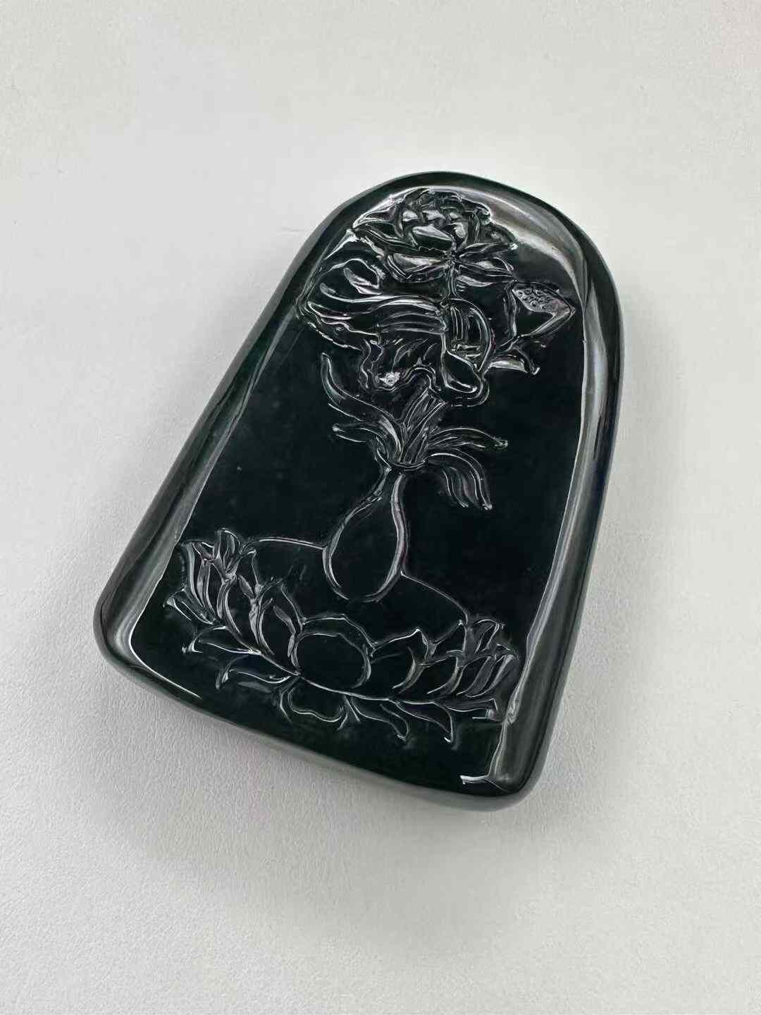 天然翡翠A玉,燈照透綠,雕工精美,完美無紋裂。