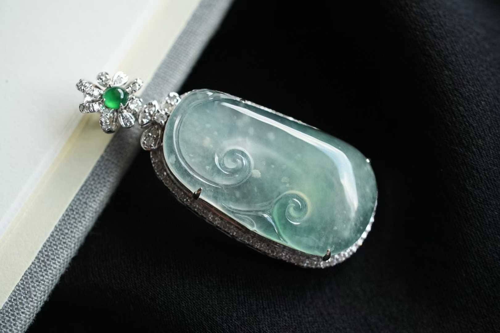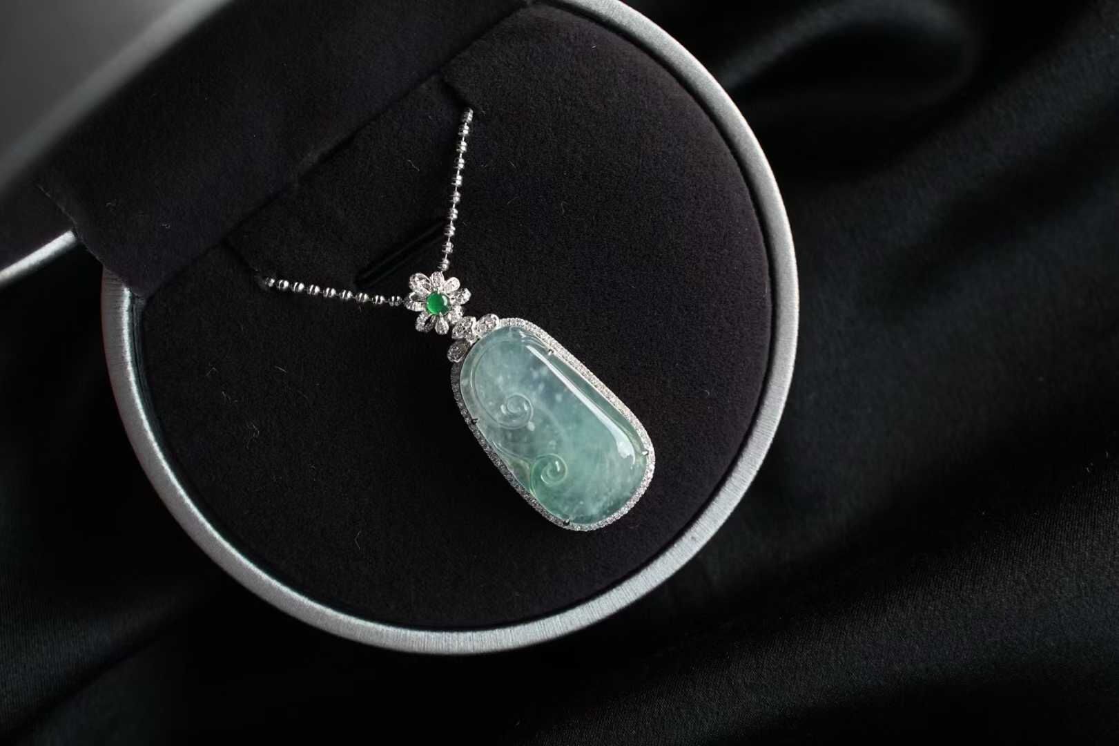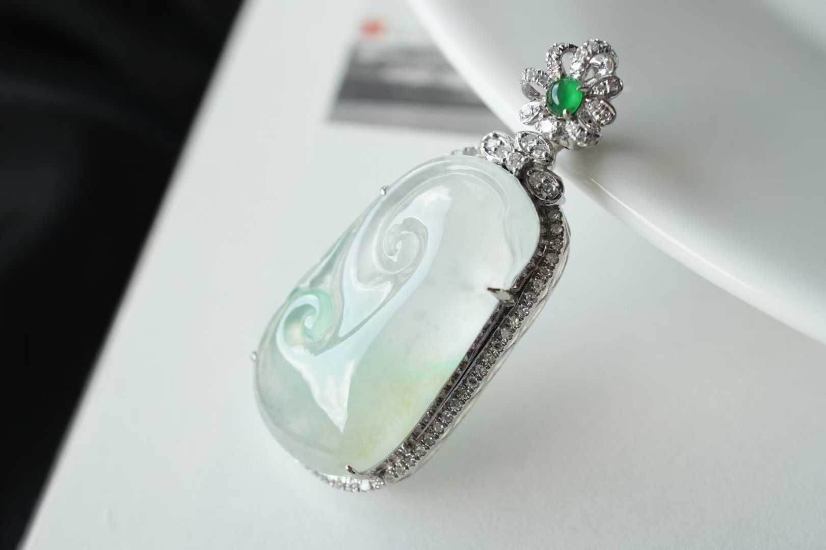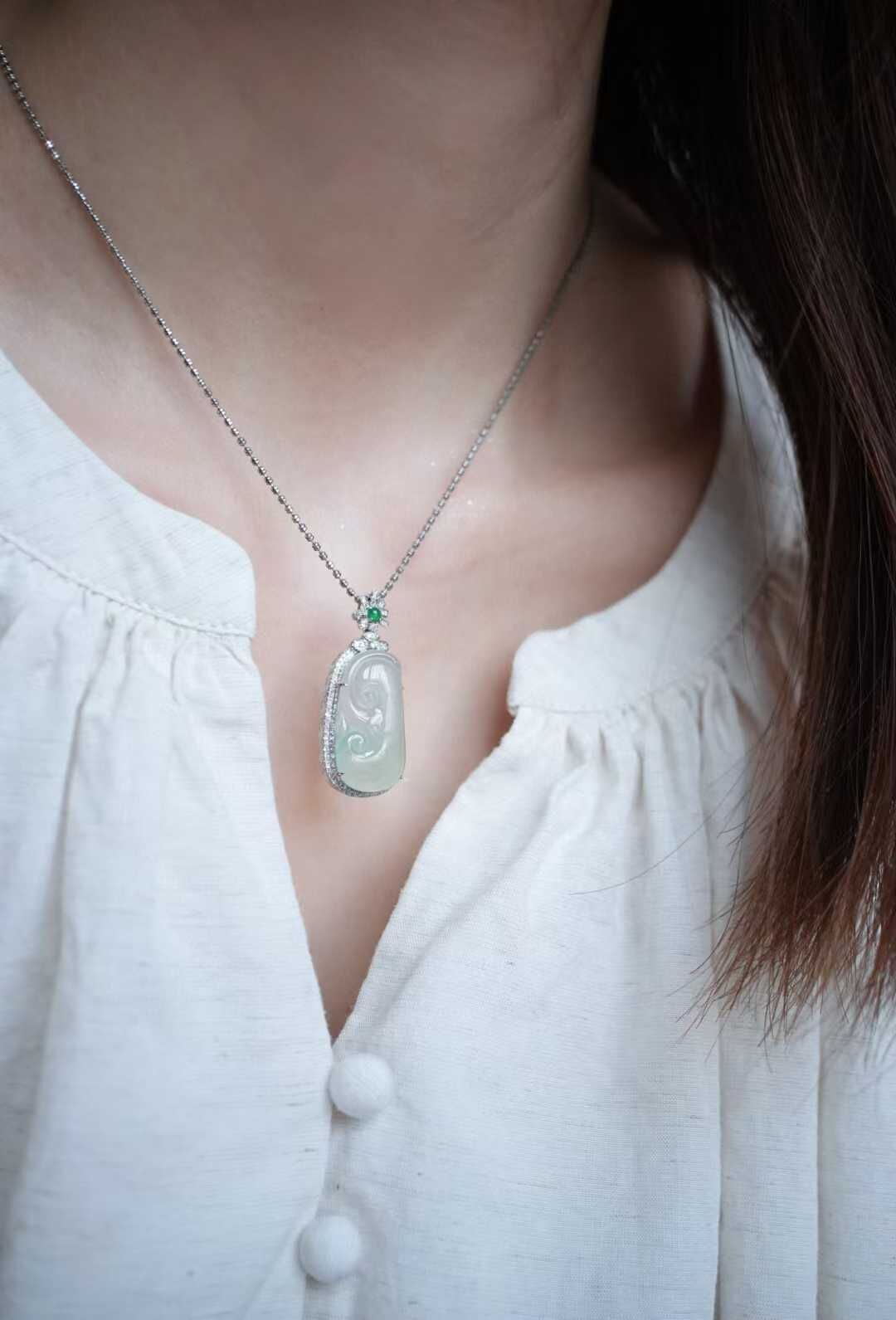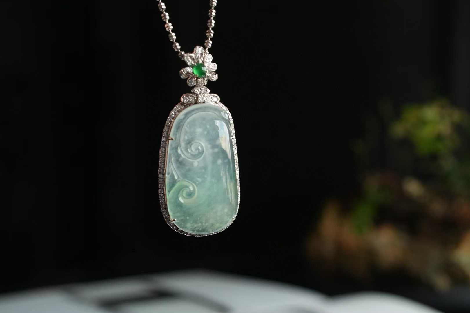 • 翡翠木那雪花棉如意吊墜,天然翡翠A玉, 緬甸玉, Jade, Jadeite