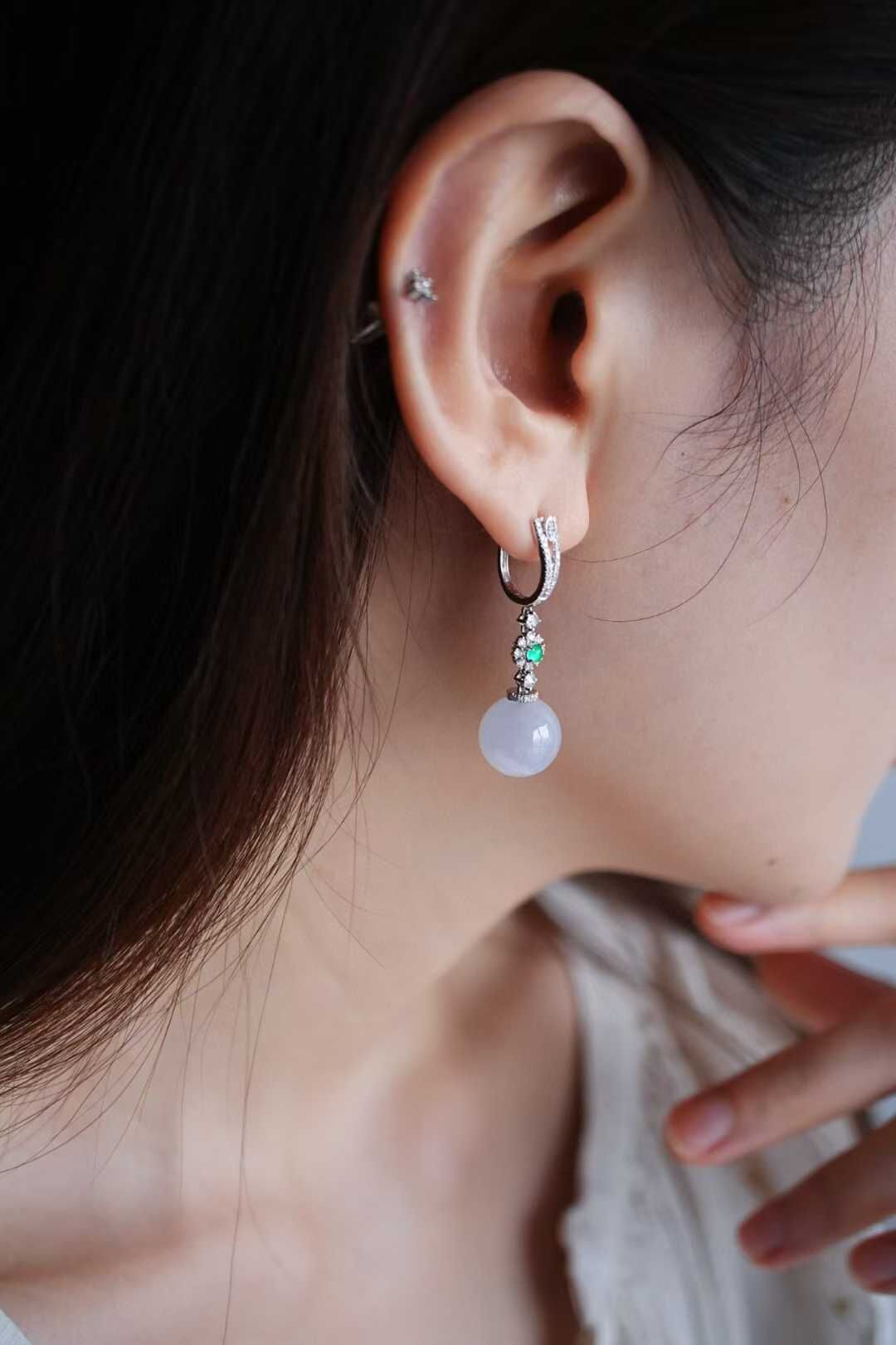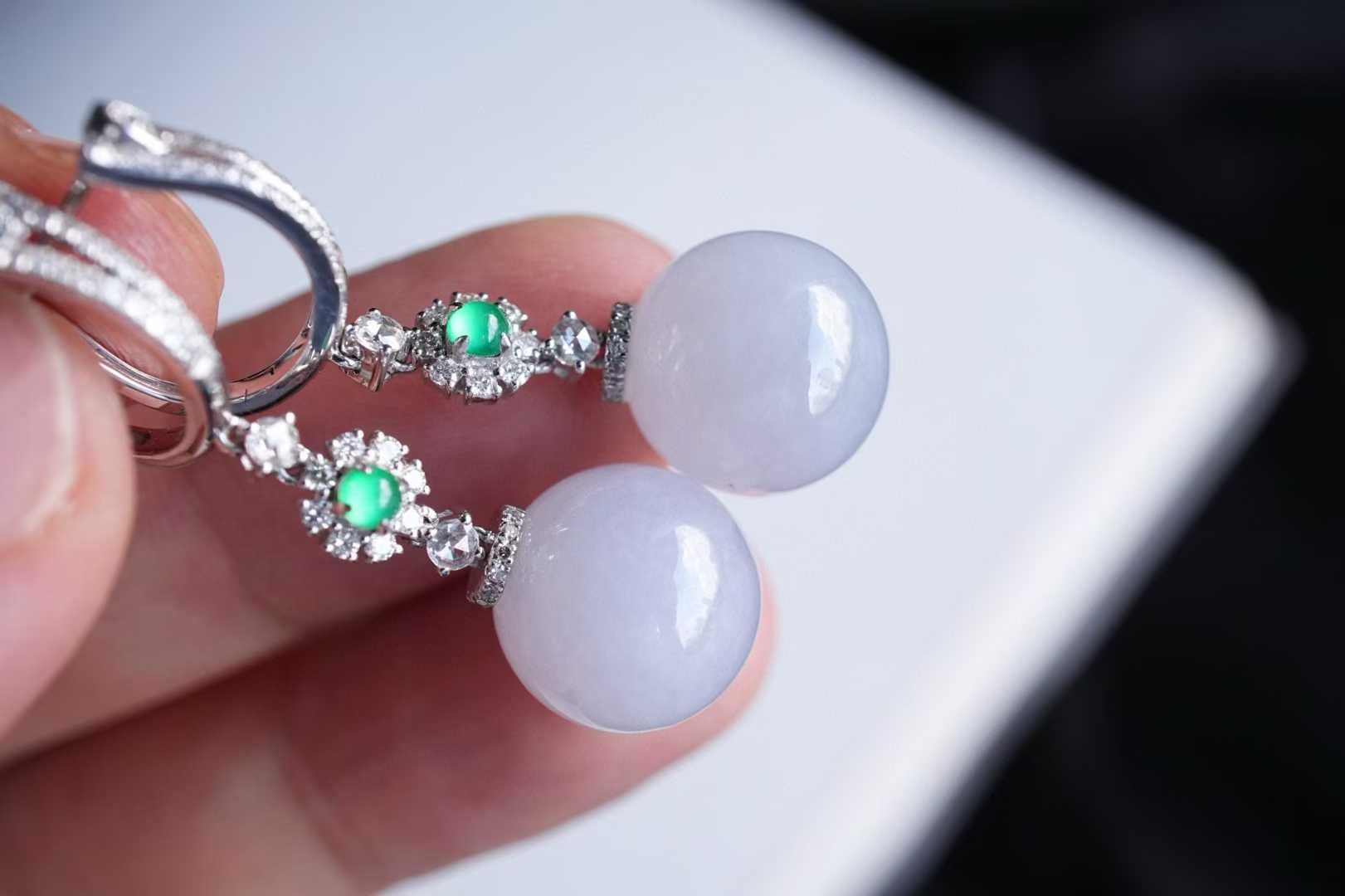 天然翡翠A玉,緬料老坑種,仙氣十足的紫珠,最能詮釋女性的柔美。珠圓玉潤,上身溫溫柔柔,很好看!18K金鑽石鑲嵌,扣頭點綴綠蛋面,精緻優雅。