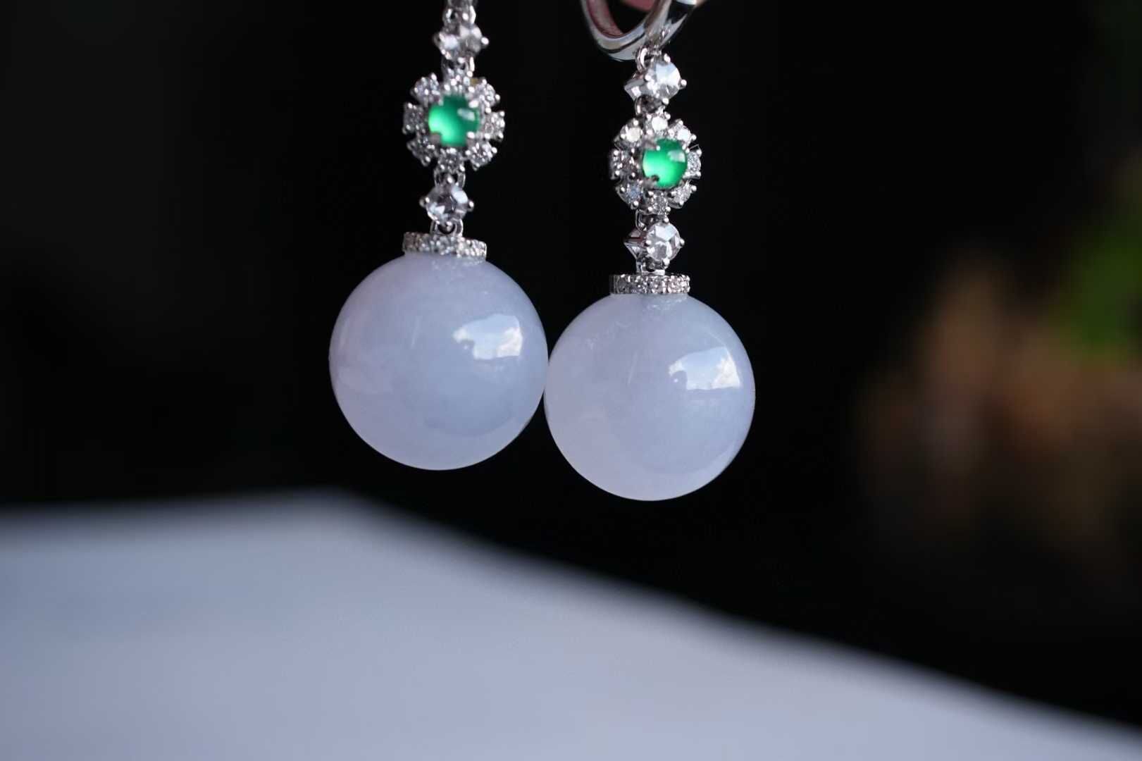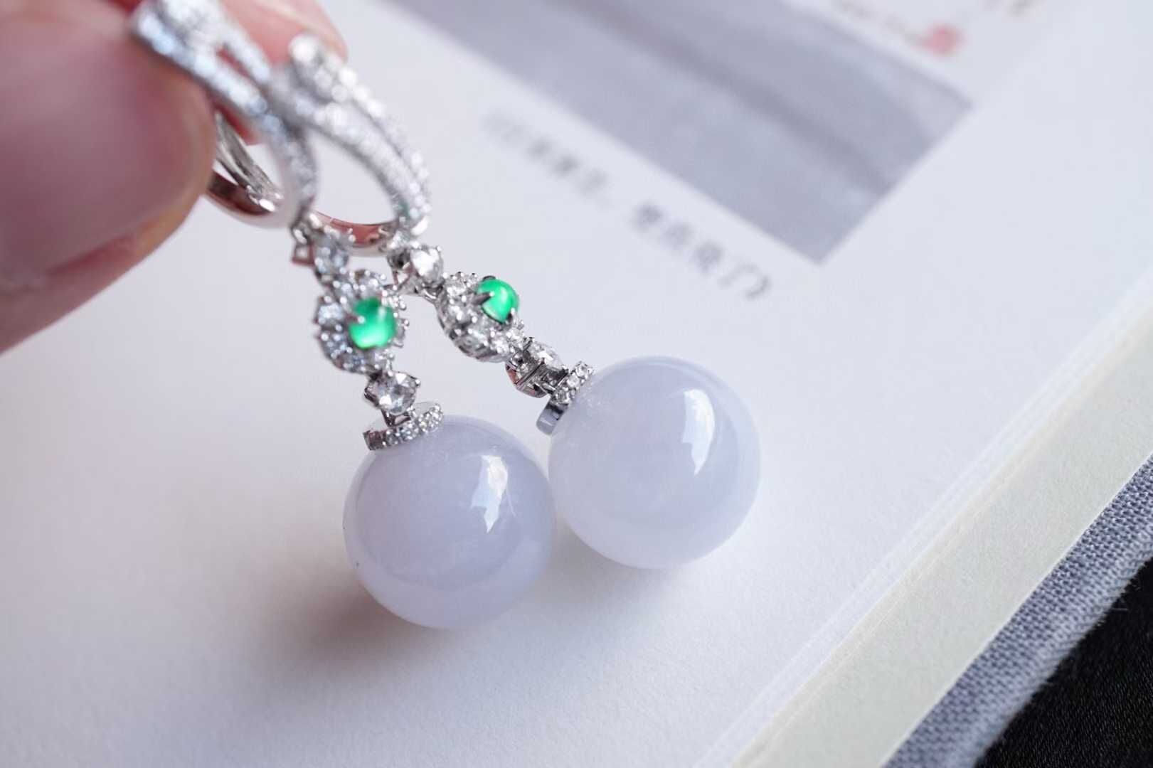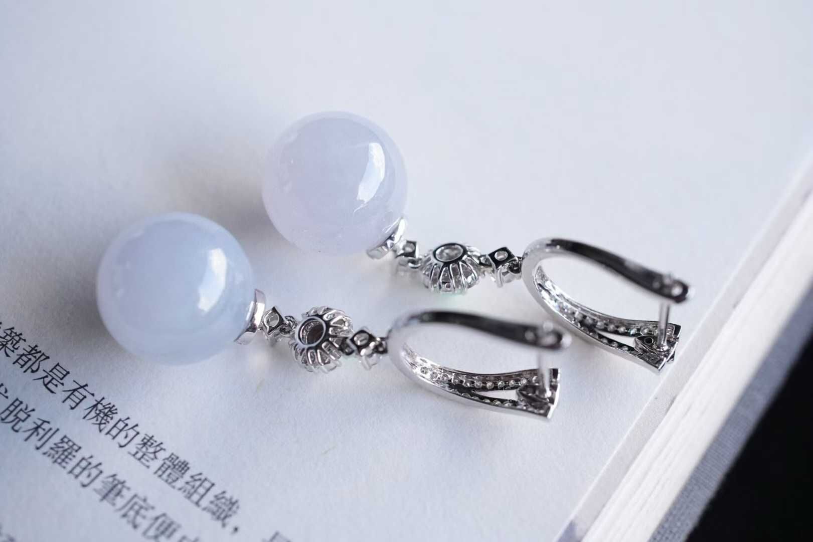 • 翡翠冰紫羅蘭圓珠耳墜 (11.8mm直徑),天然翡翠A玉, 緬甸玉, Jade, Jadeite