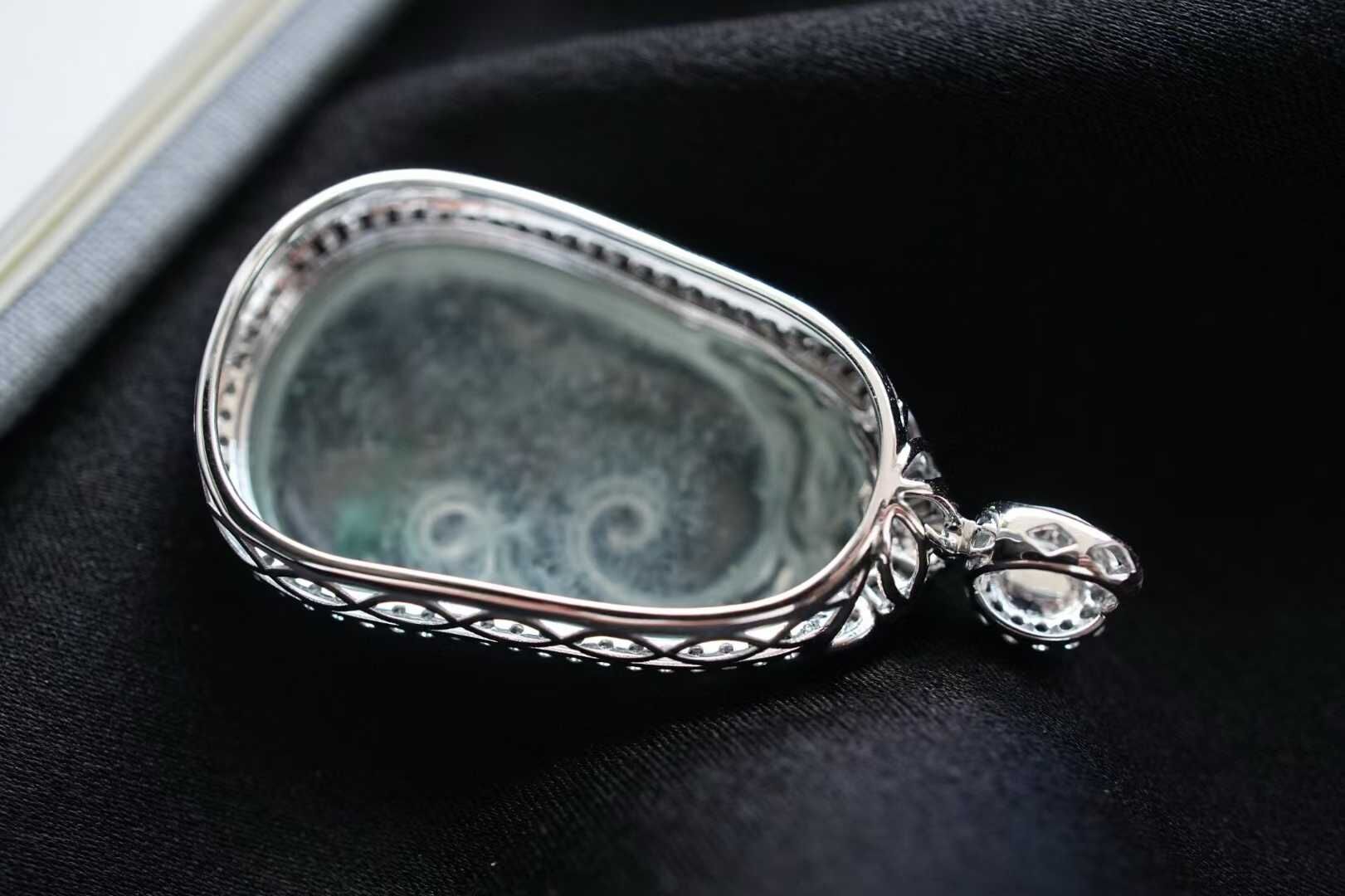 9982 翡翠冰種木那雪花棉如意吊墜