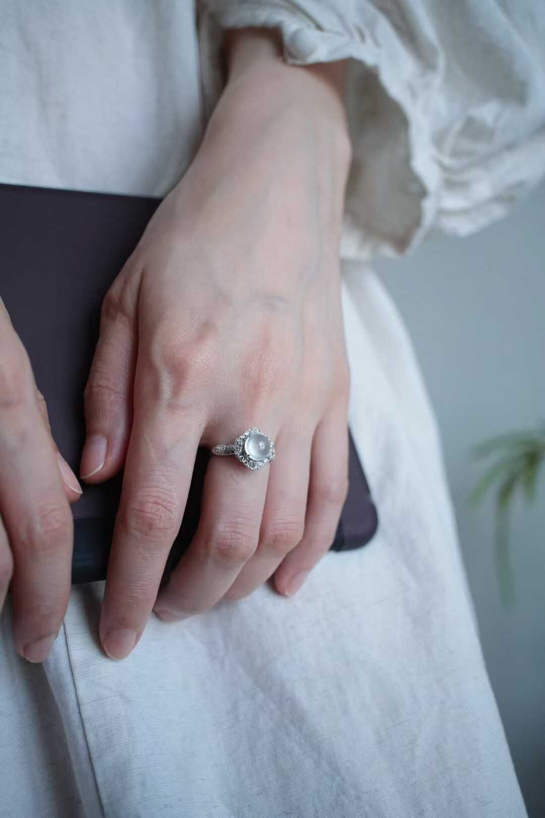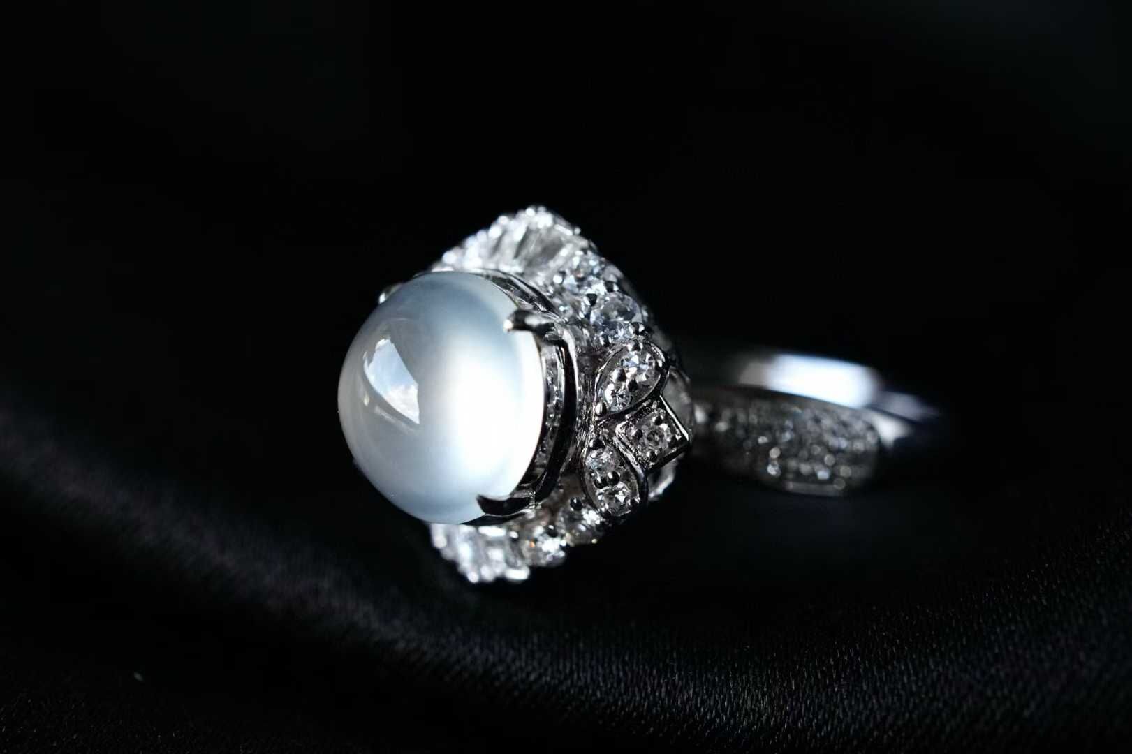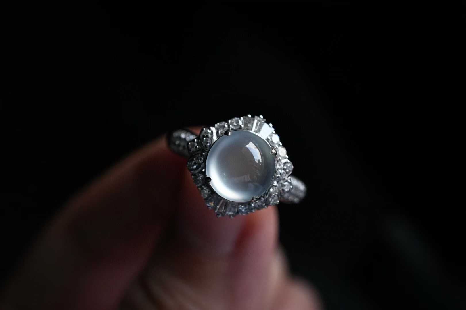 • 翡翠高冰種蛋面戒指,天然翡翠A玉, 緬甸玉, Jade, Jadeite