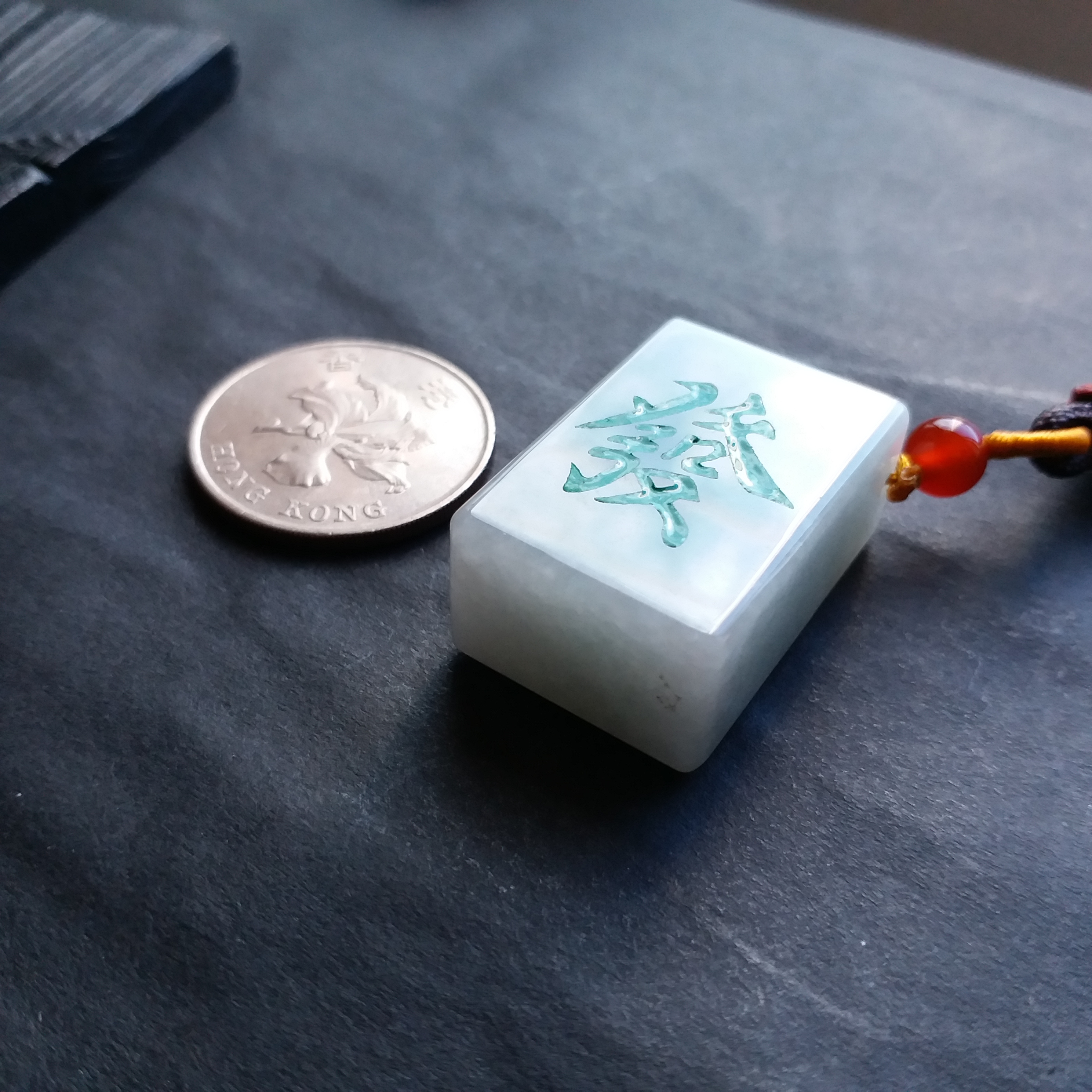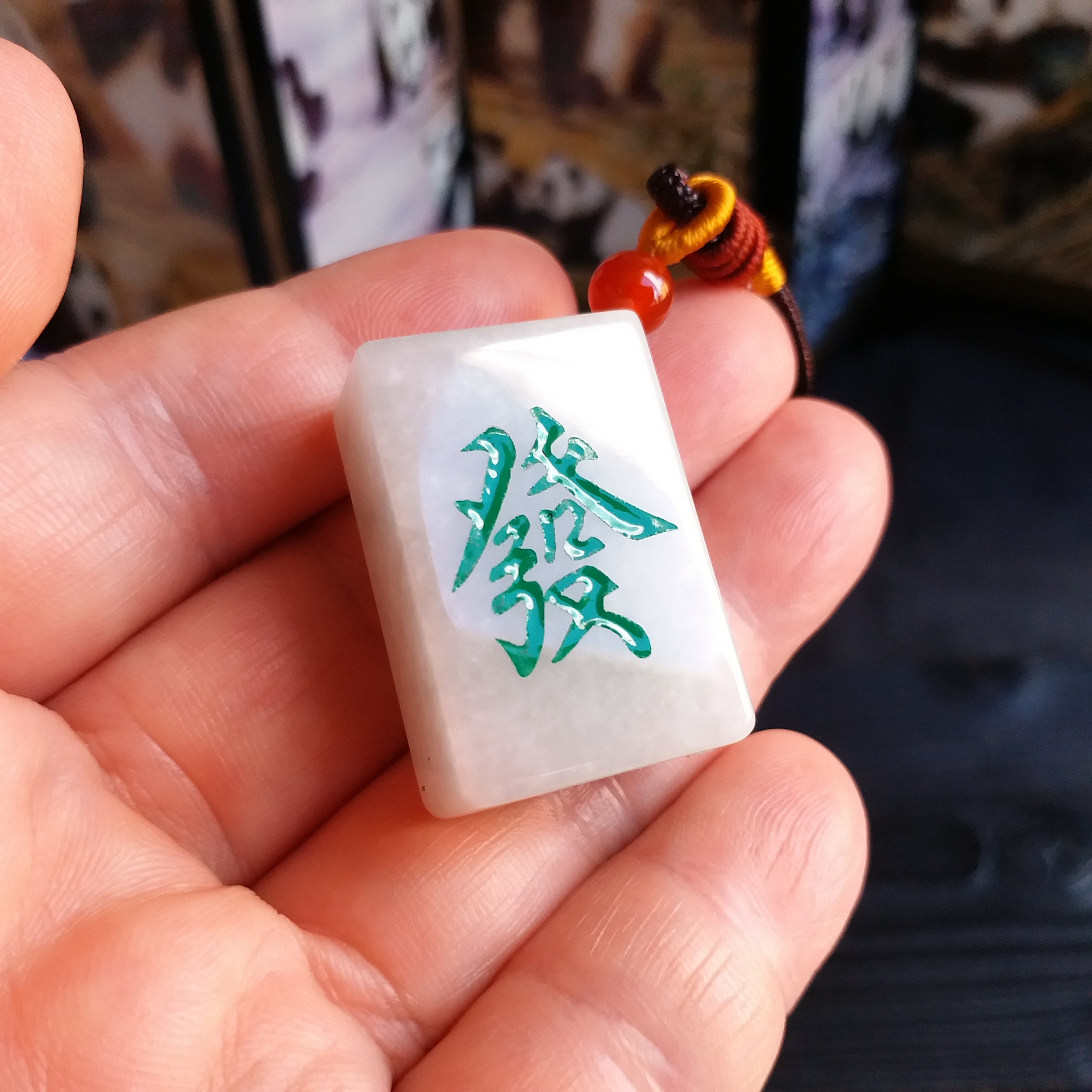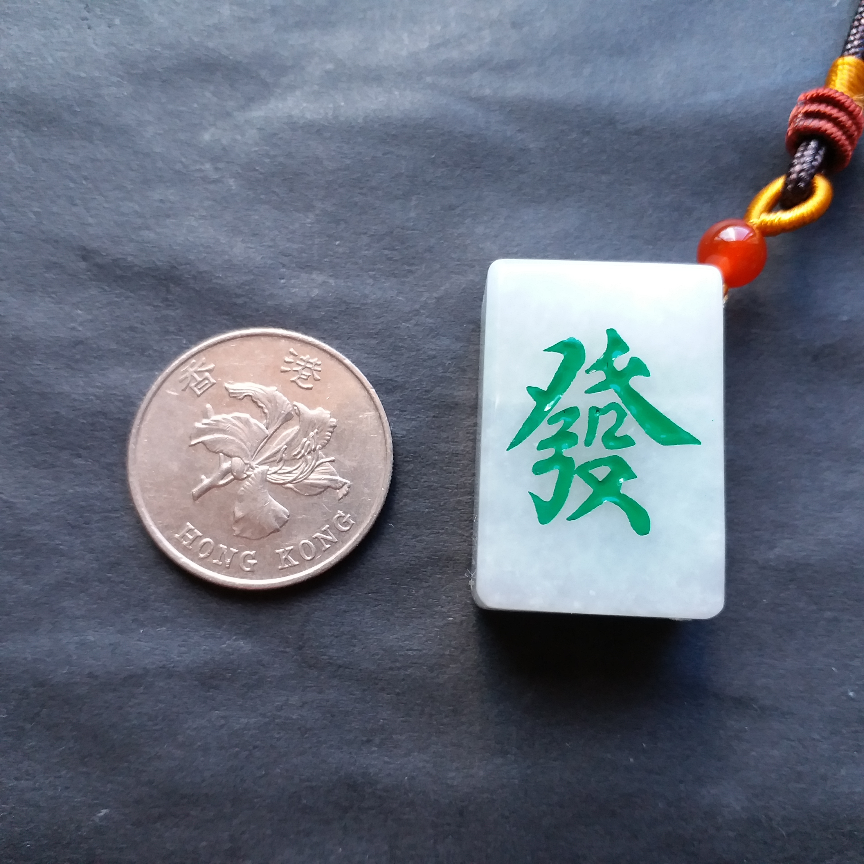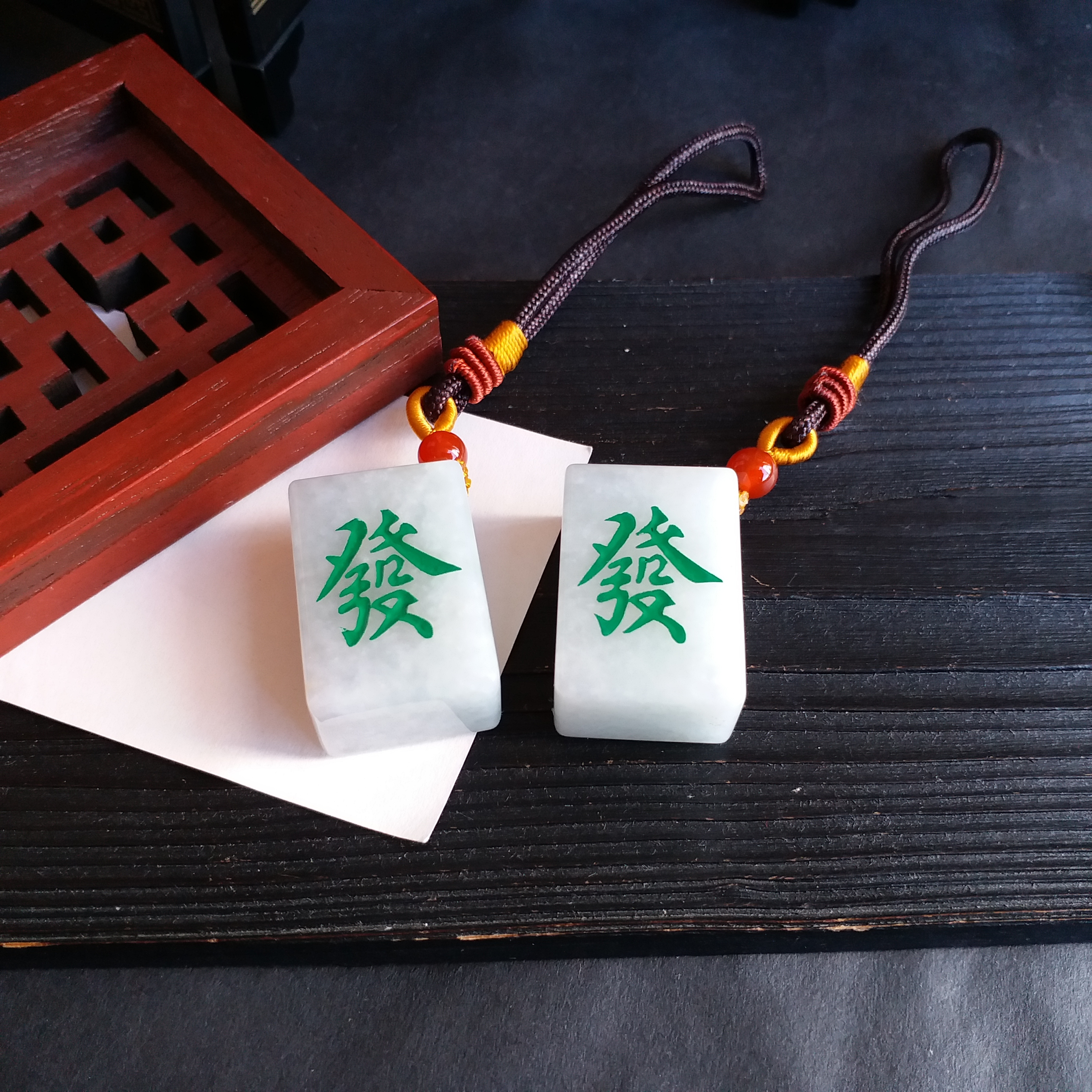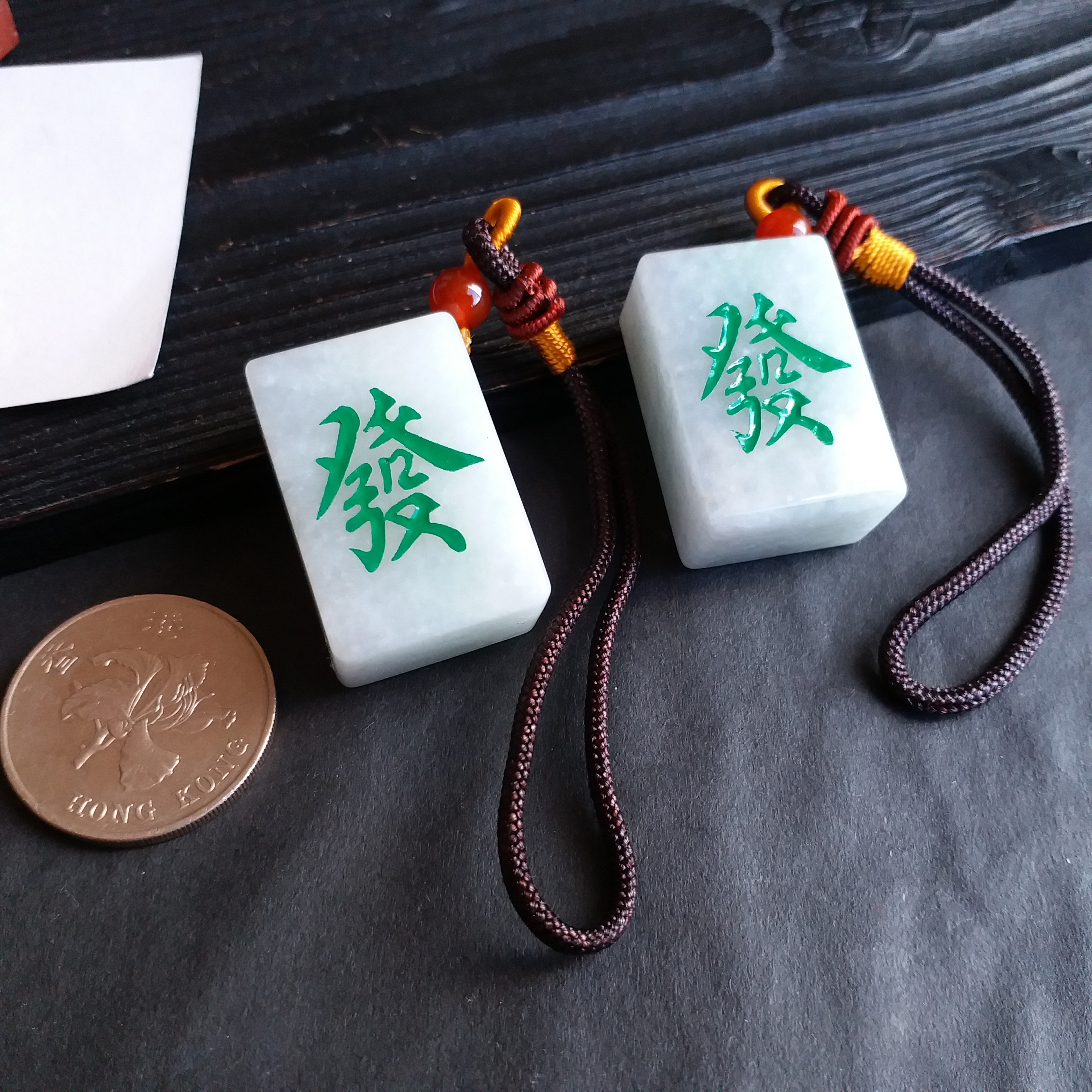 • 翡翠發財麻雀牌一對, 天然翡翠A玉, 緬甸玉, Jade, Jadeite