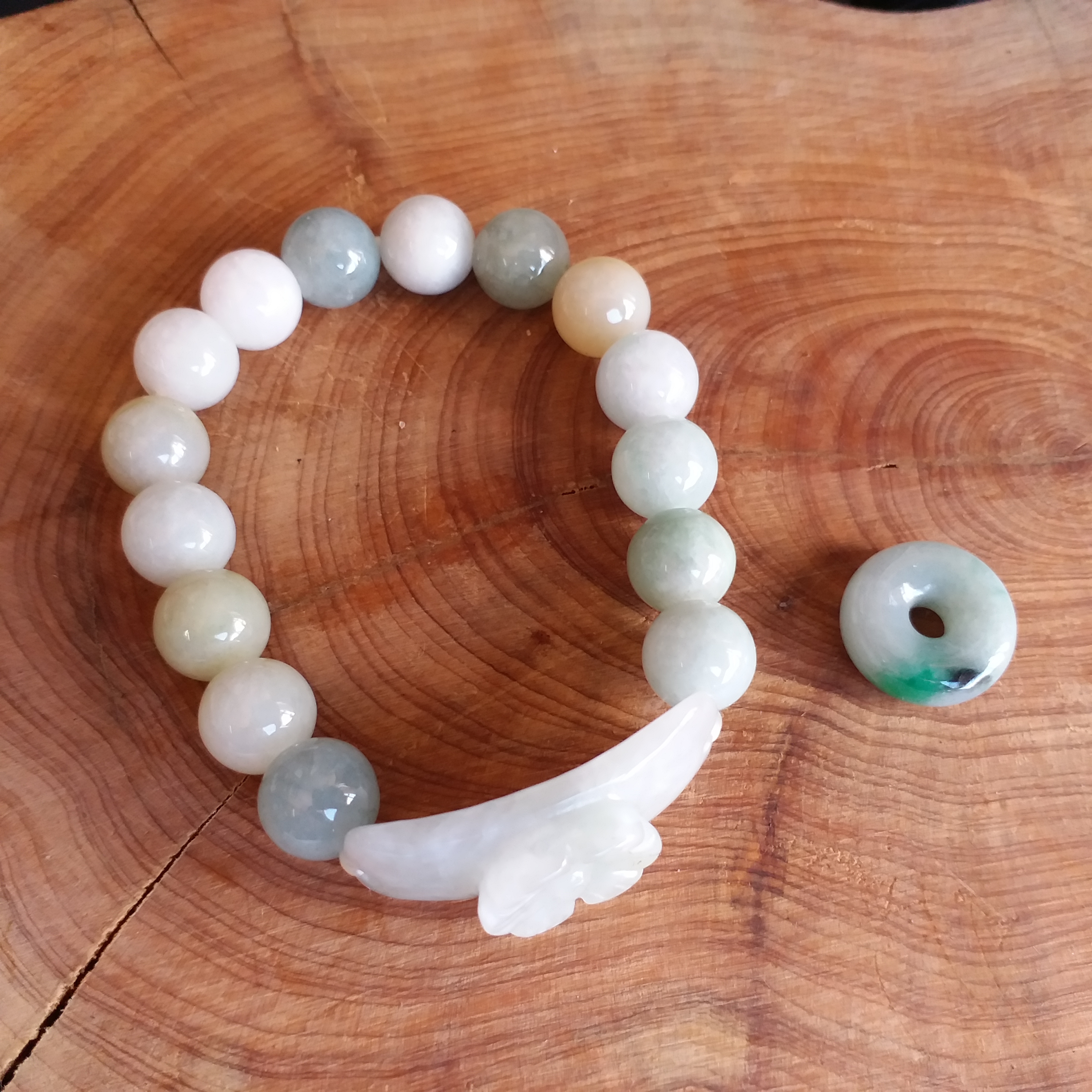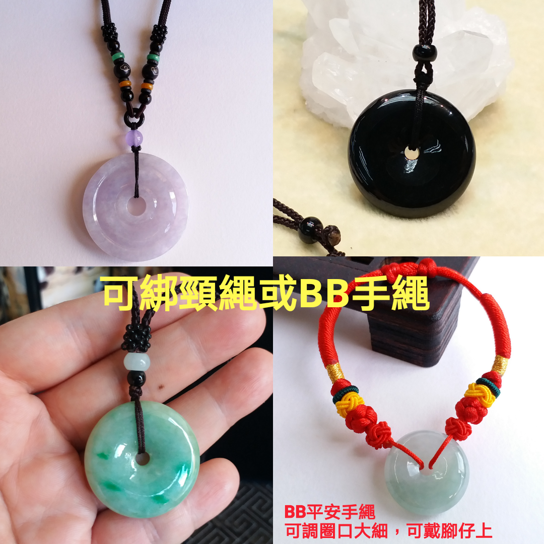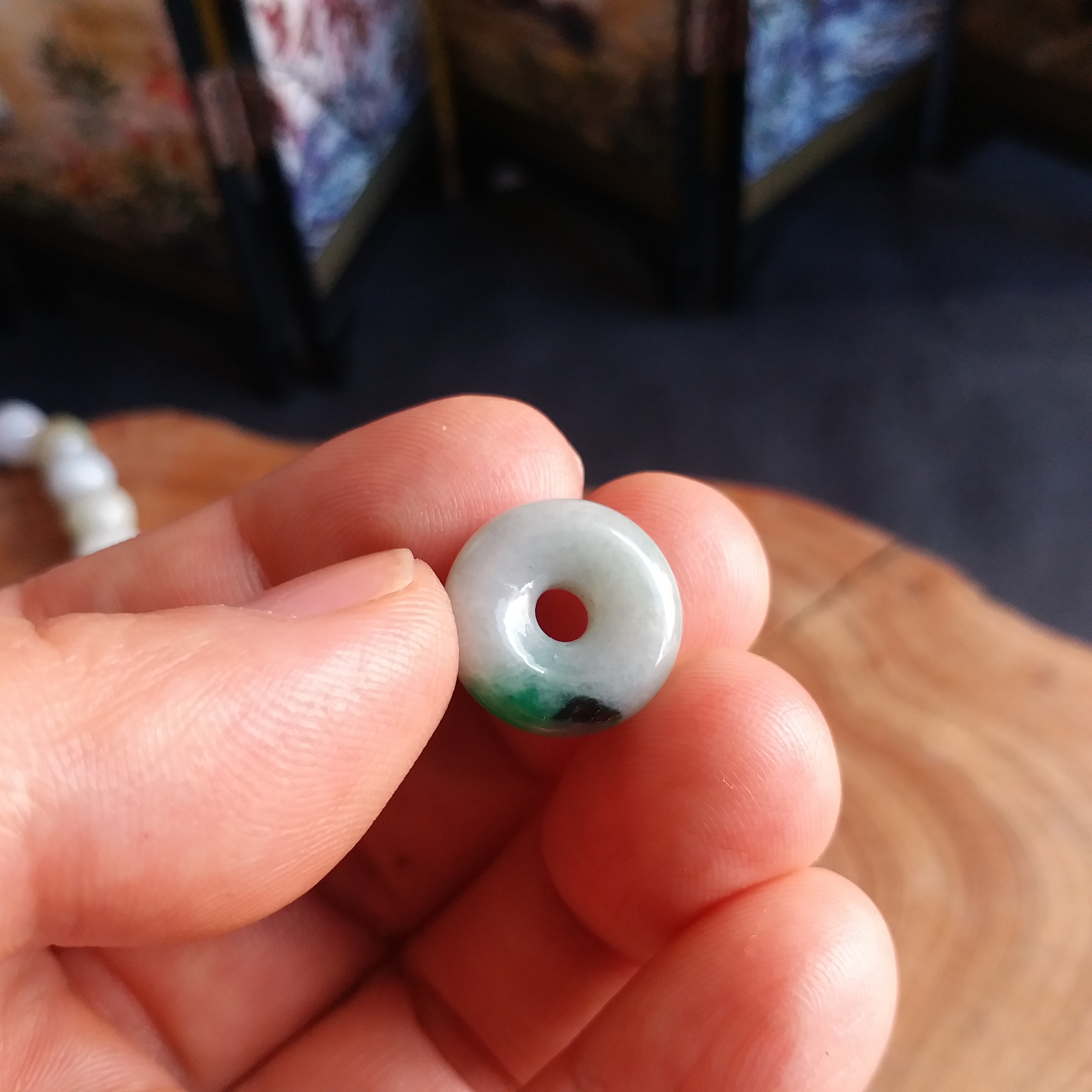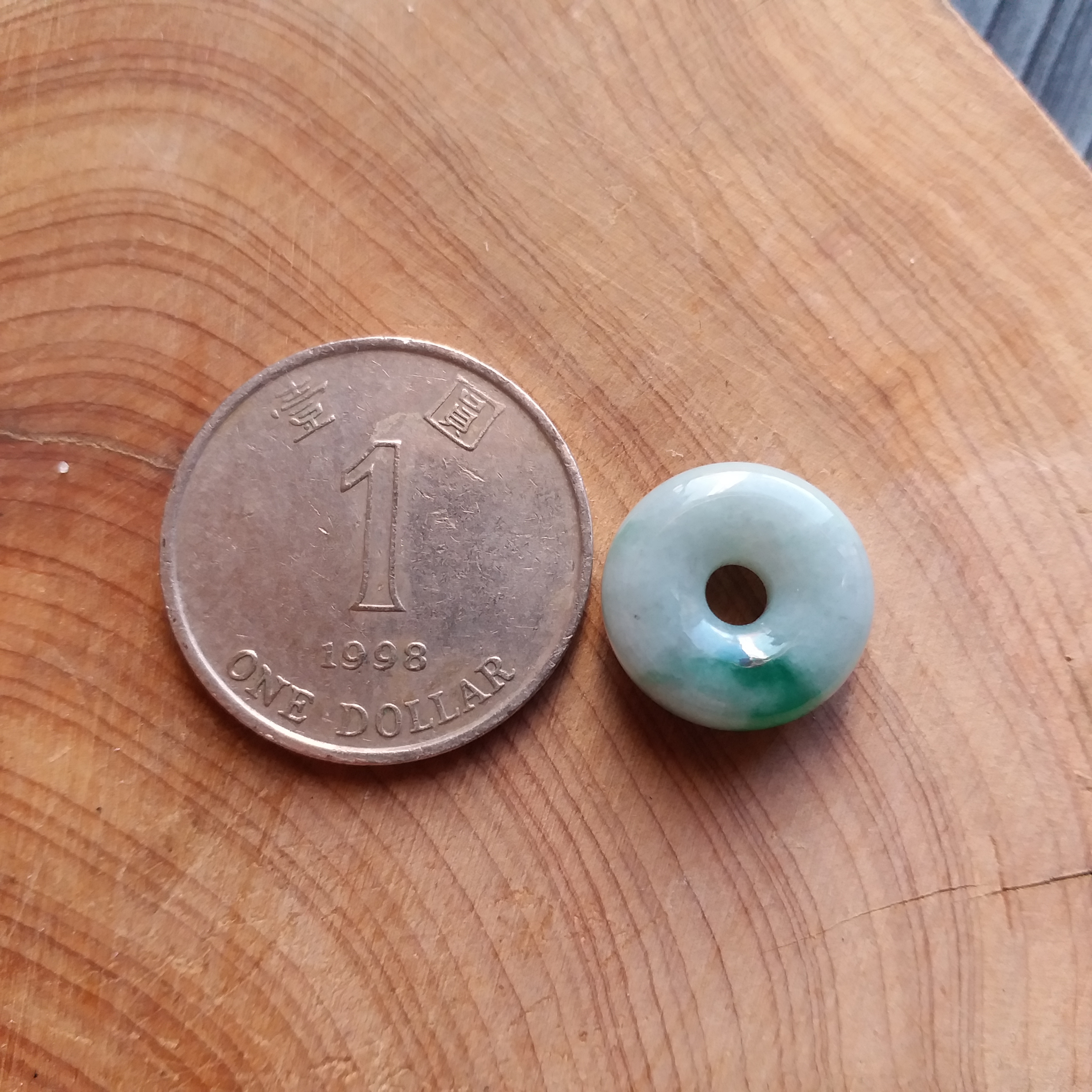• 飄綠小平安扣+花牌手珠串, 天然翡翠A玉, 緬甸玉, Jade, Jadeite