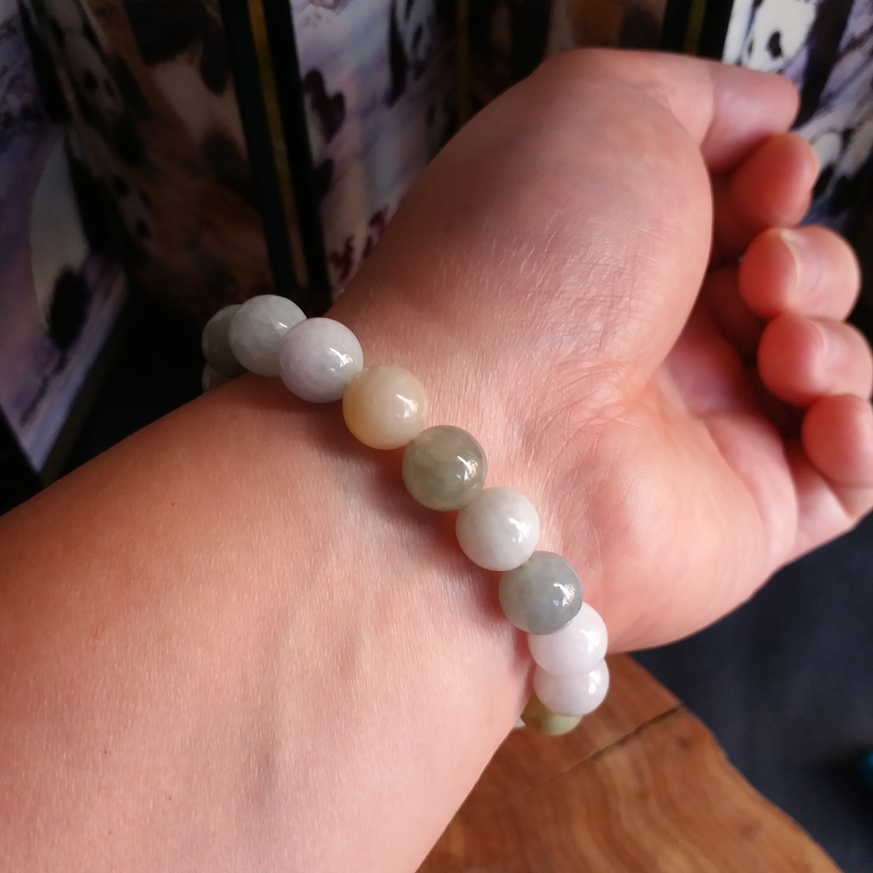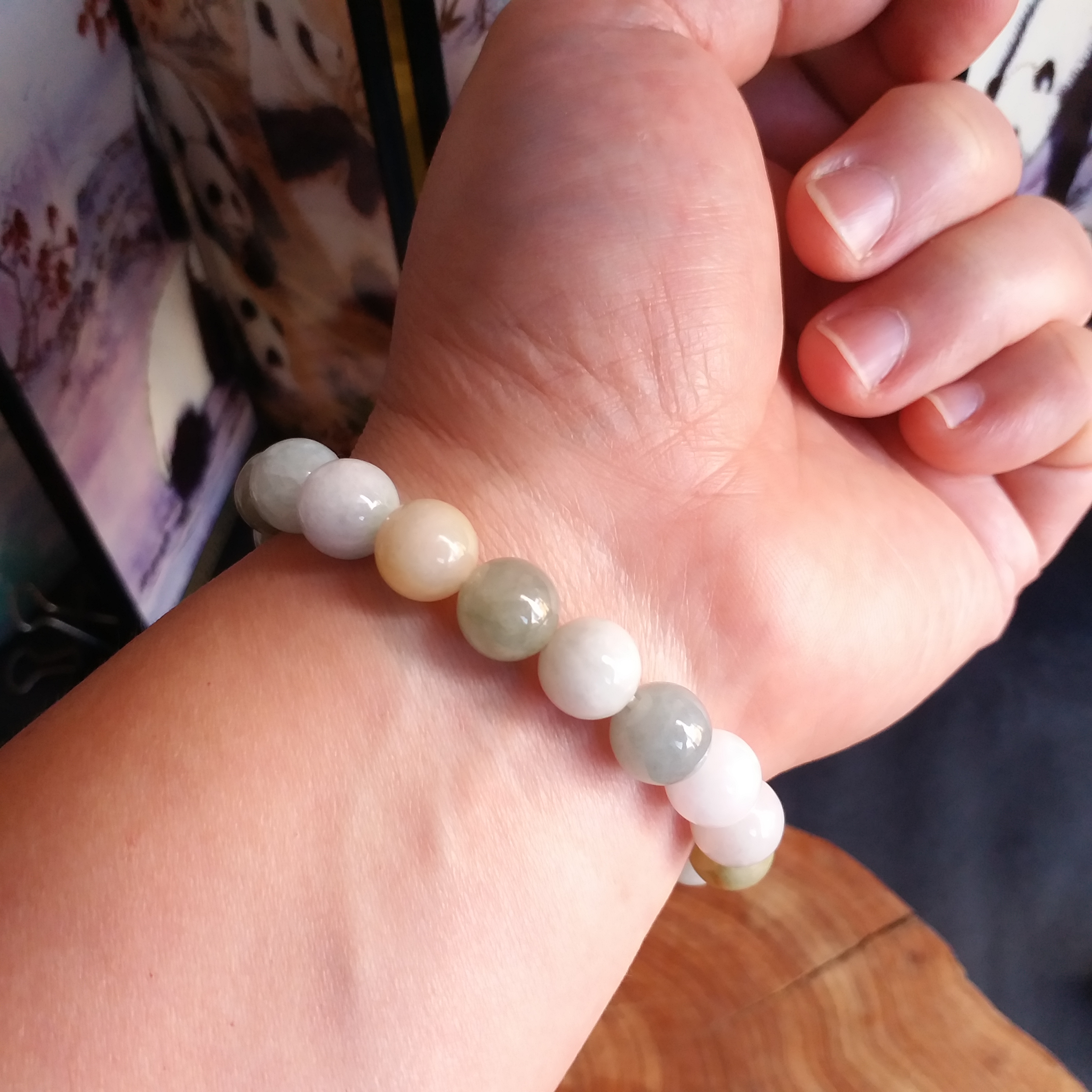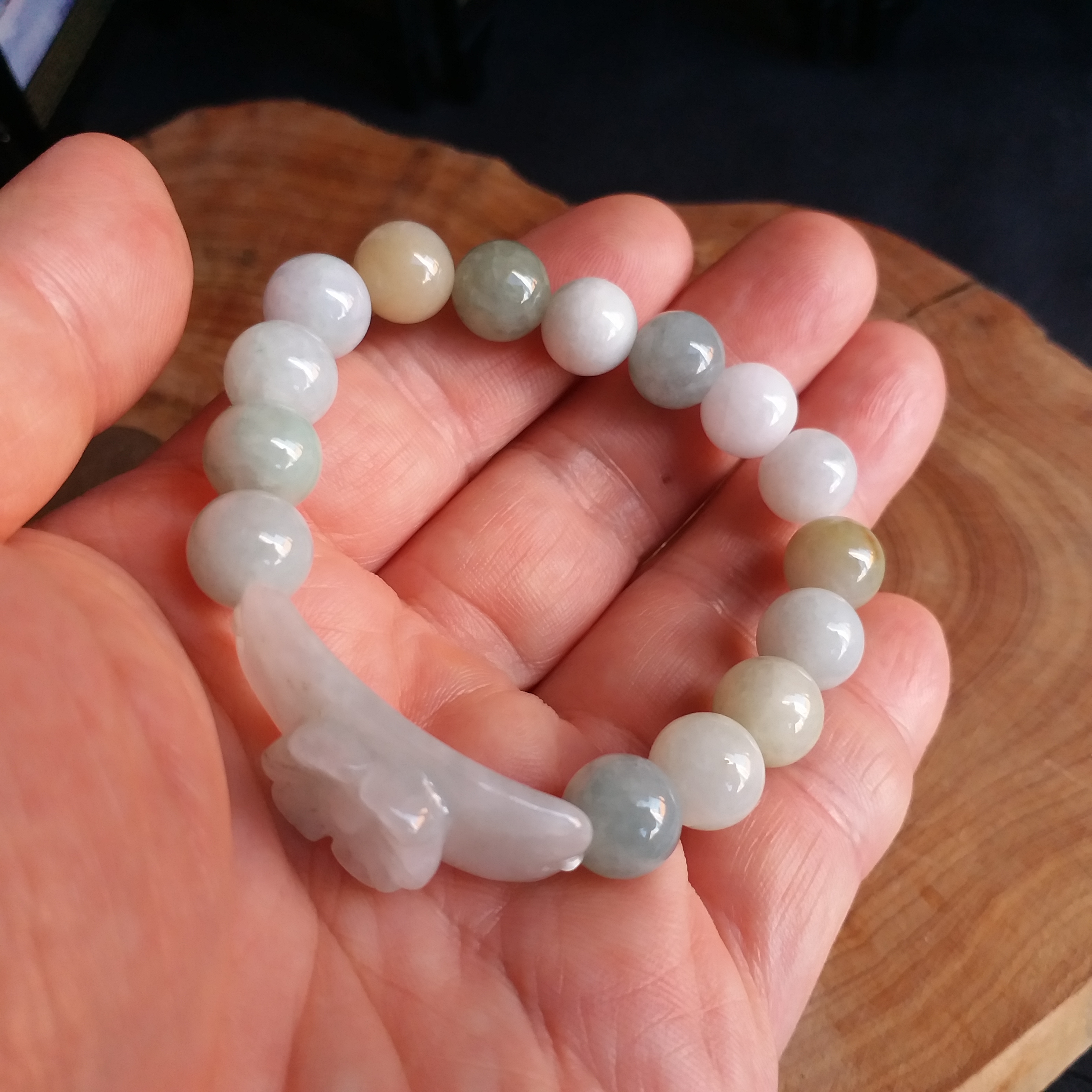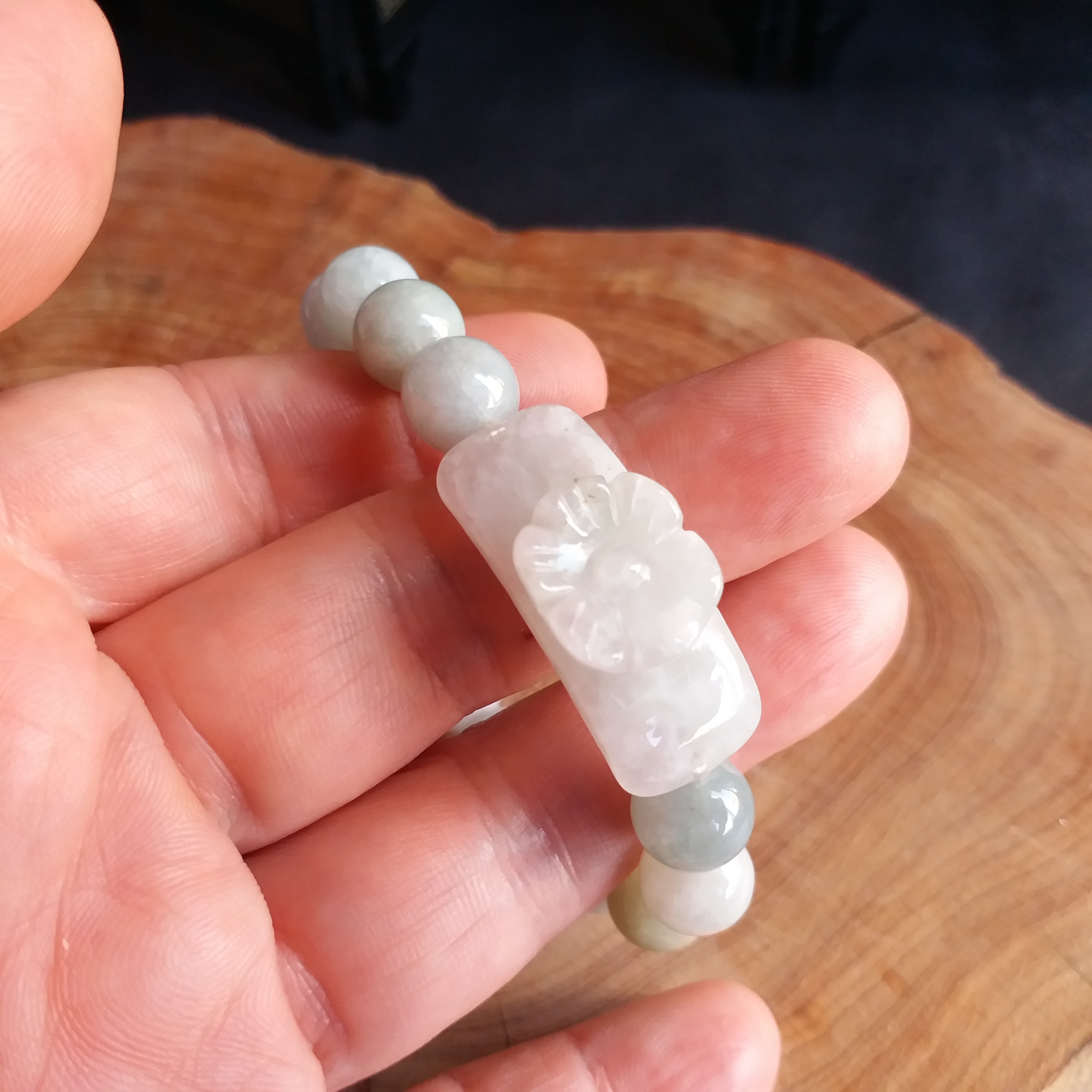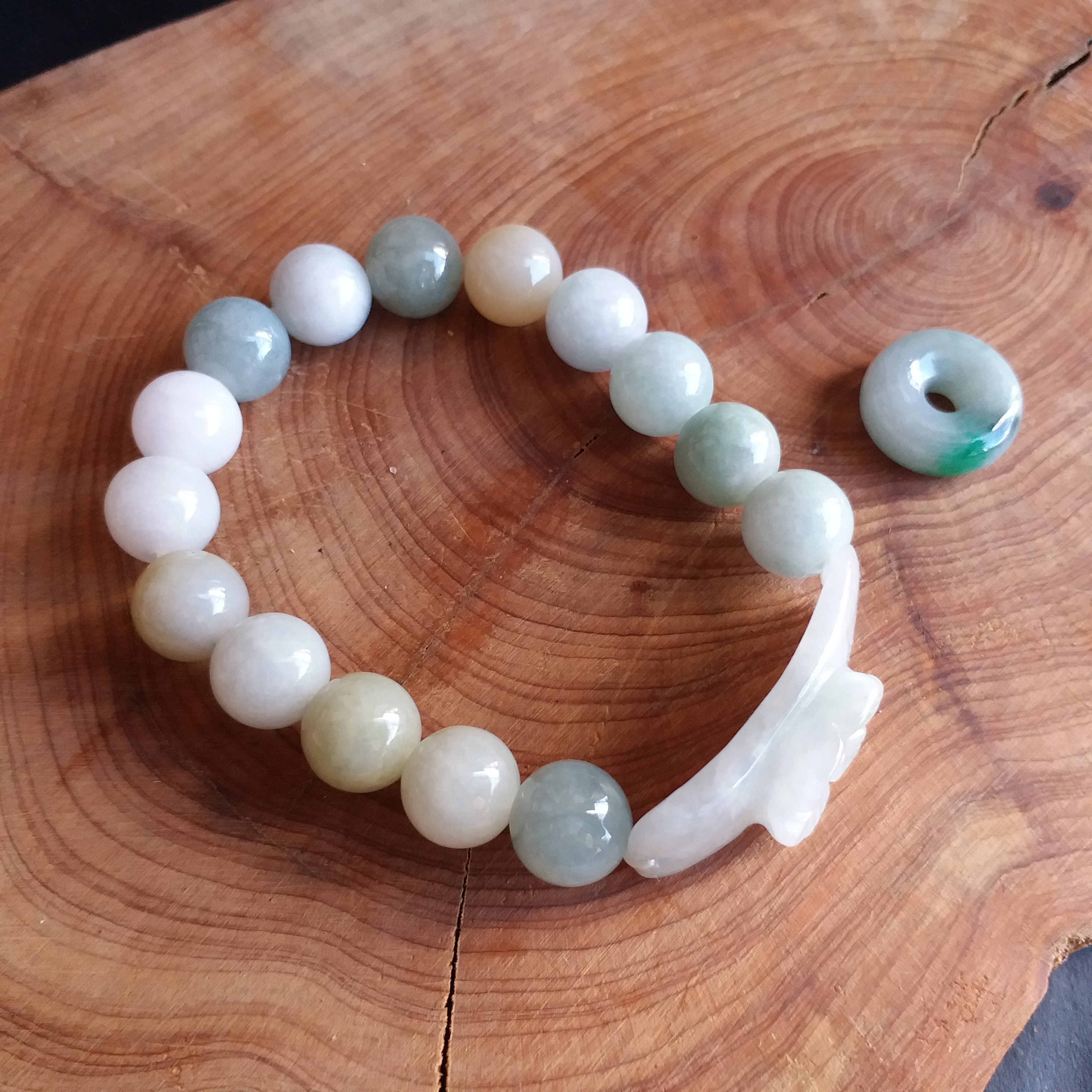 • 飄綠小平安扣+花牌手珠串, 天然翡翠A玉, 緬甸玉, Jade, Jadeite