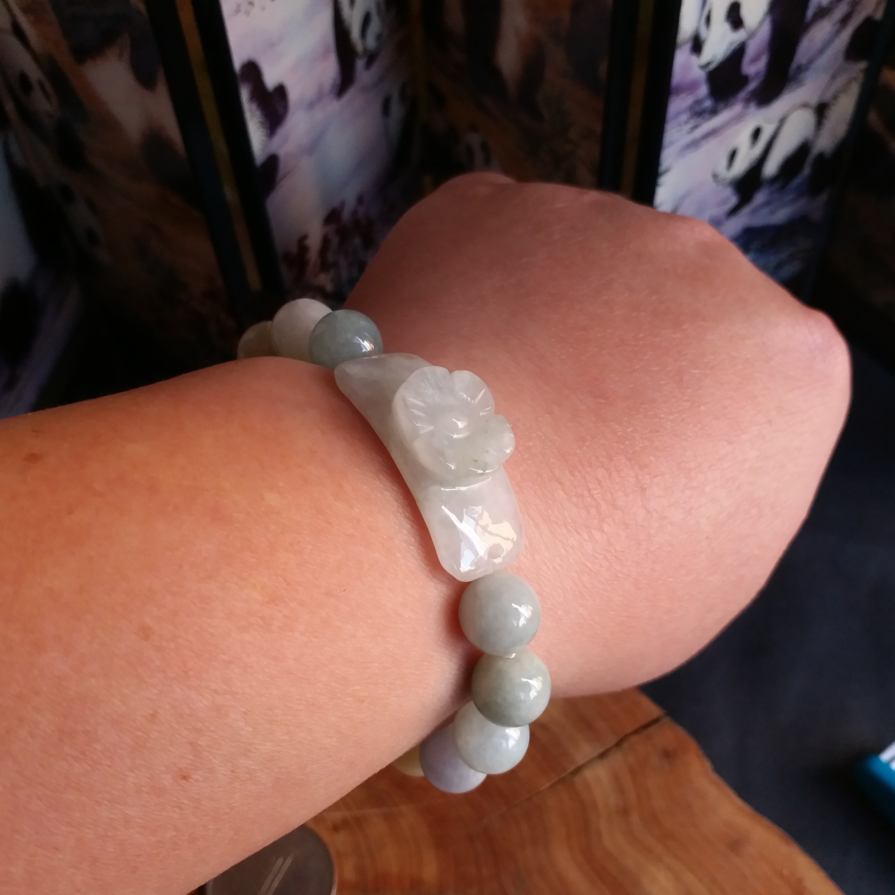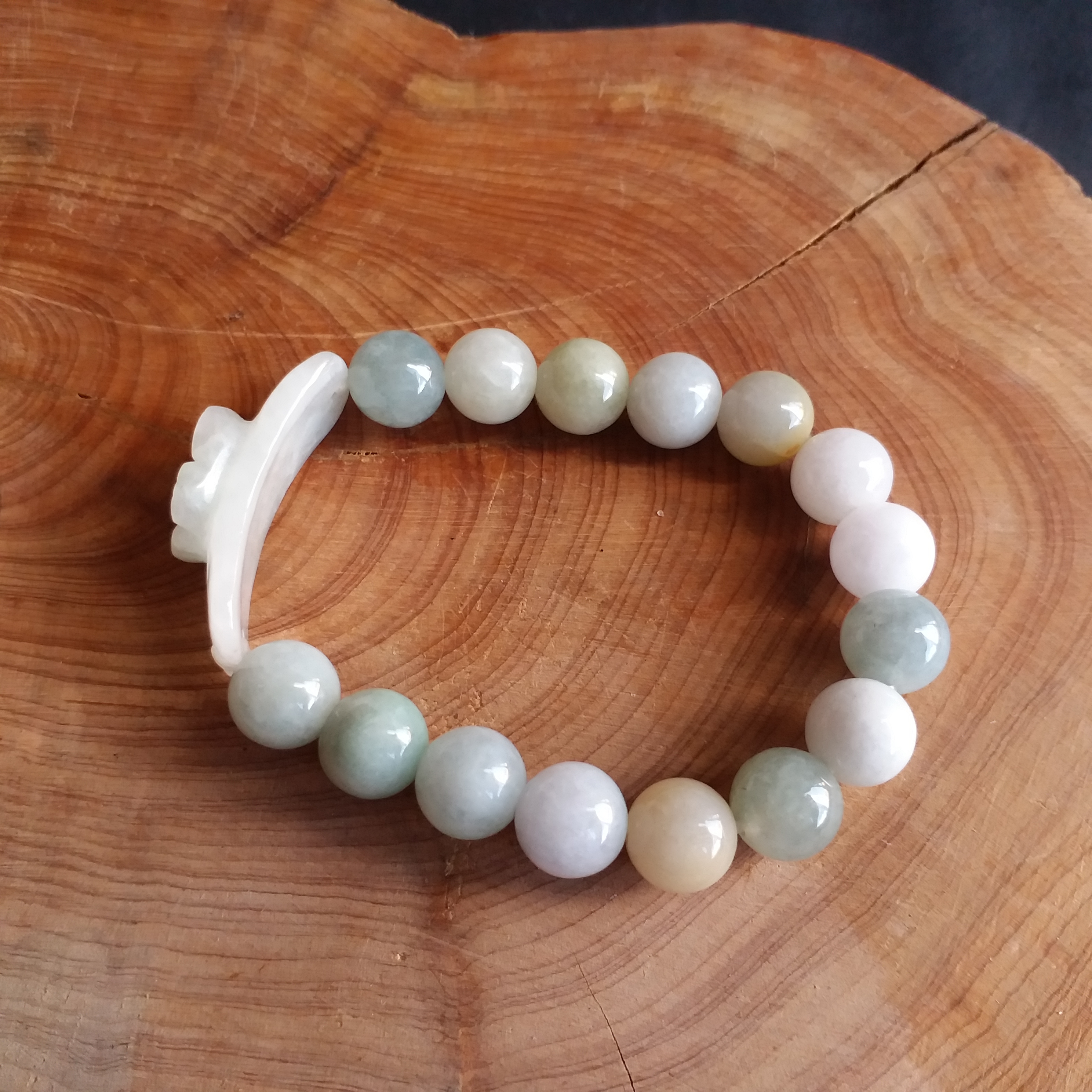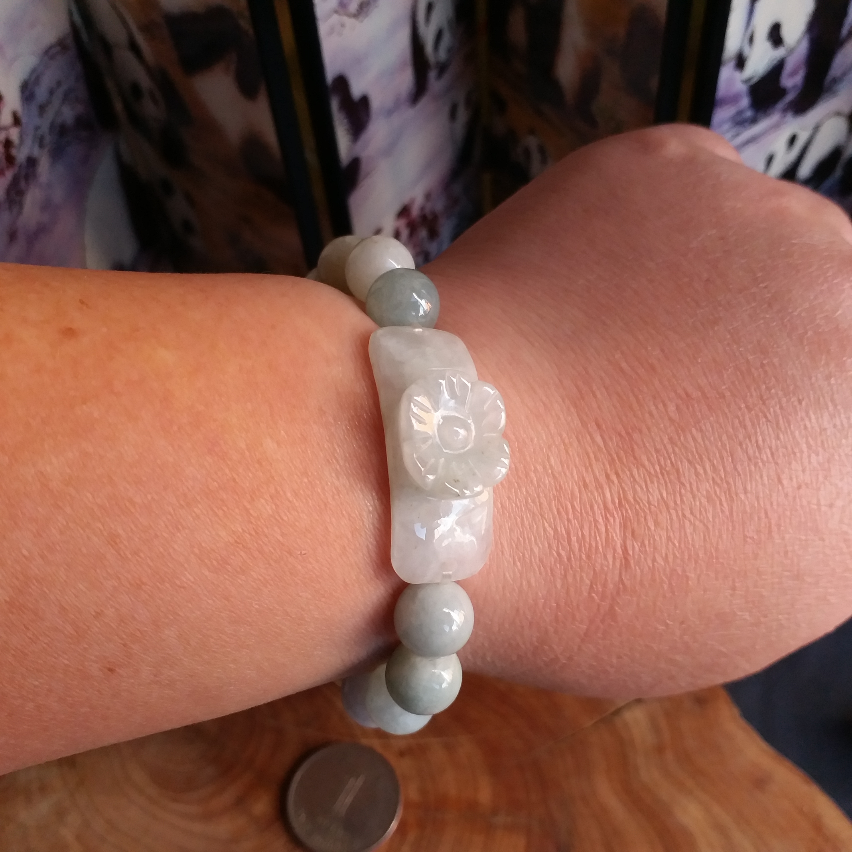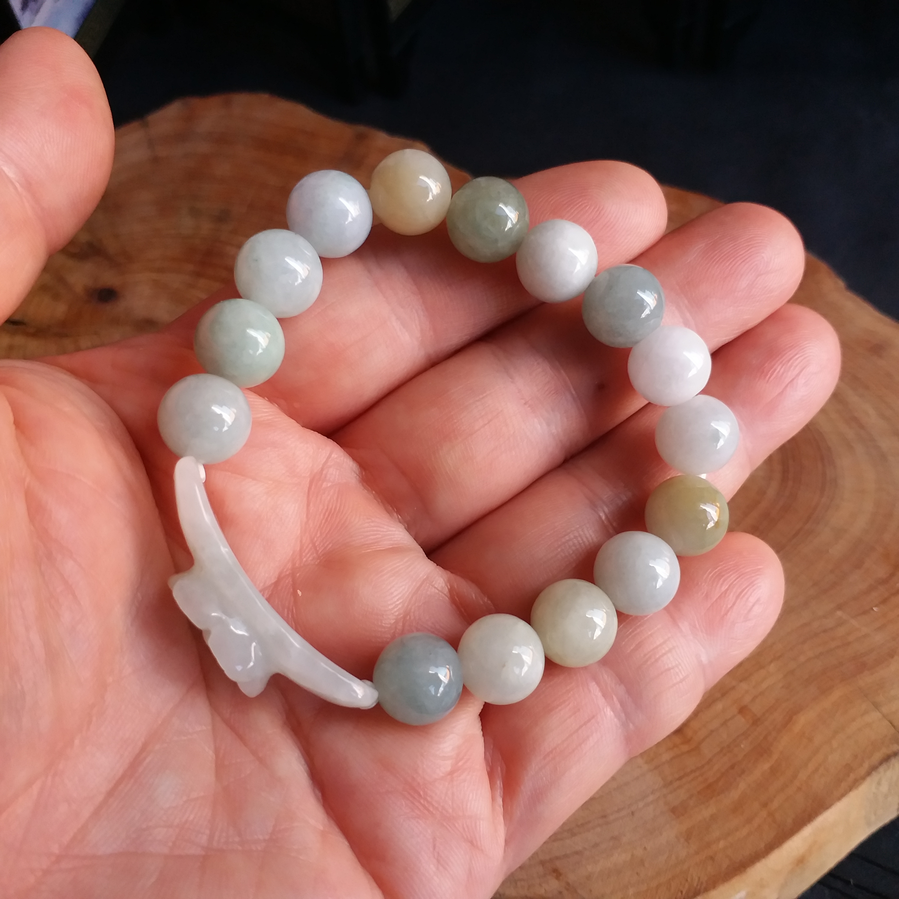 • 飄綠小平安扣+花牌手珠串, 天然翡翠A玉, 緬甸玉, Jade, Jadeite