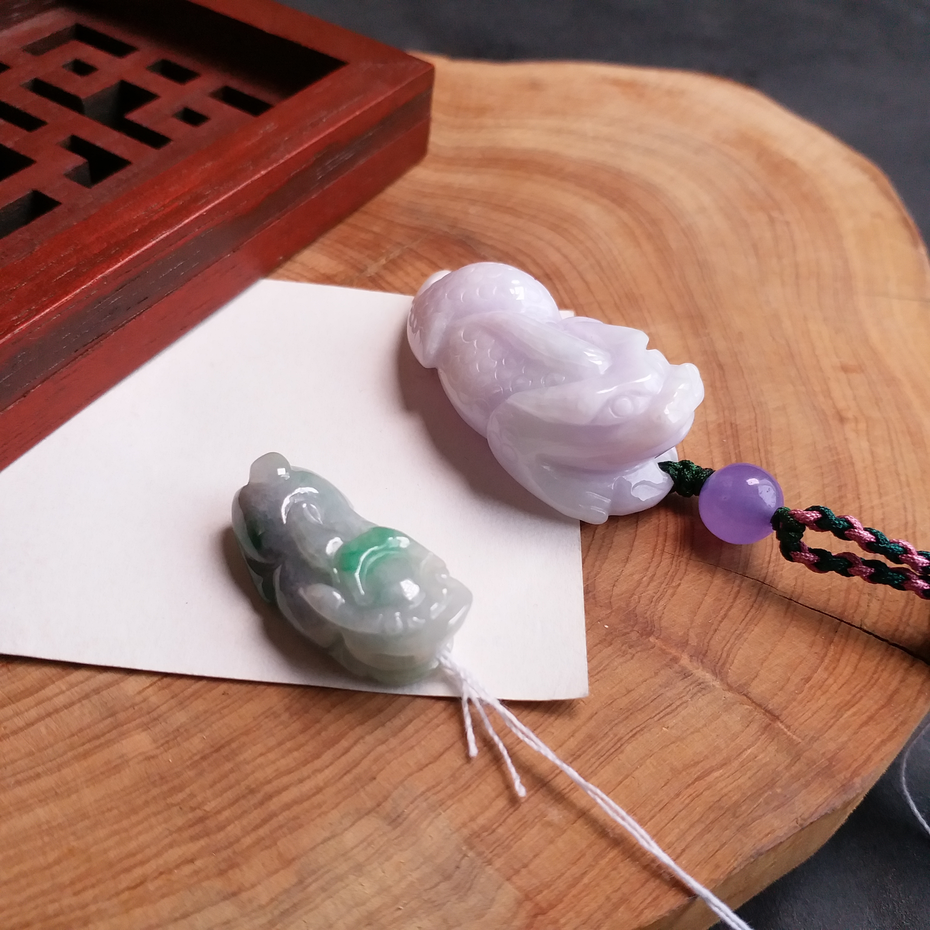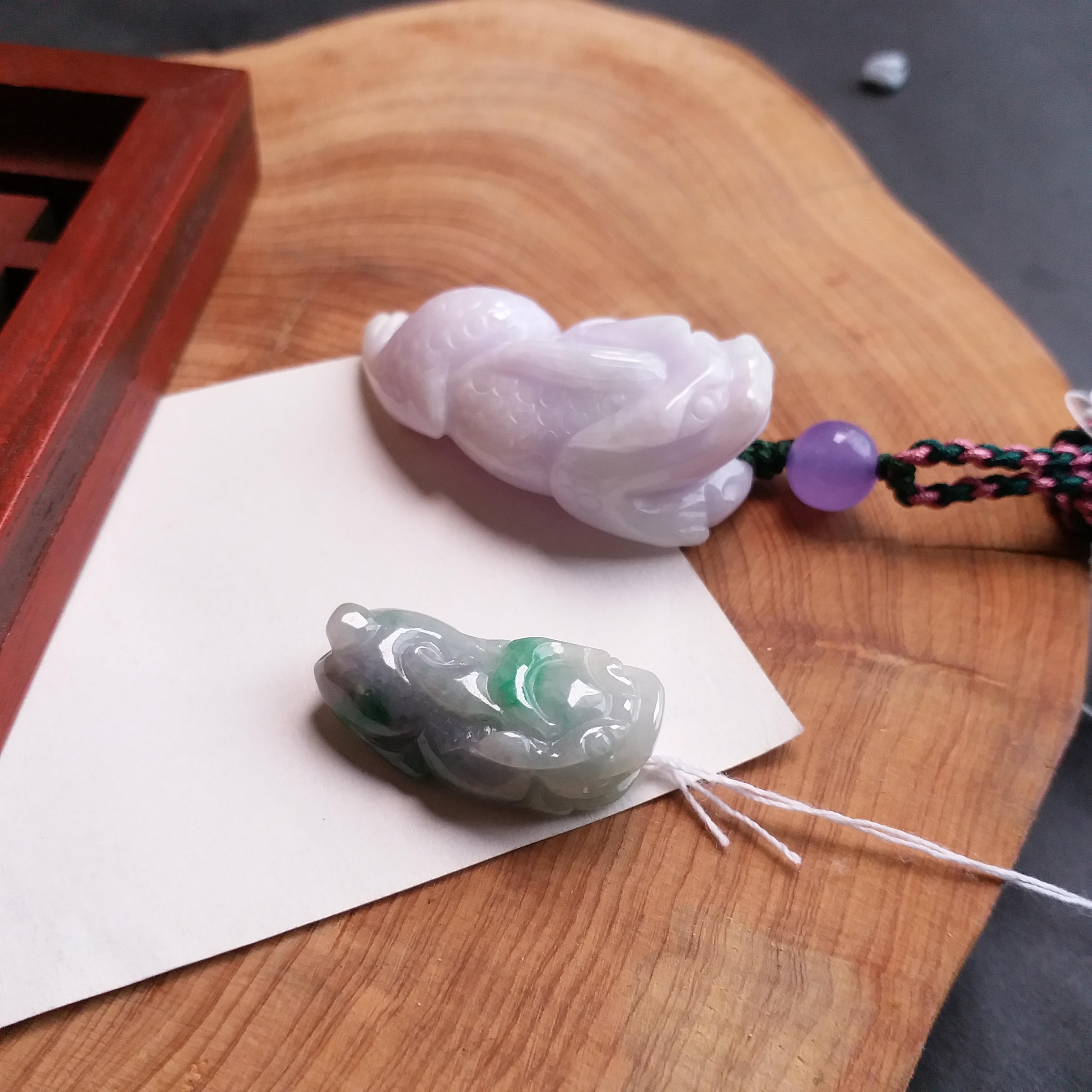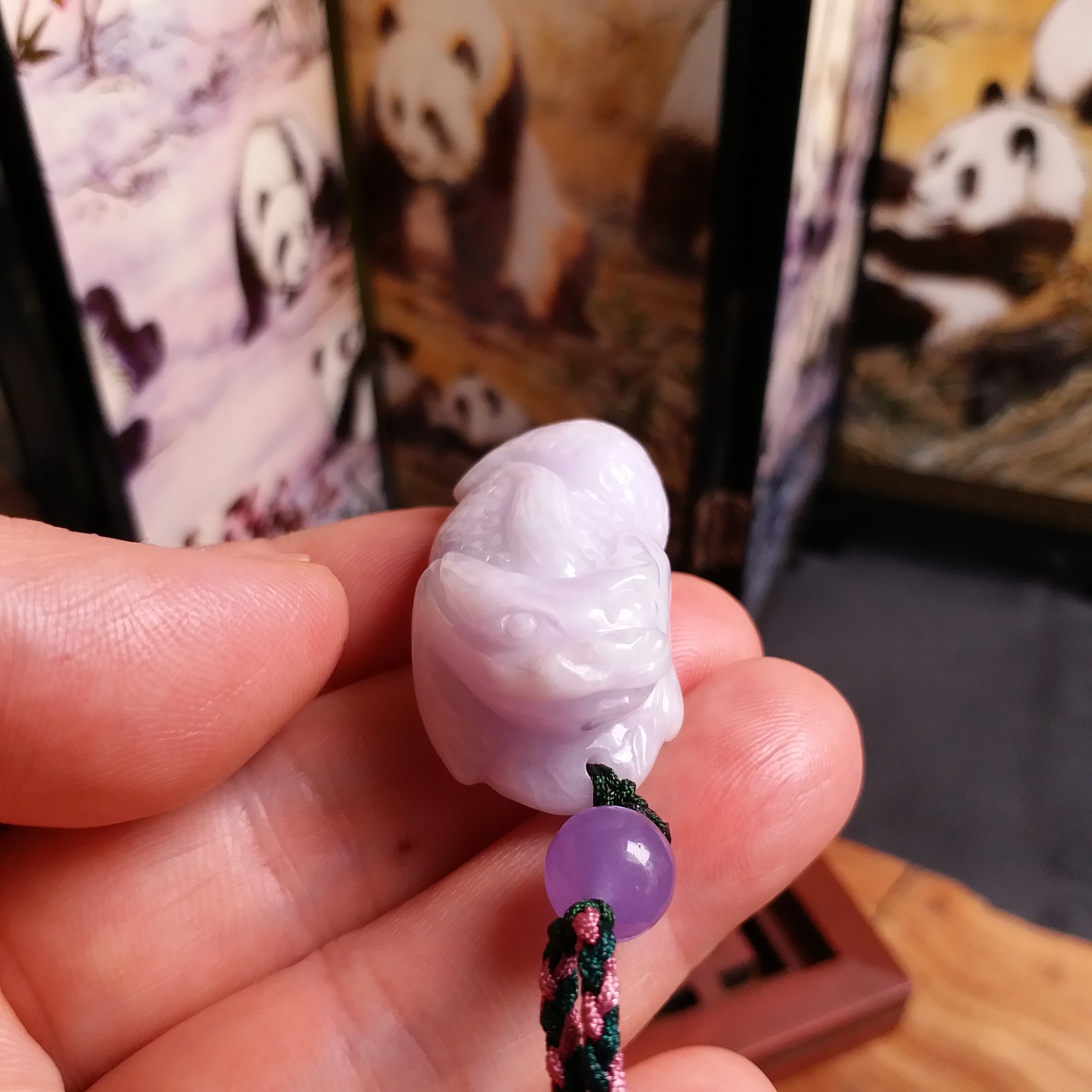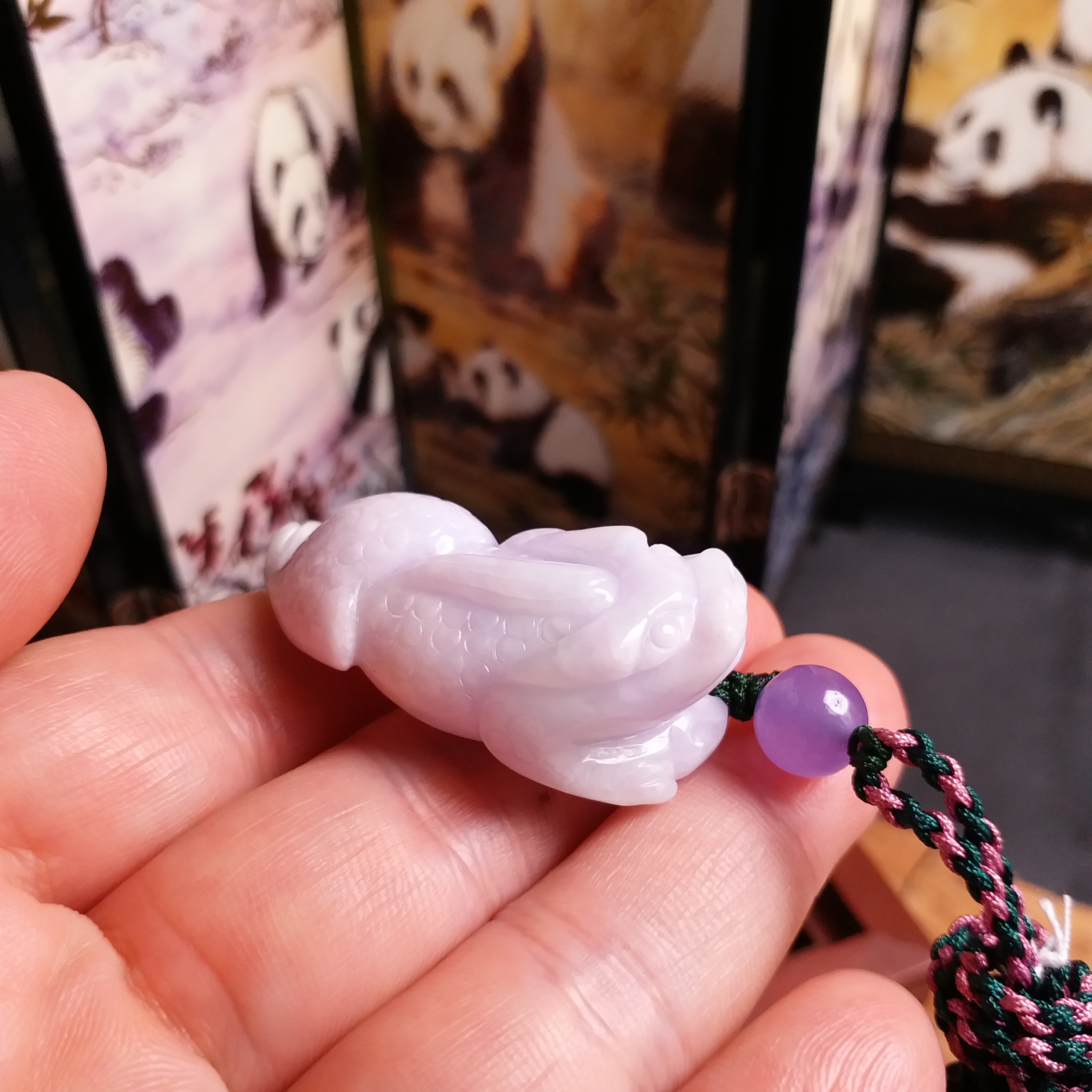 • 紫羅蘭吸財金蟾+冰糯飄綠貔貅, 天然翡翠A玉, 緬甸玉, Jade, Jadeite