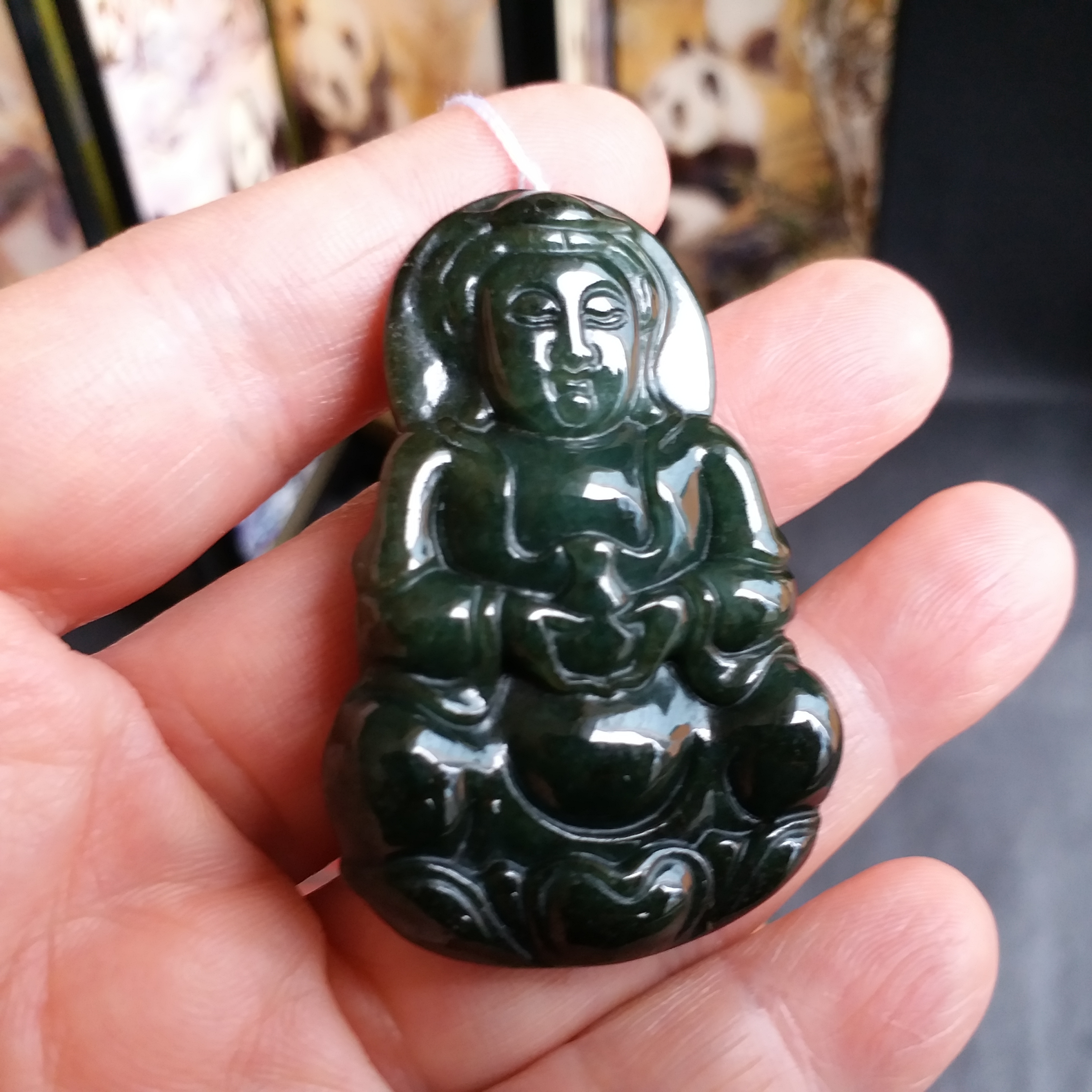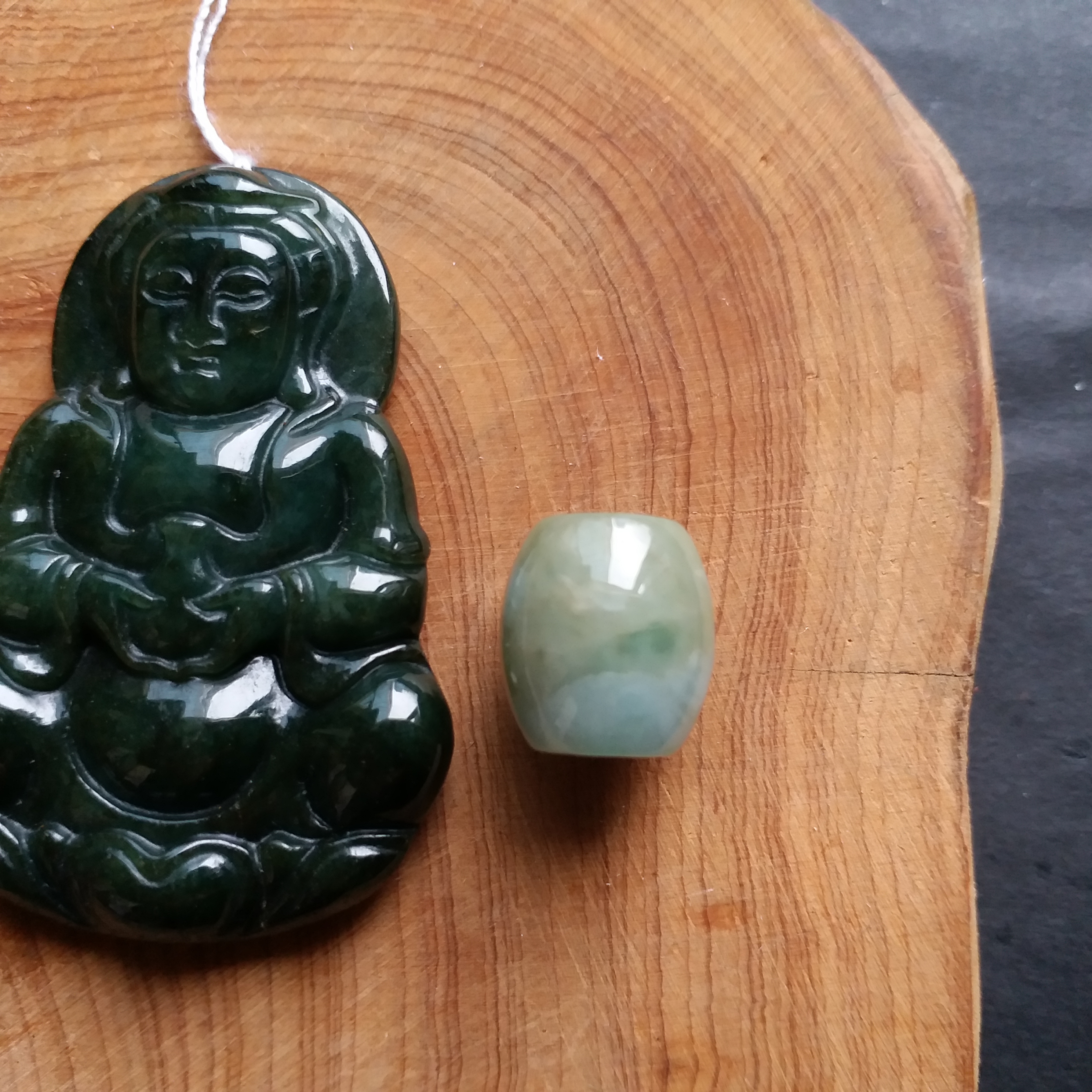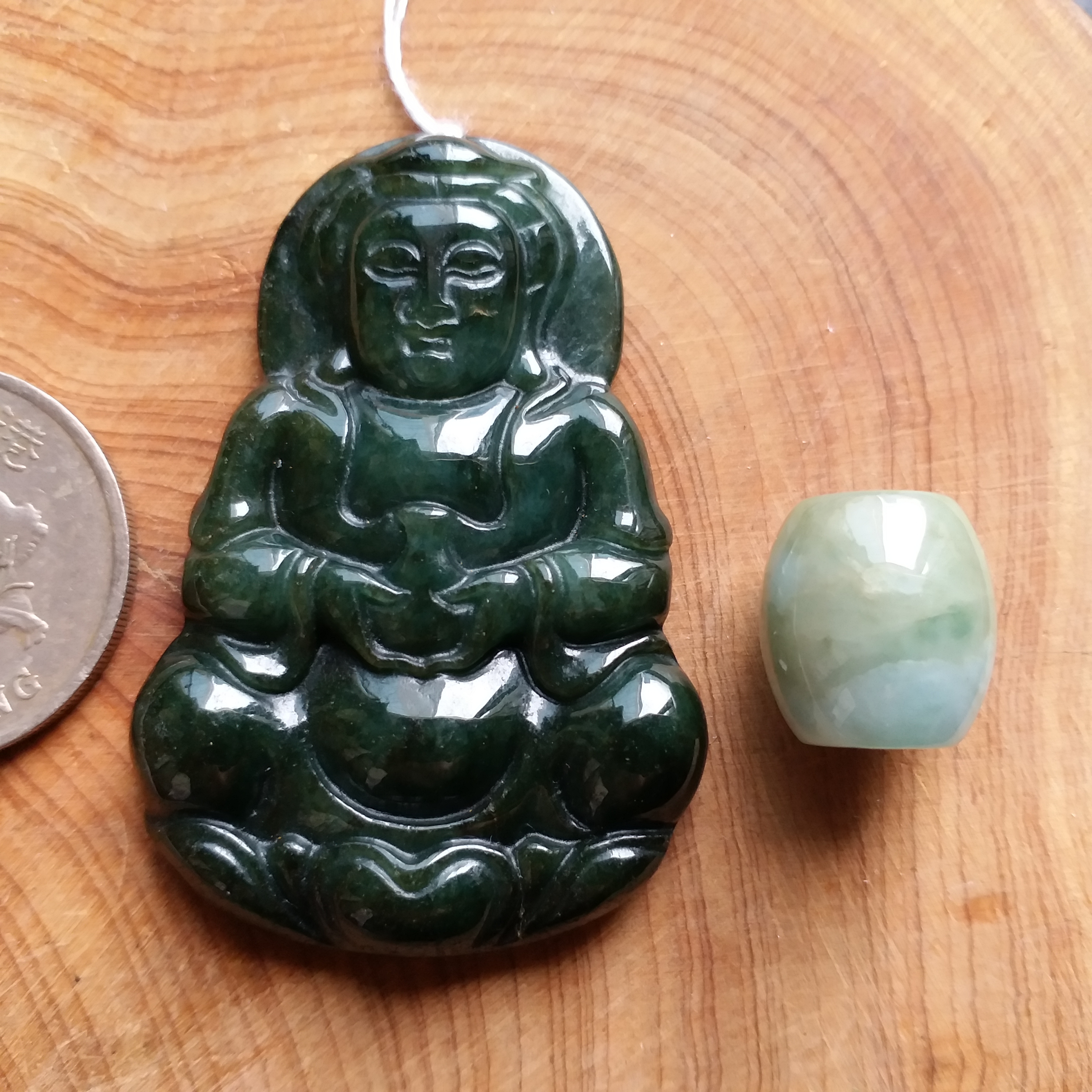 • 冰糯油青玉瓶觀音吊墜+冰糯飄綠路路通, 天然翡翠A玉, 緬甸玉, Jade, Jadeite