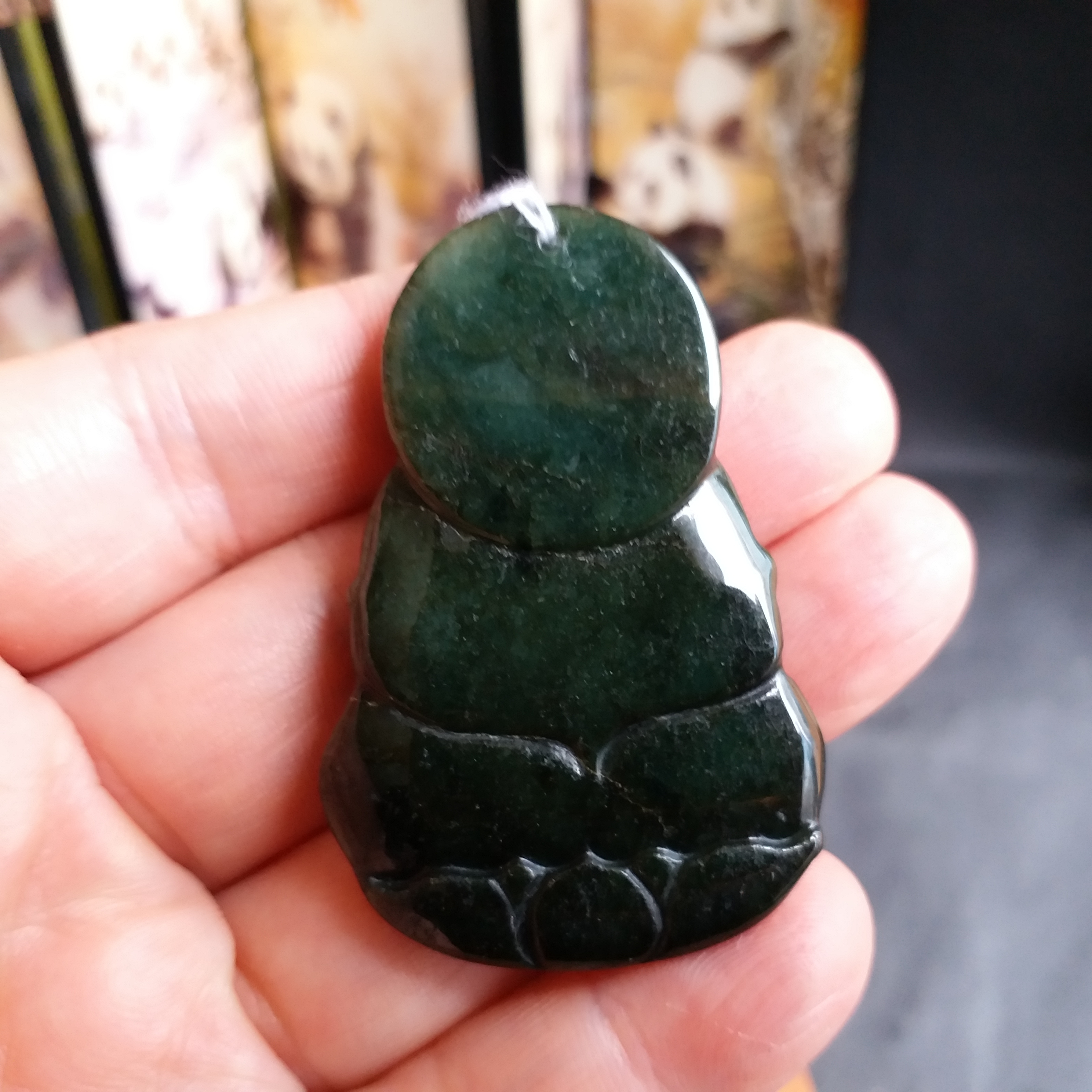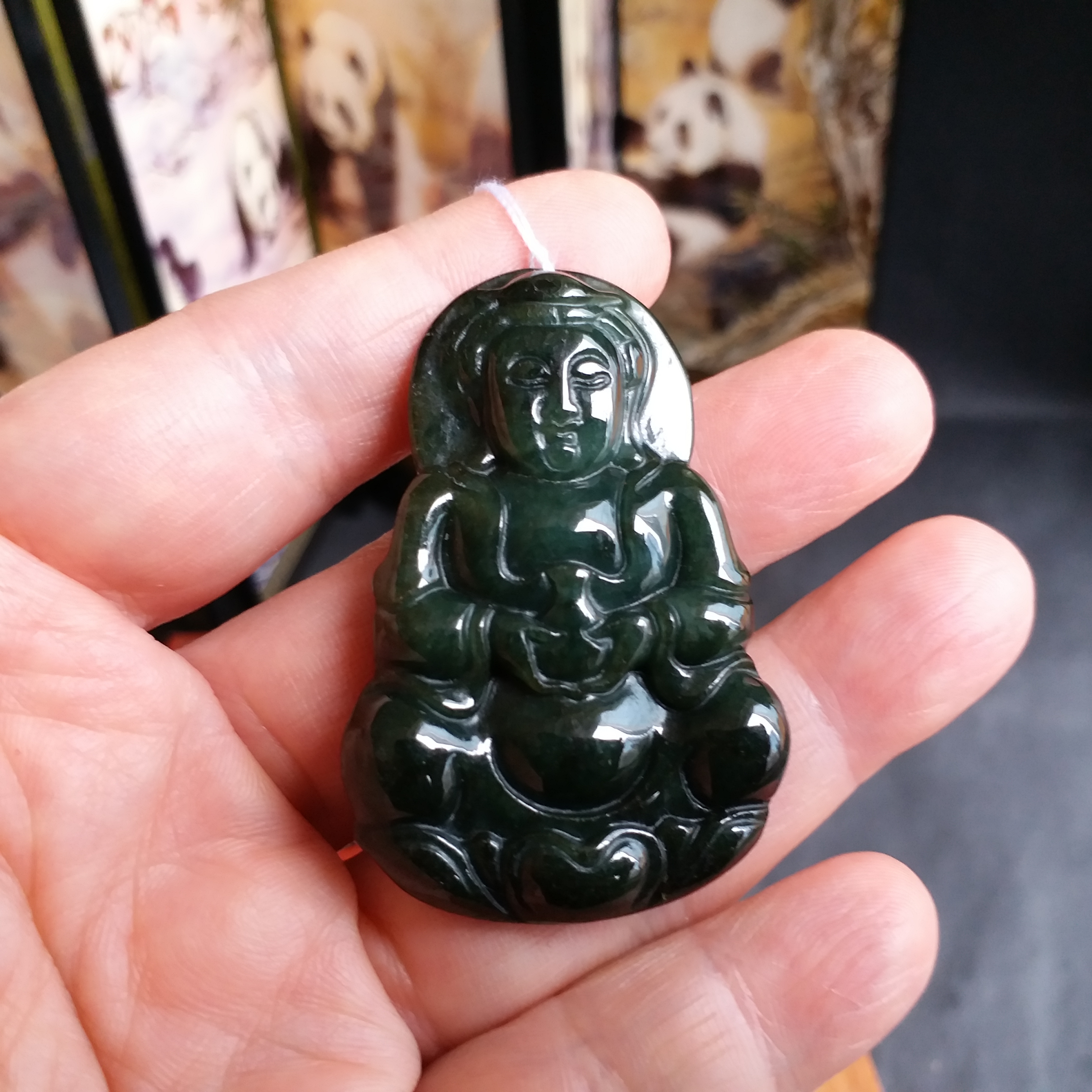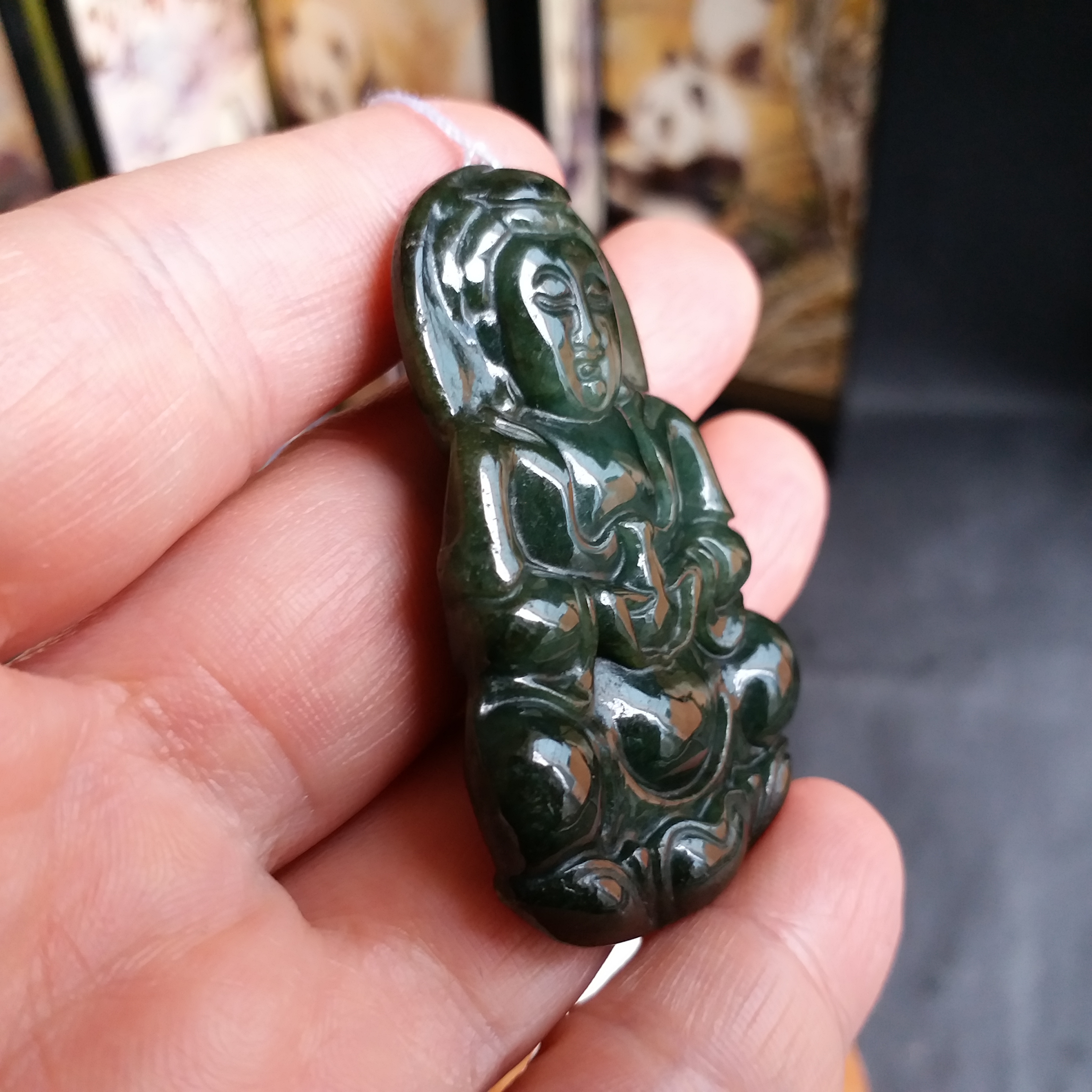 • 冰糯油青玉瓶觀音吊墜+冰糯飄綠路路通, 天然翡翠A玉, 緬甸玉, Jade, Jadeite