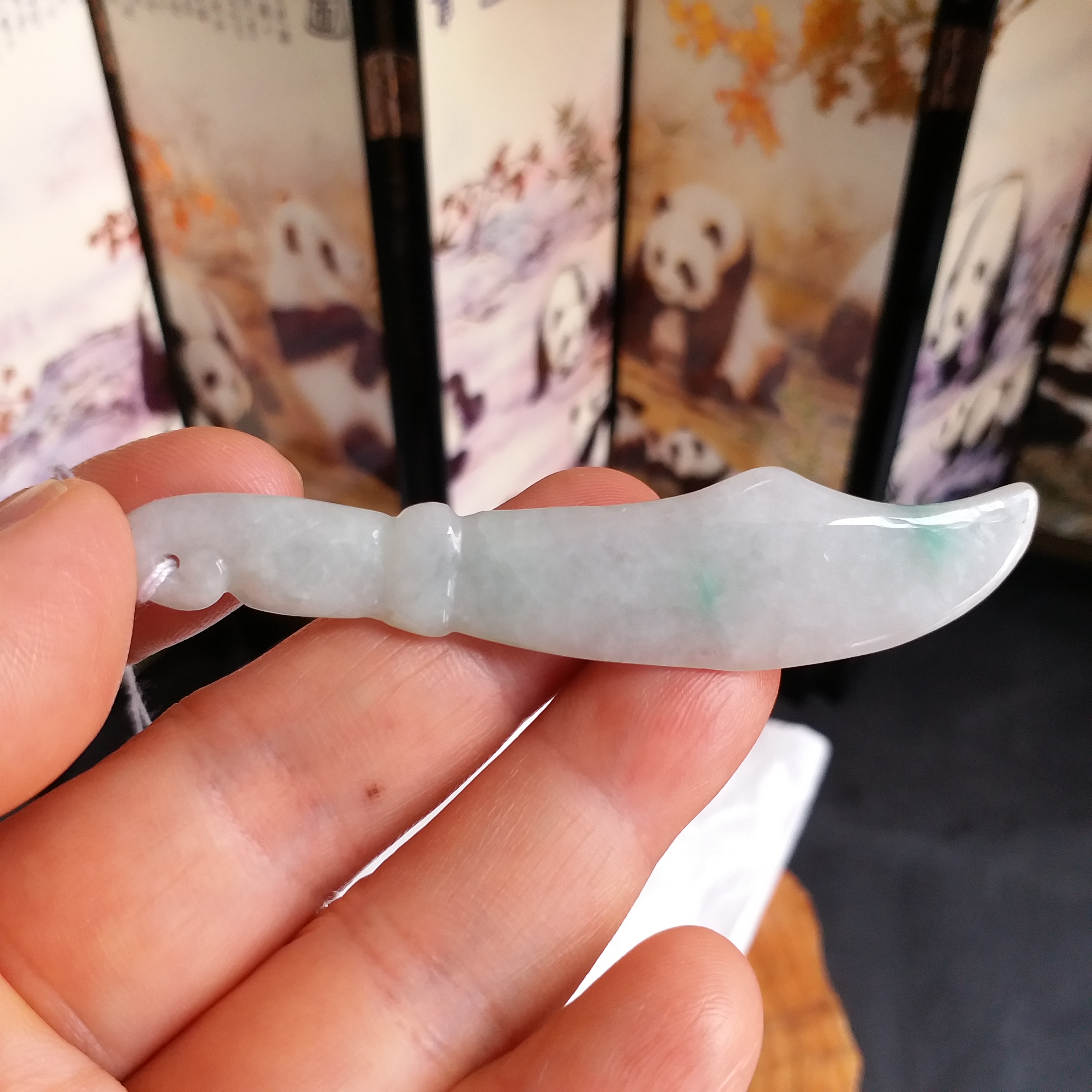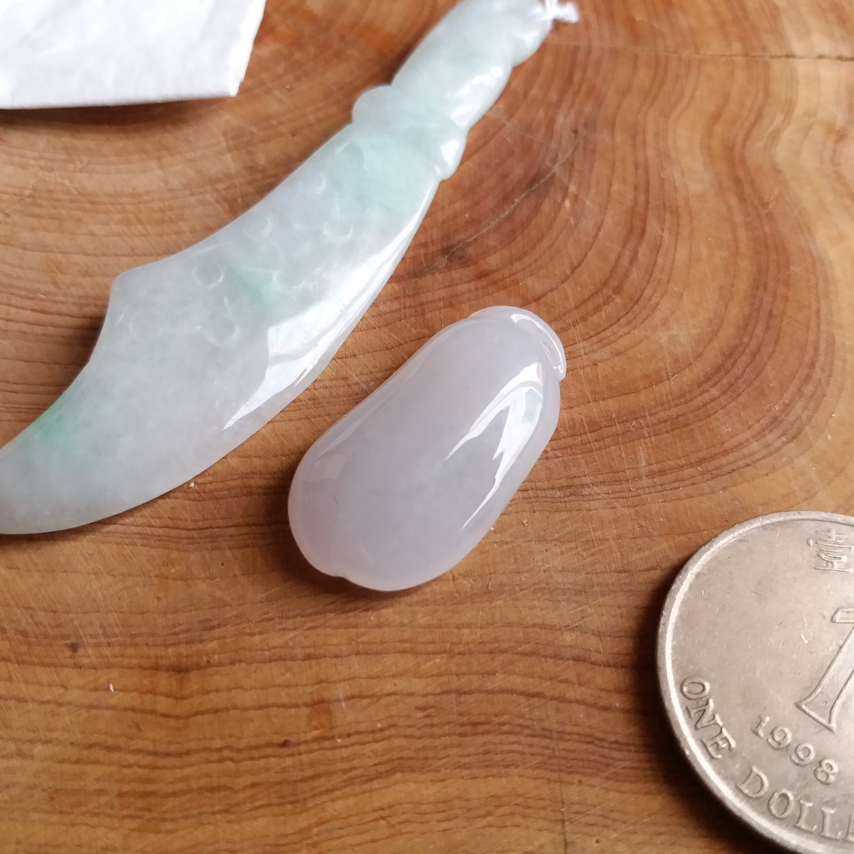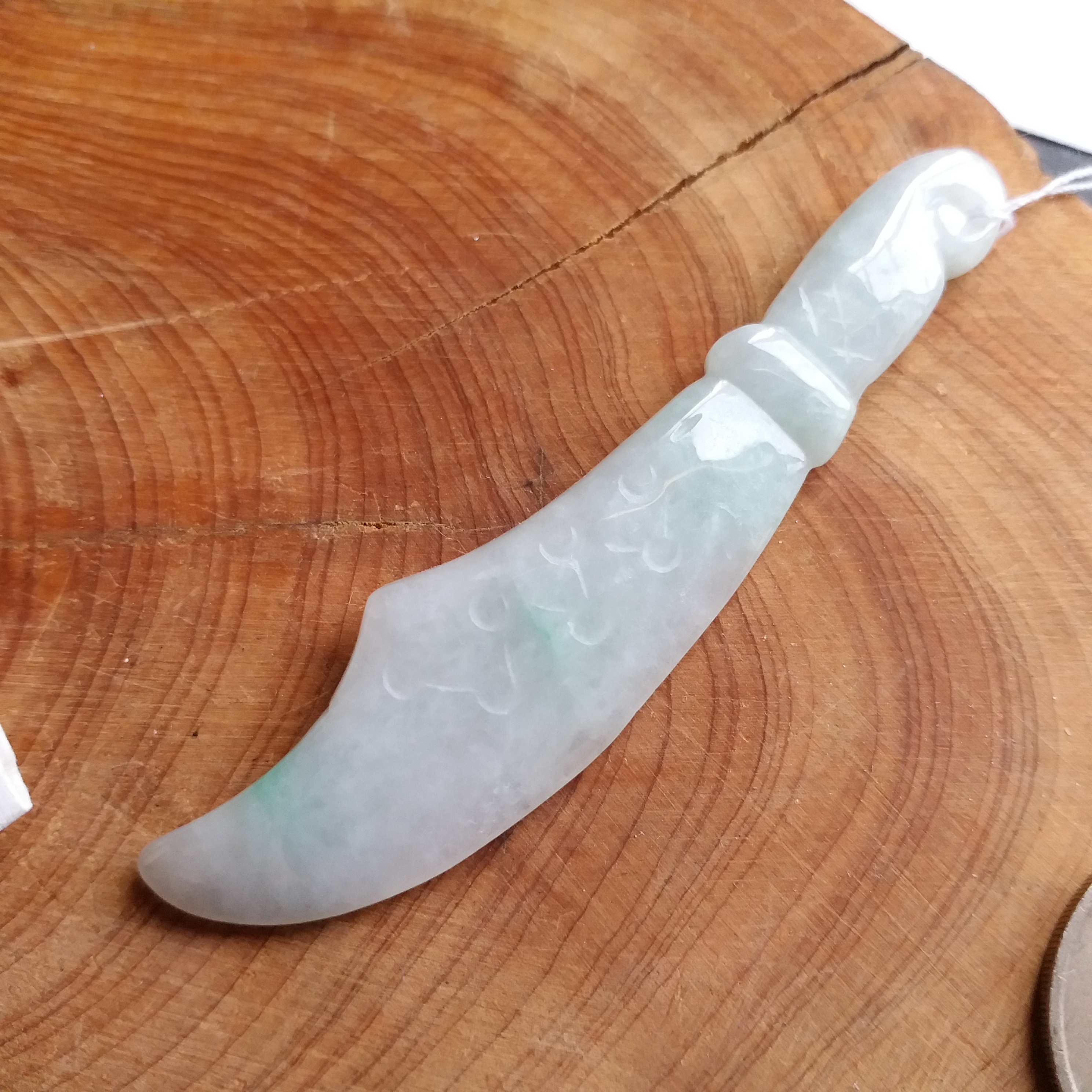 • 冰糯白度青大關刀+冰白福瓜, 天然翡翠A玉, 緬甸玉, Jade, Jadeite