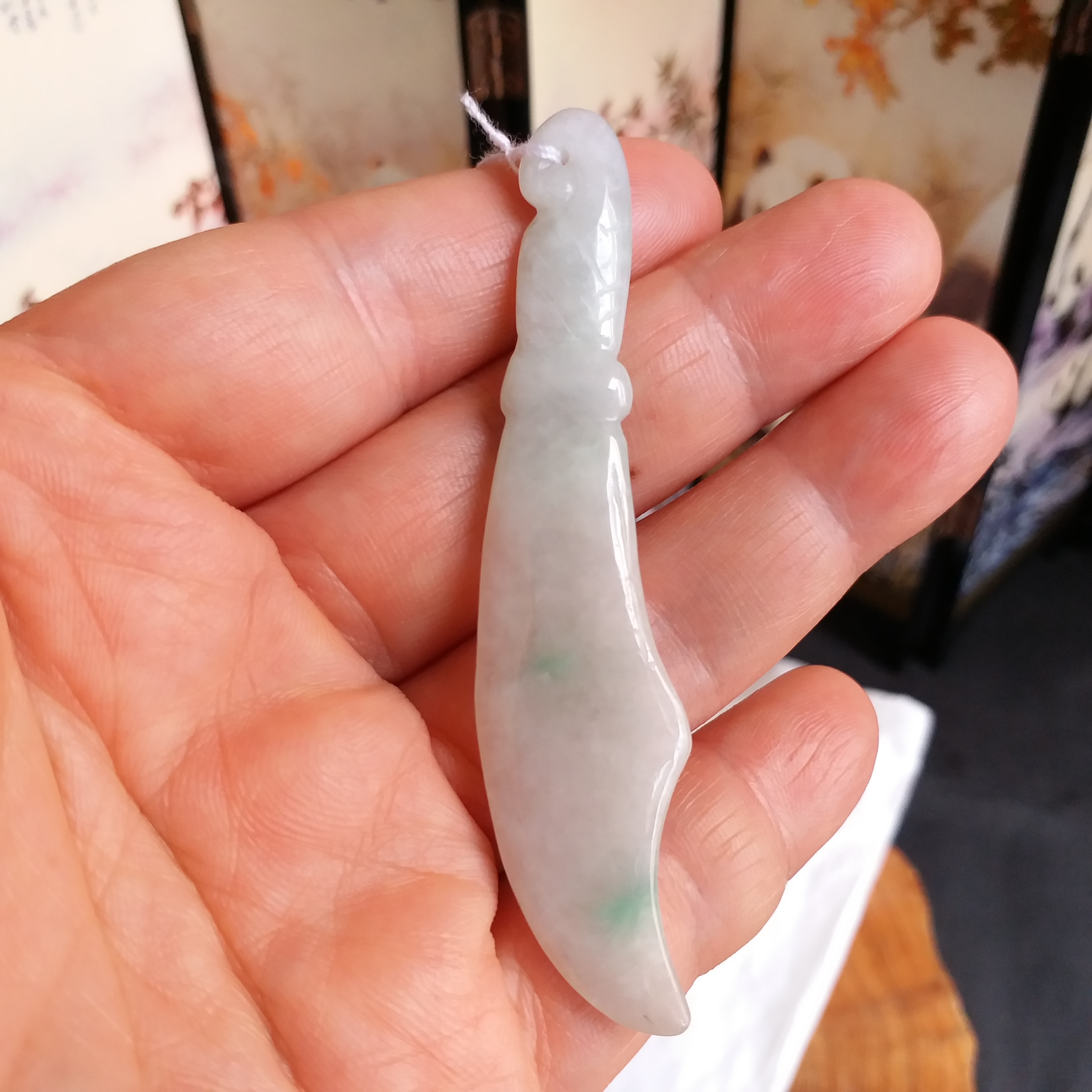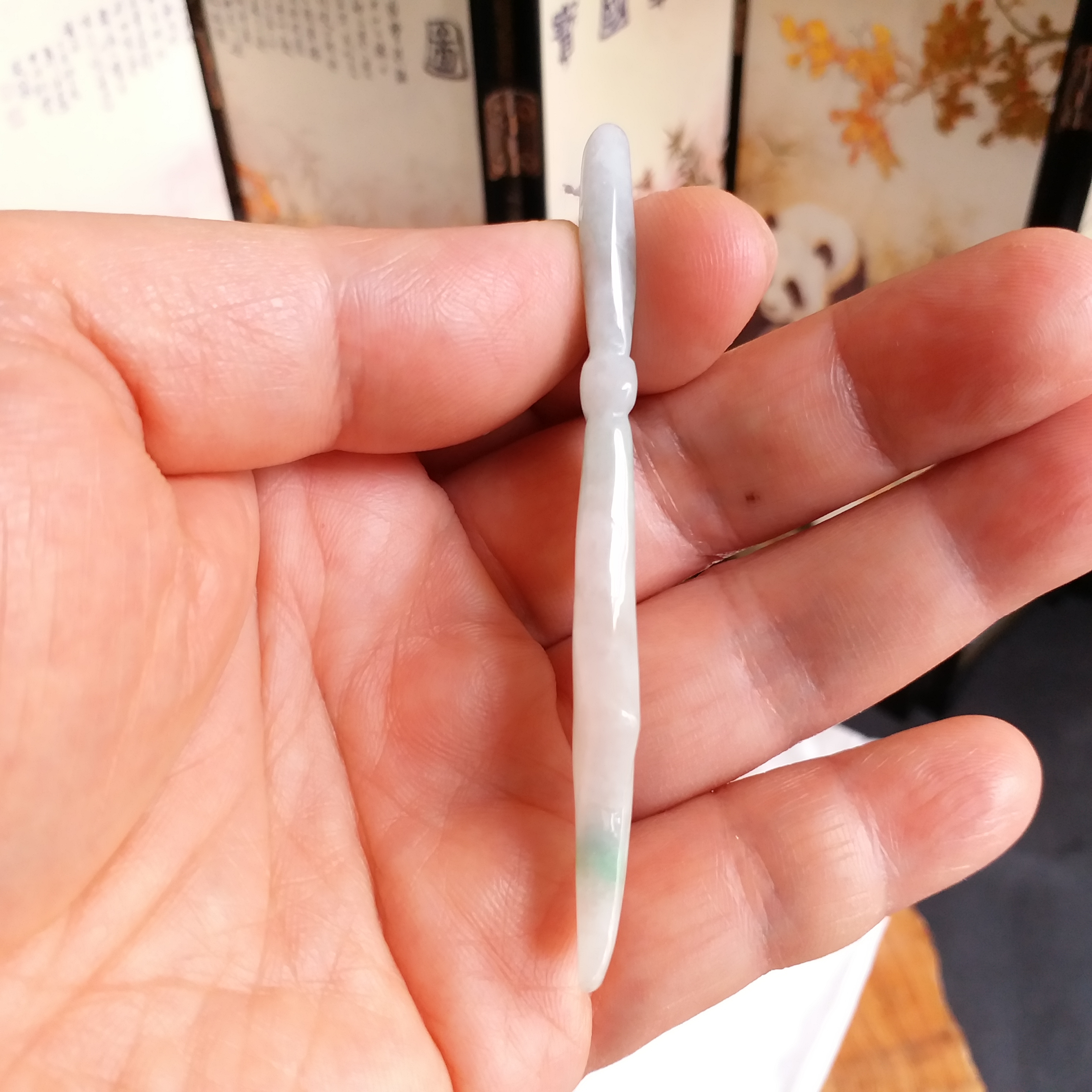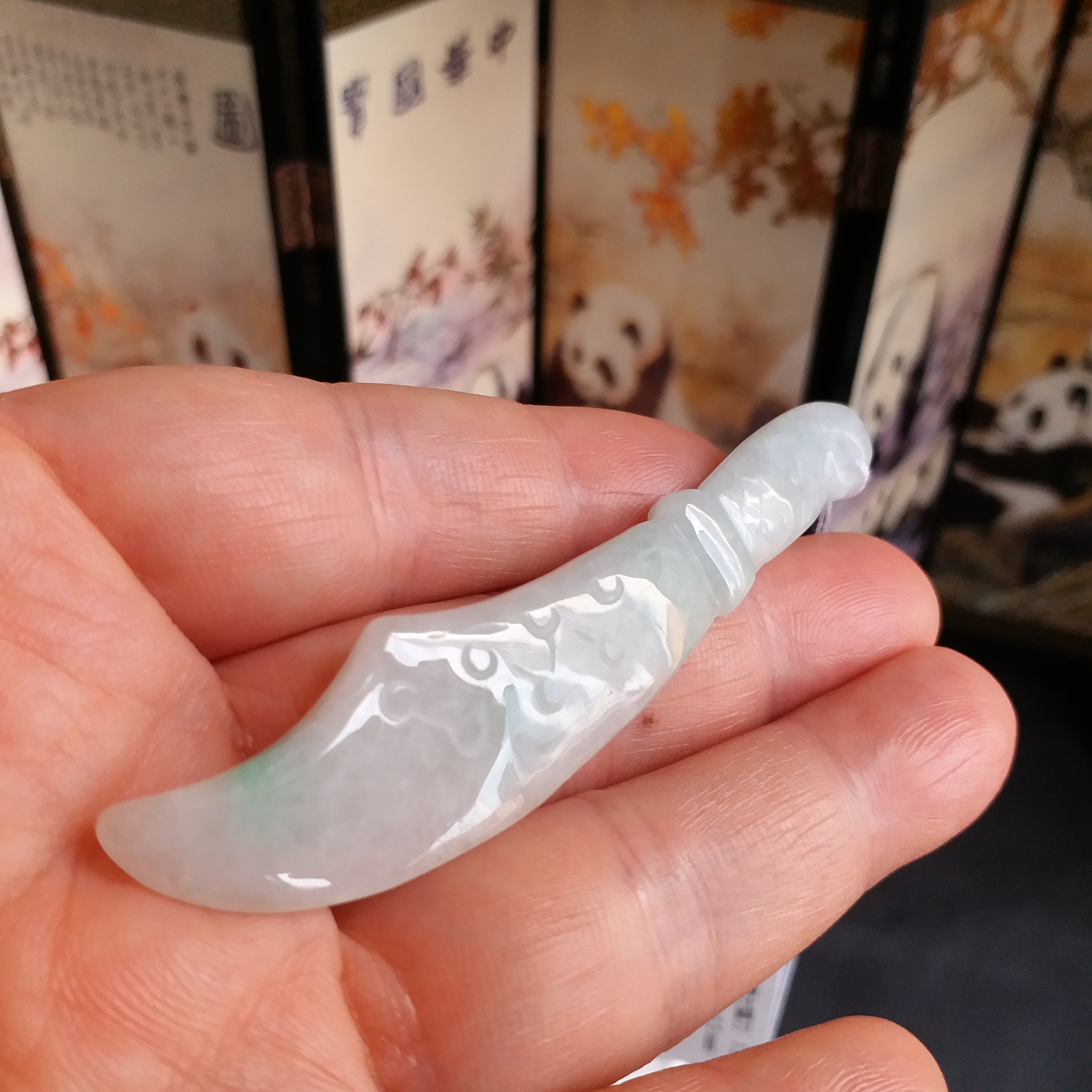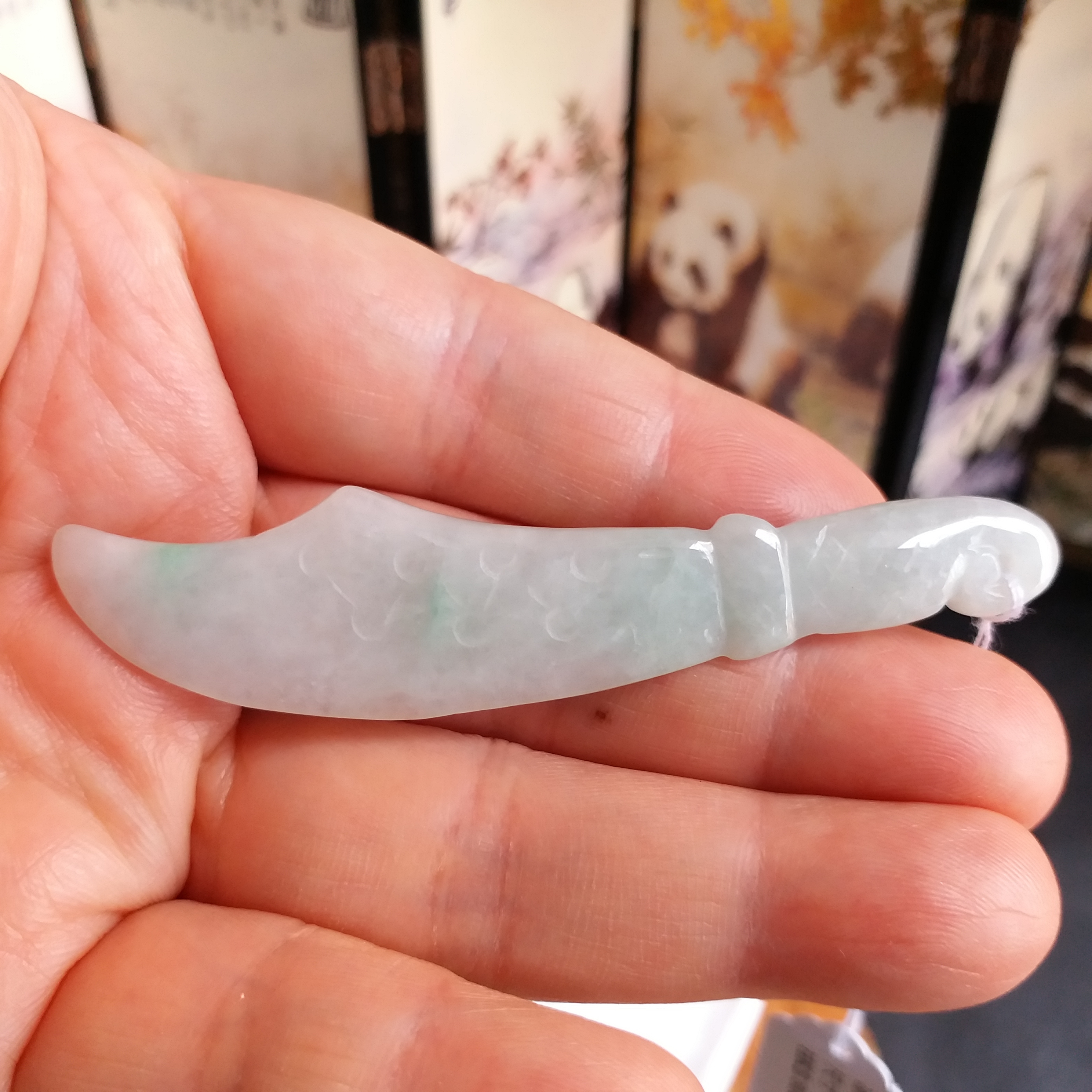• 冰糯白度青大關刀+冰白福瓜, 天然翡翠A玉, 緬甸玉, Jade, Jadeite