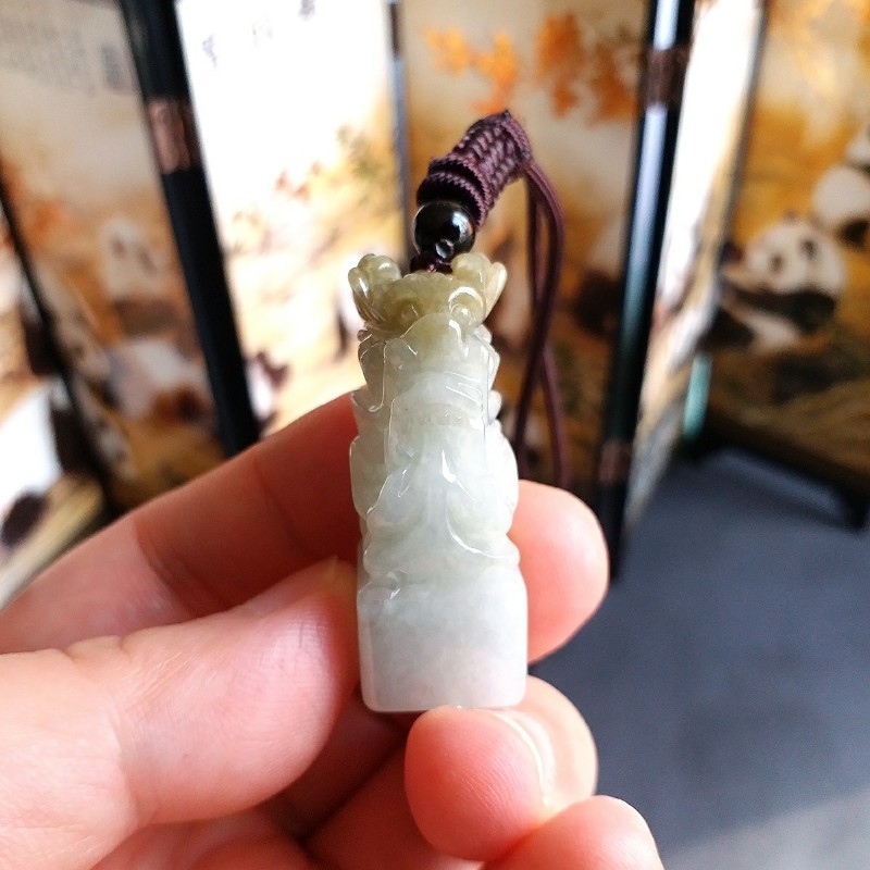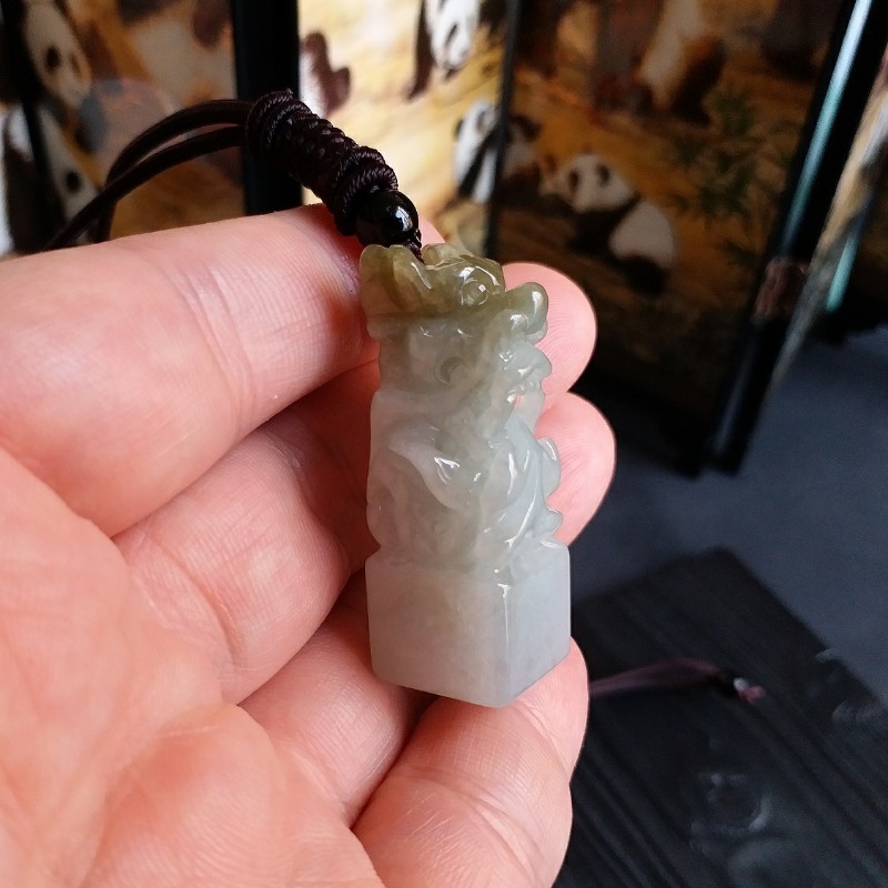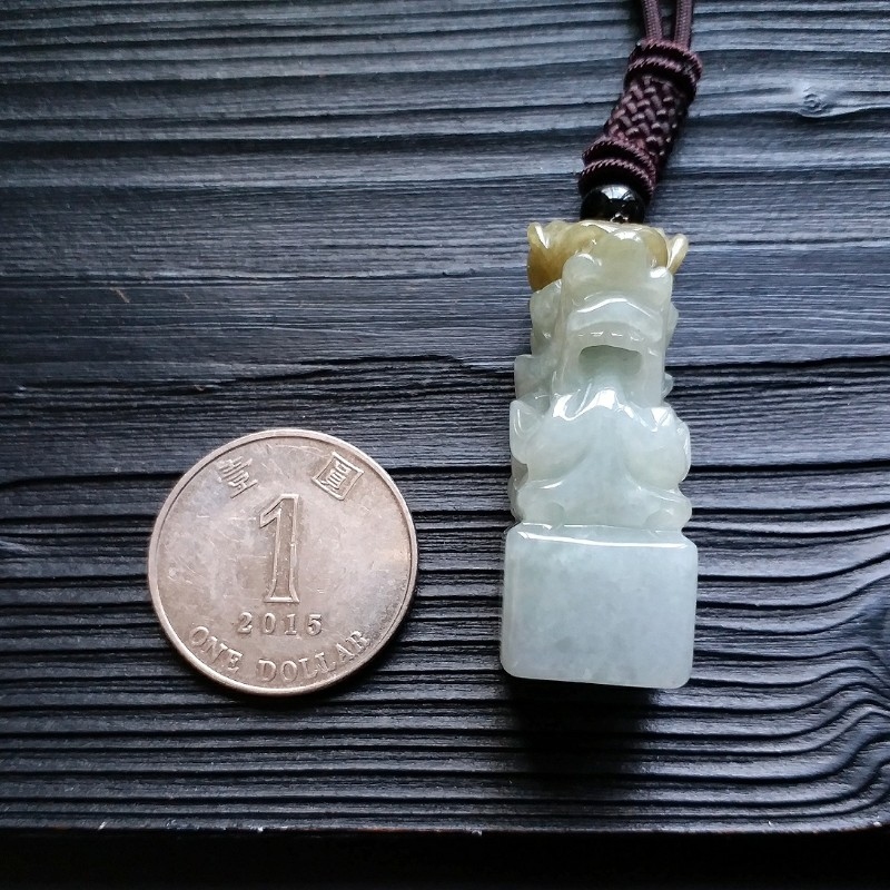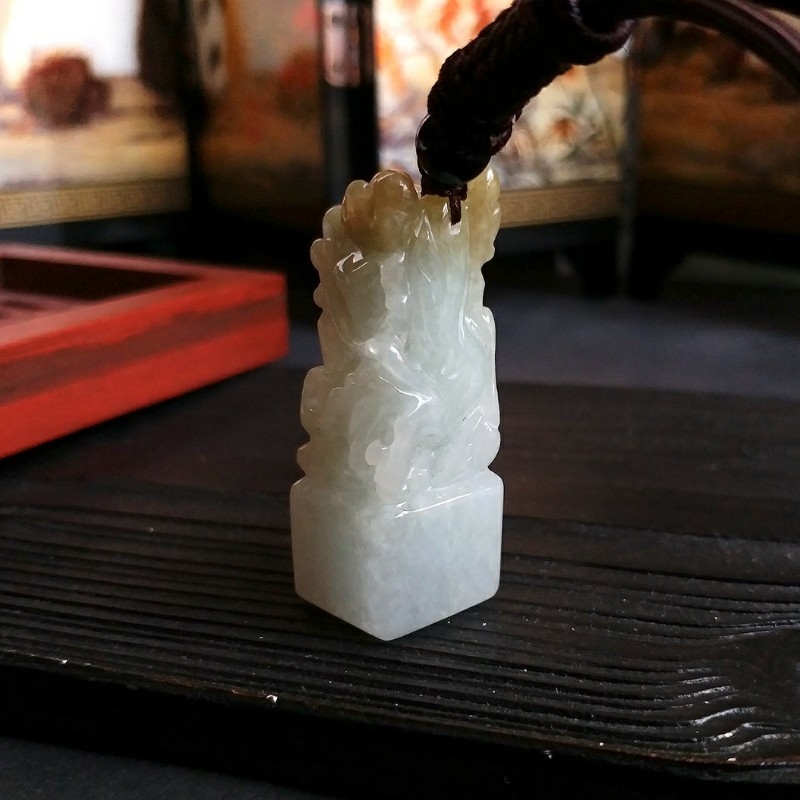 • 冰糯雙彩龍王印章, 天然翡翠A玉, 緬甸玉, Jade, Jadeite