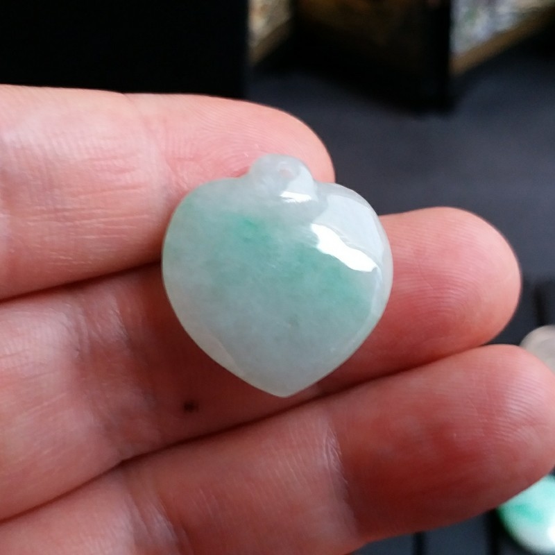 • 冰糯飄綠愛心吊墜, 天然翡翠A玉, 緬甸玉, Jade, Jadeite