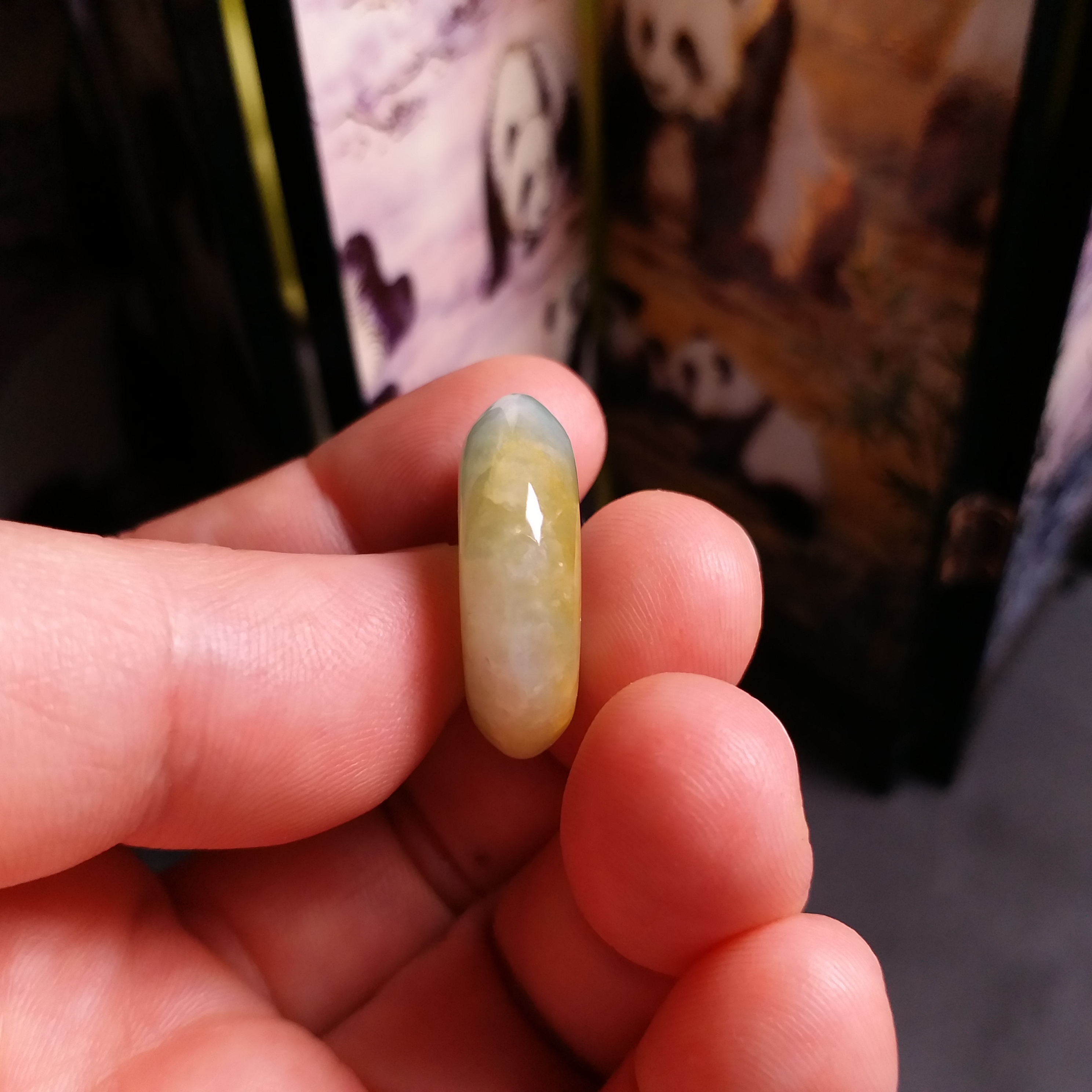 - 天然玉石在不同光線下,會呈現出不同的顏色變化;