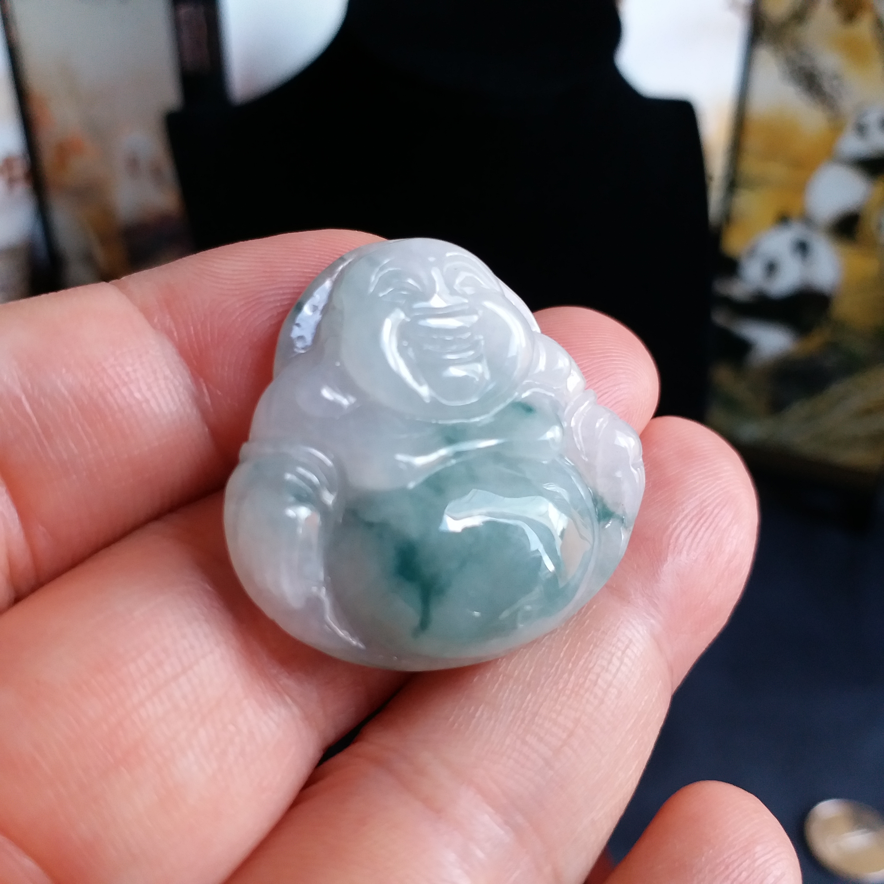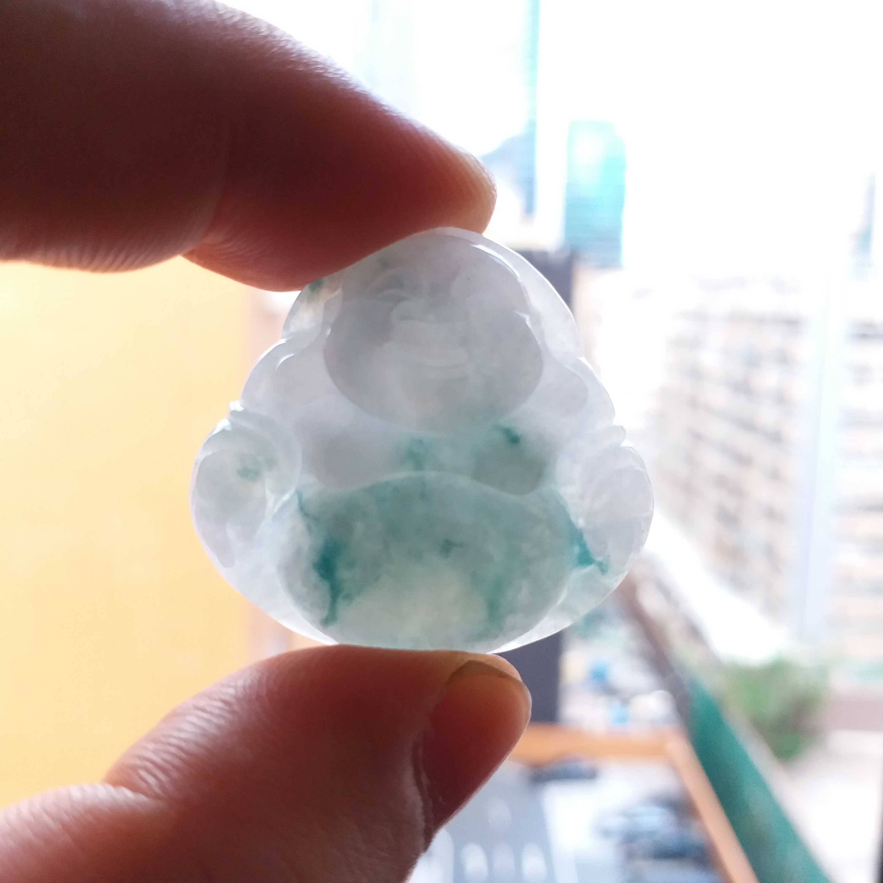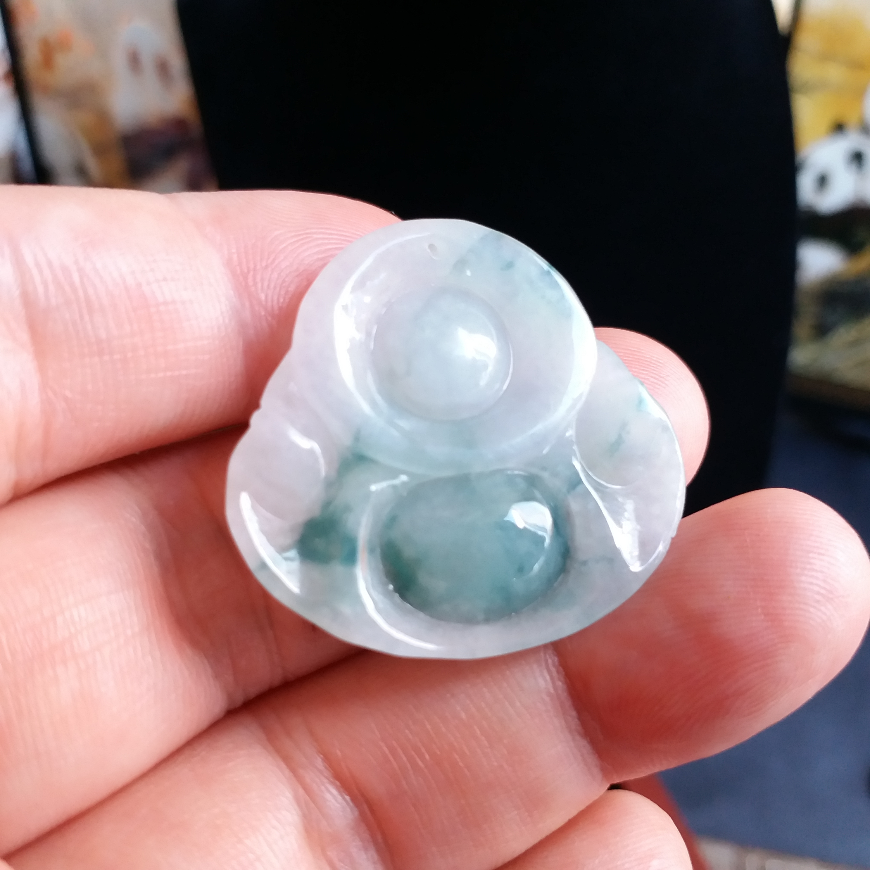 • 冰飄花笑佛吊墜, 天然翡翠A玉, 緬甸玉, Jade, Jadeite