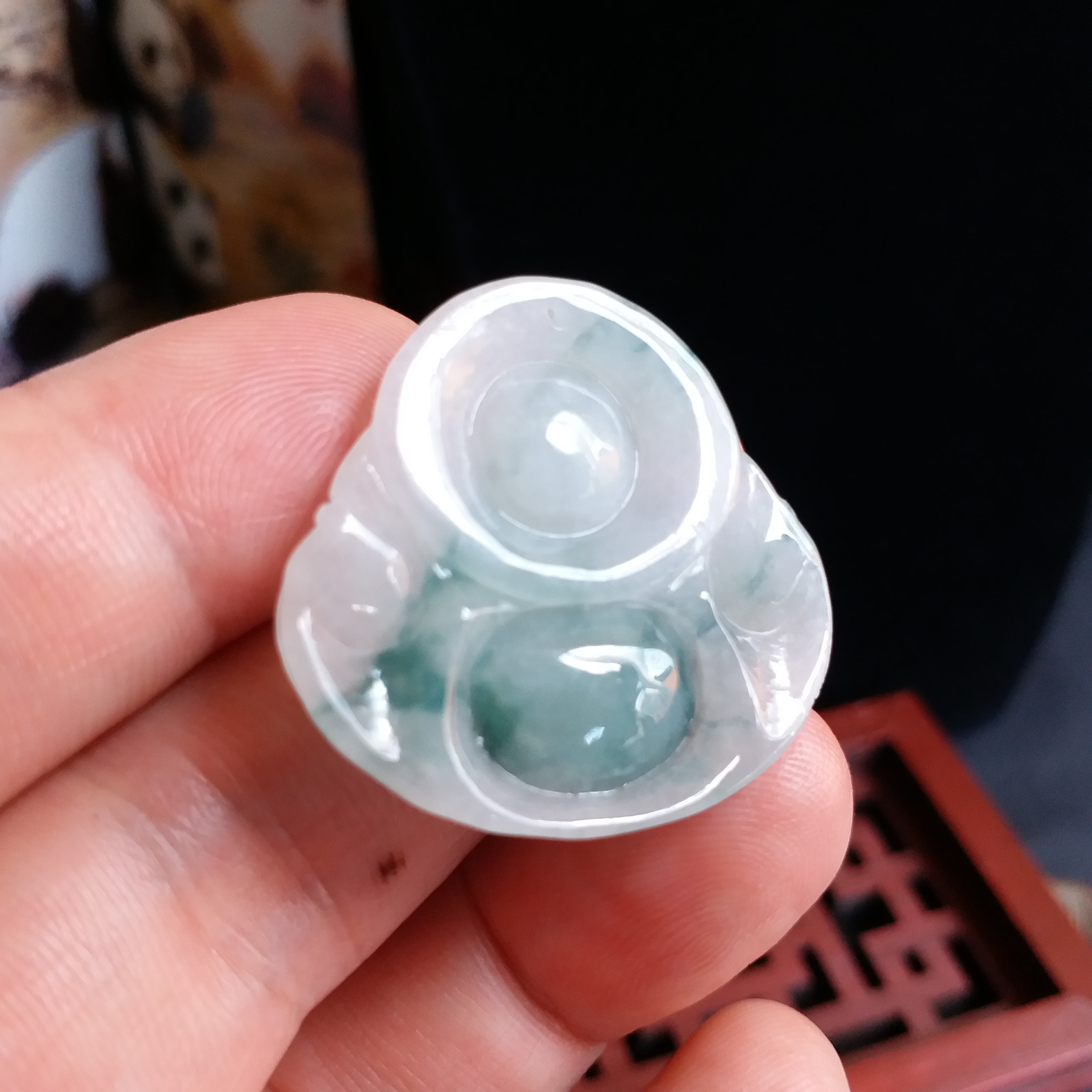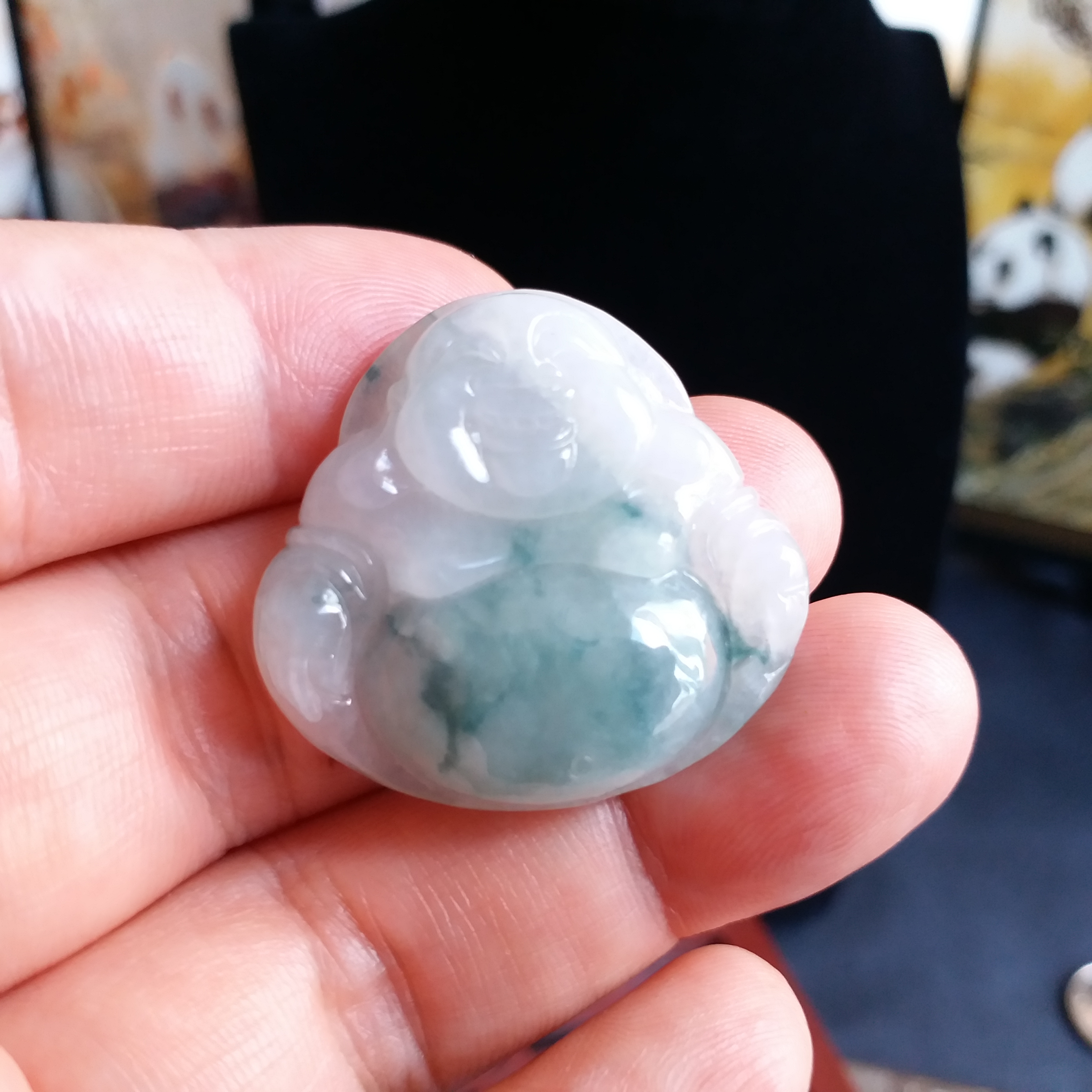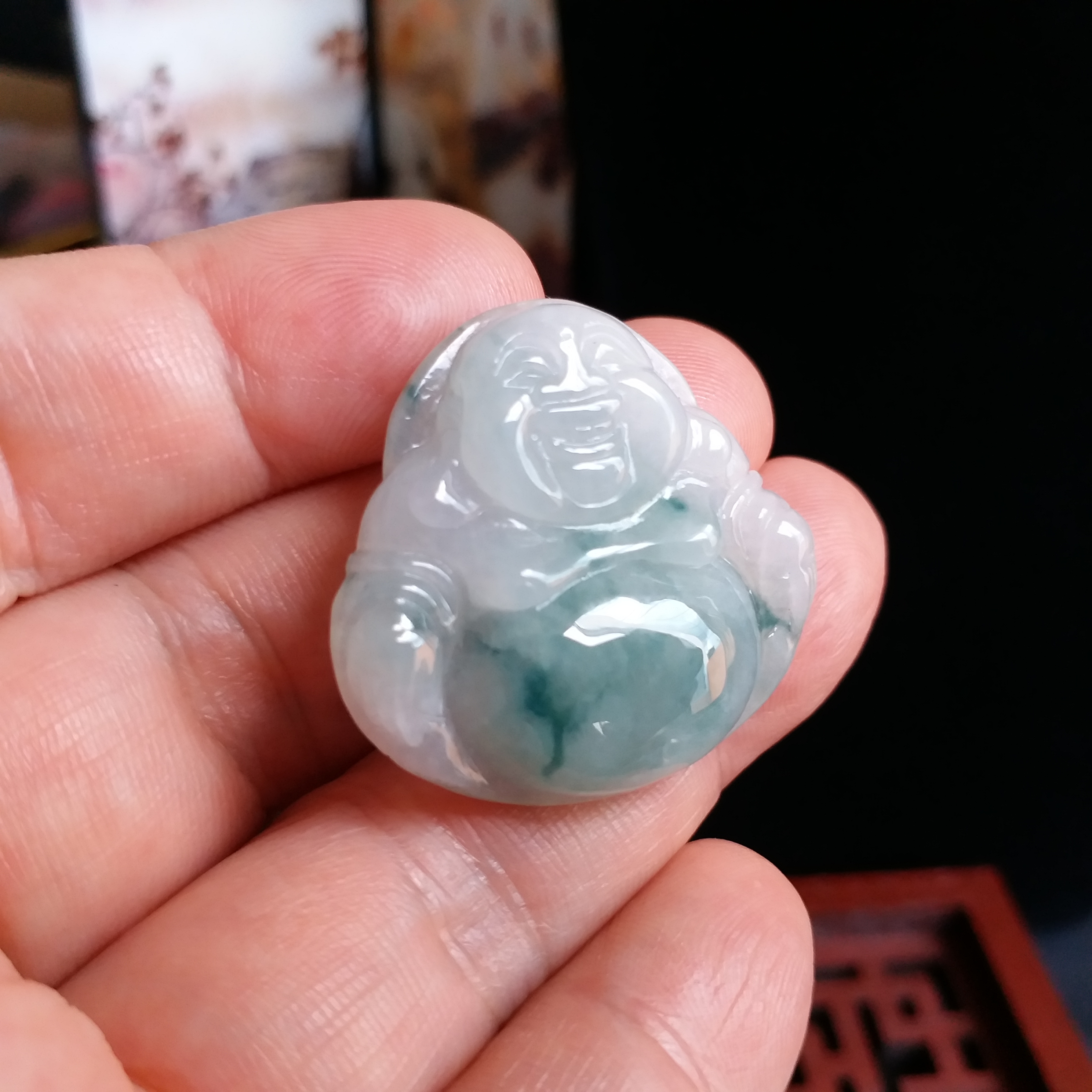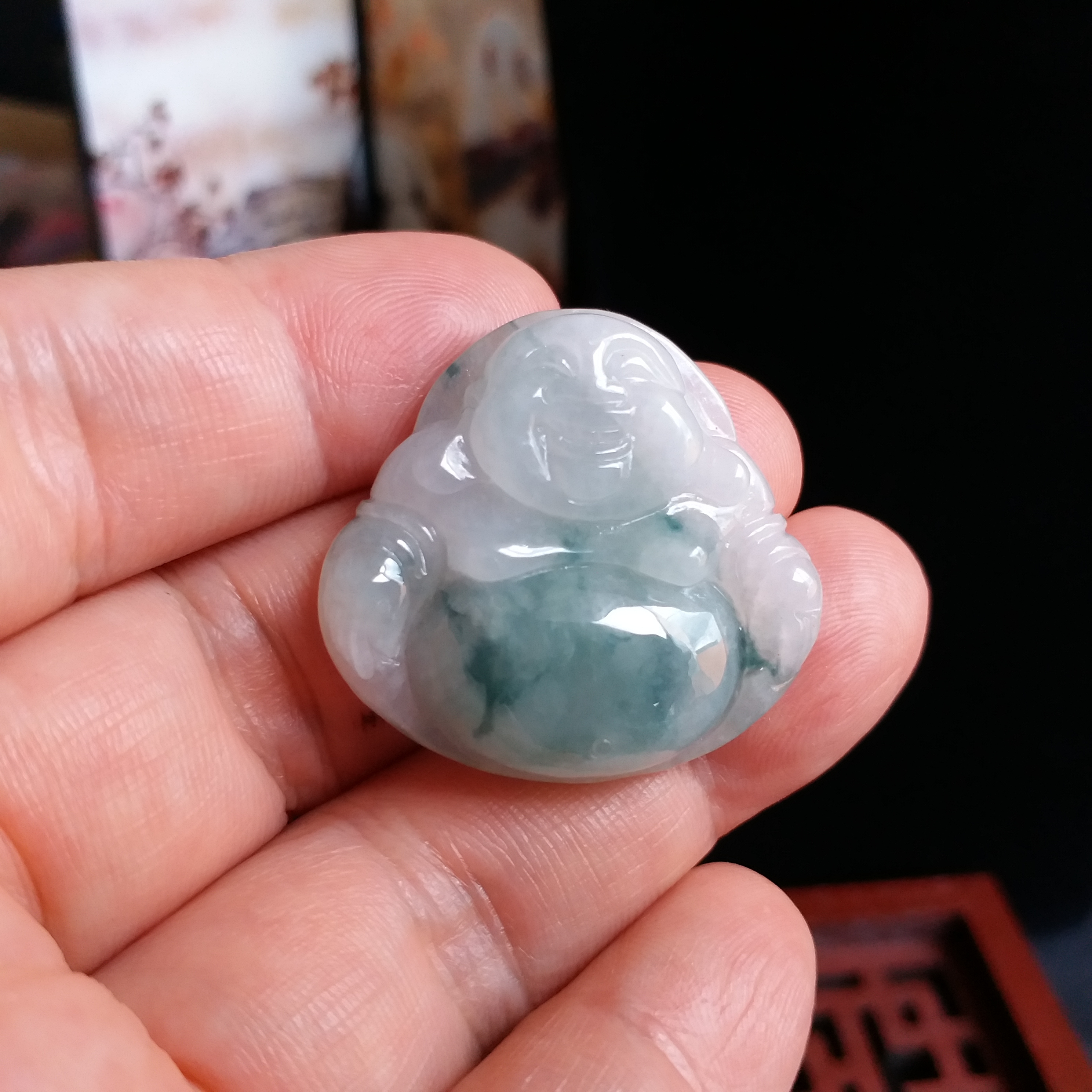 • 冰飄花笑佛吊墜, 天然翡翠A玉, 緬甸玉, Jade, Jadeite