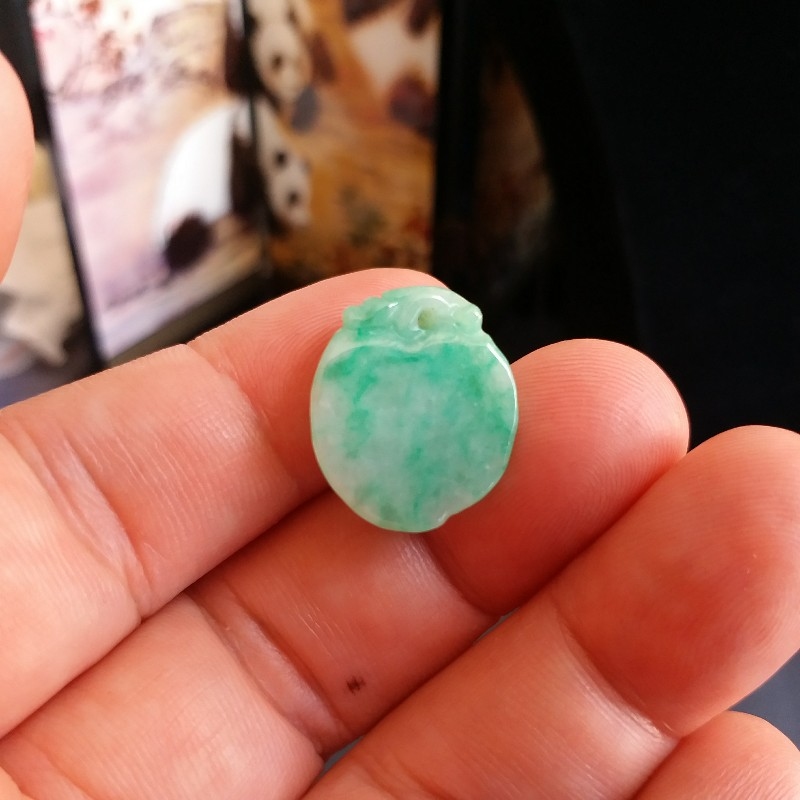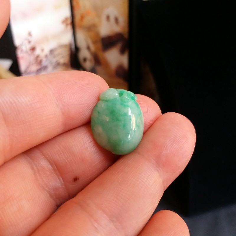 • 冰糯滿綠壽桃吊墜, 天然翡翠A玉, 緬甸玉, Jade, Jadeite
