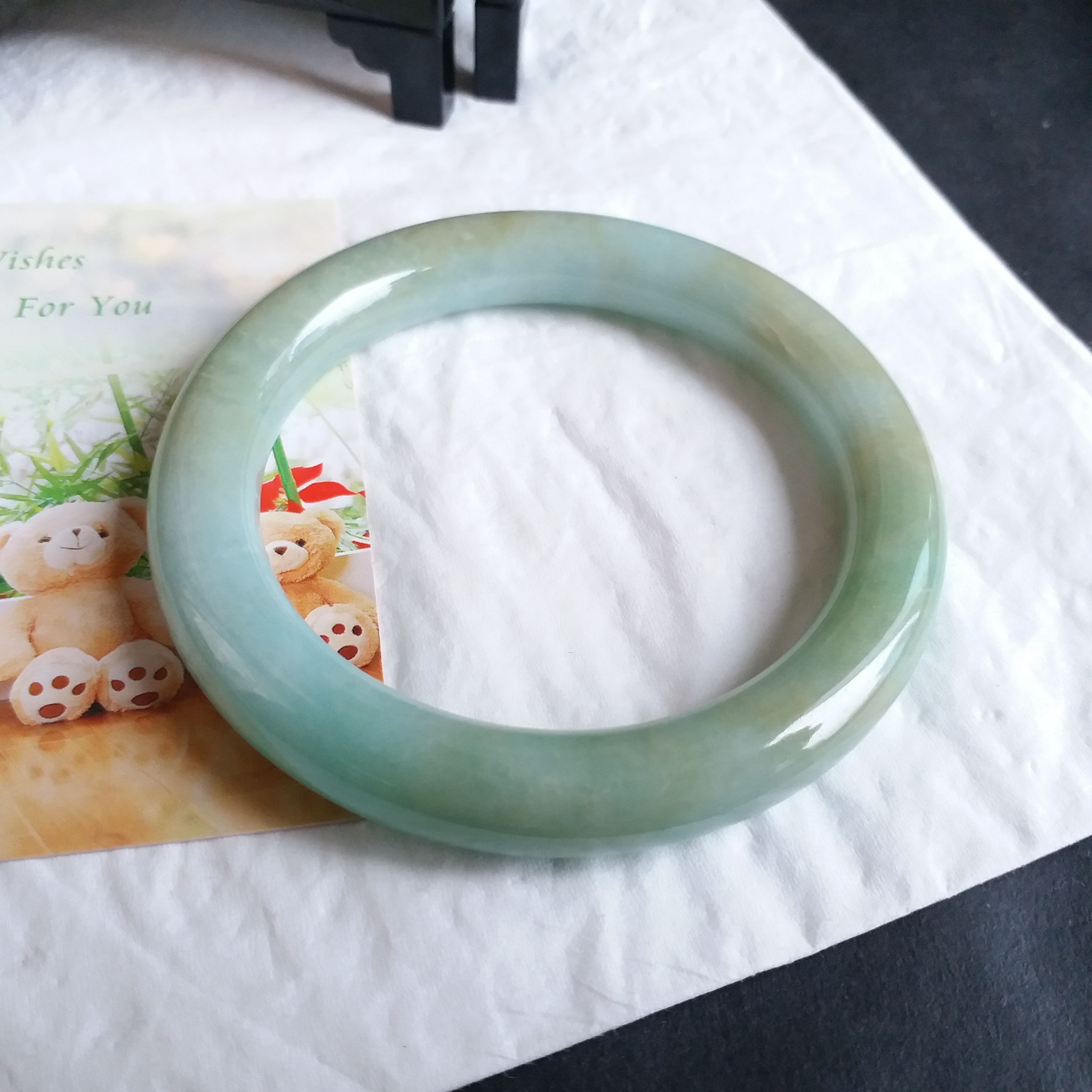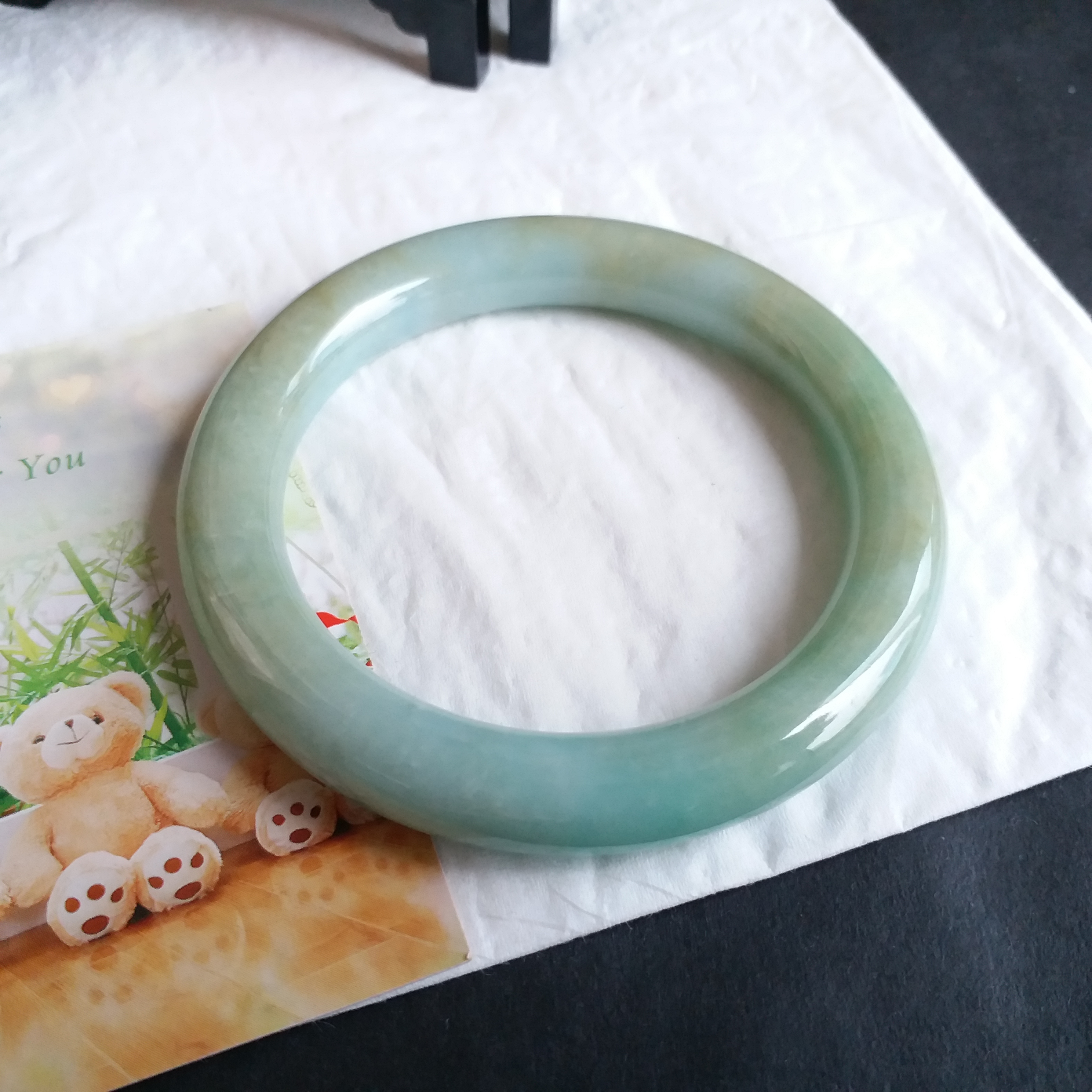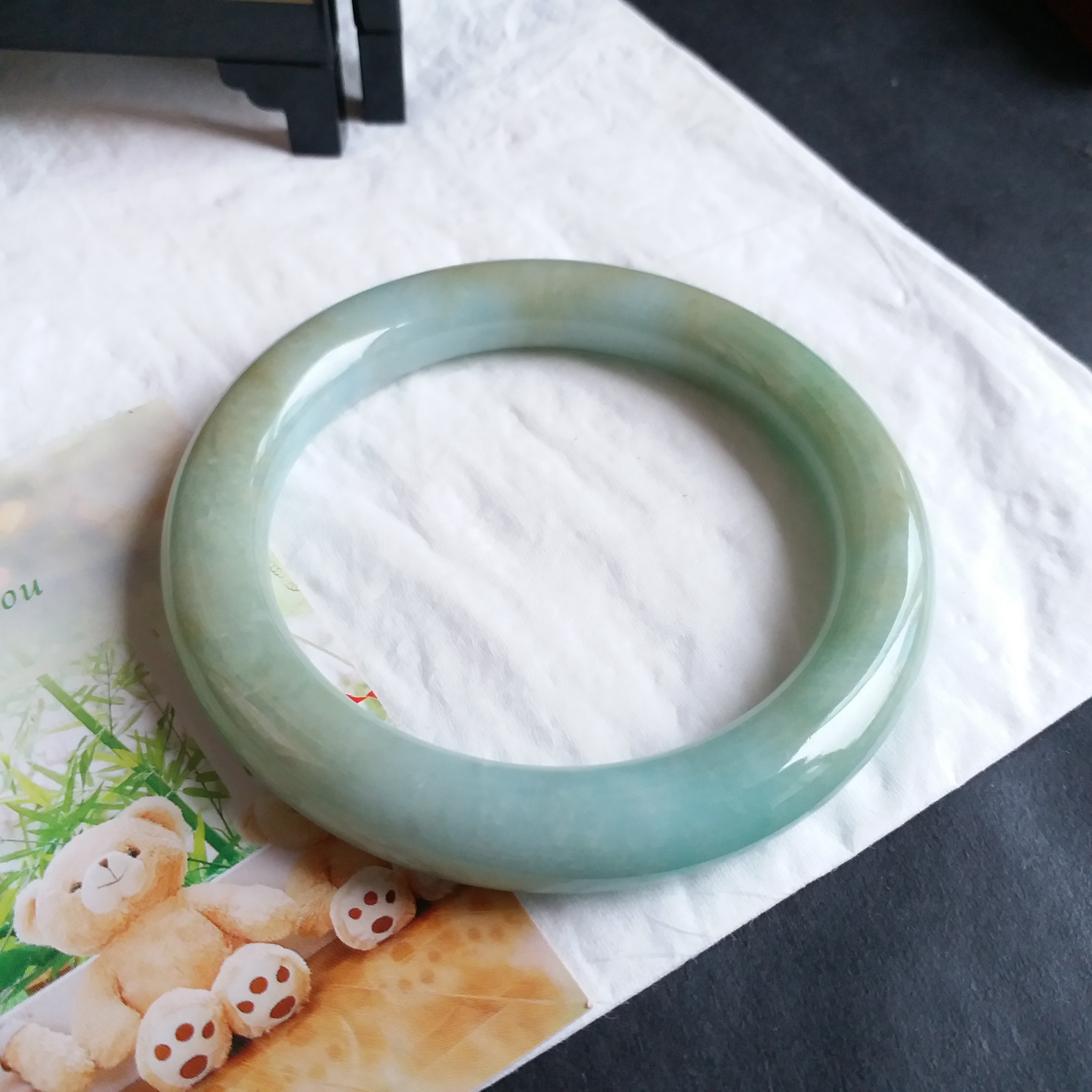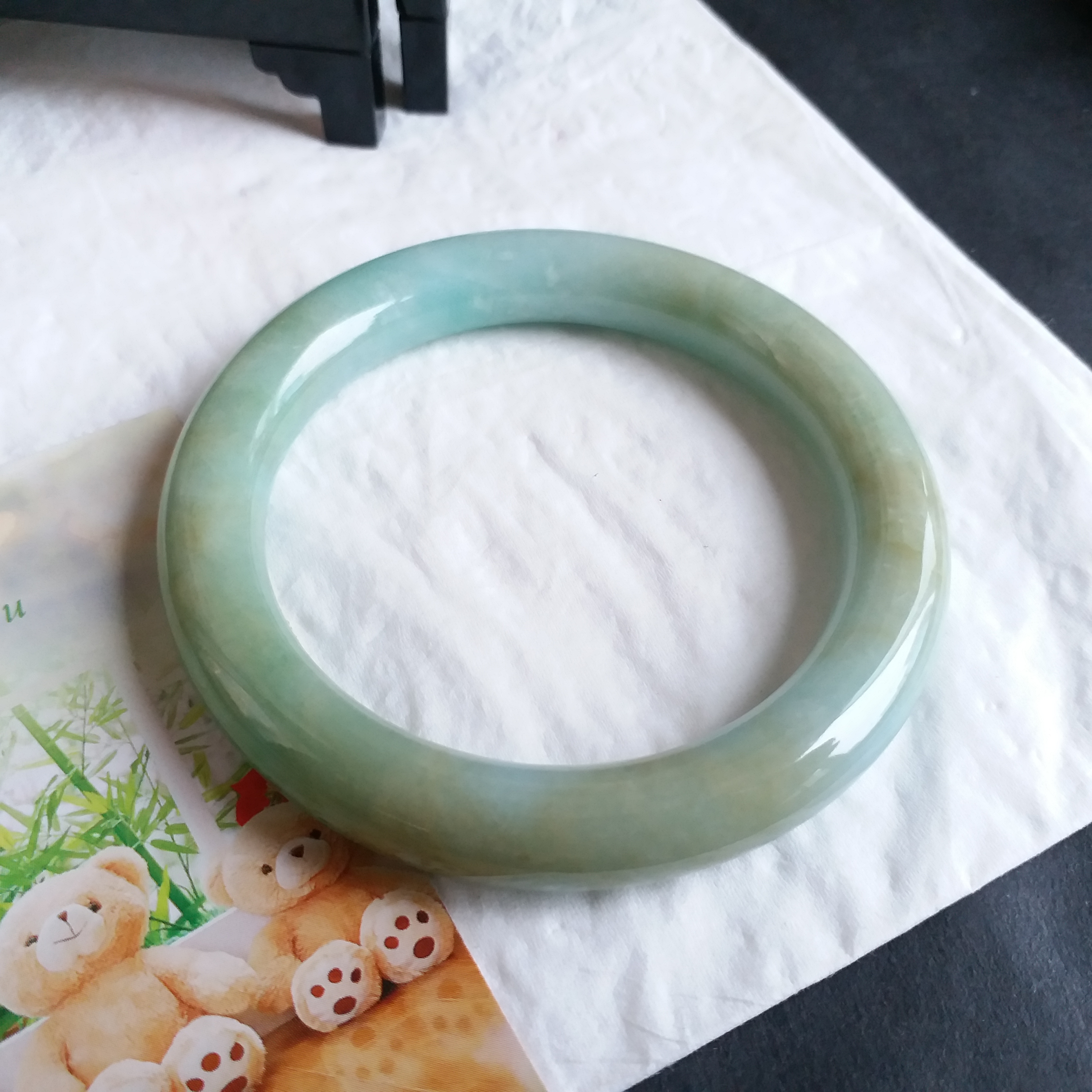 J1081 冰糯蜜黃果綠圓條玉鐲 56mm (1.5)