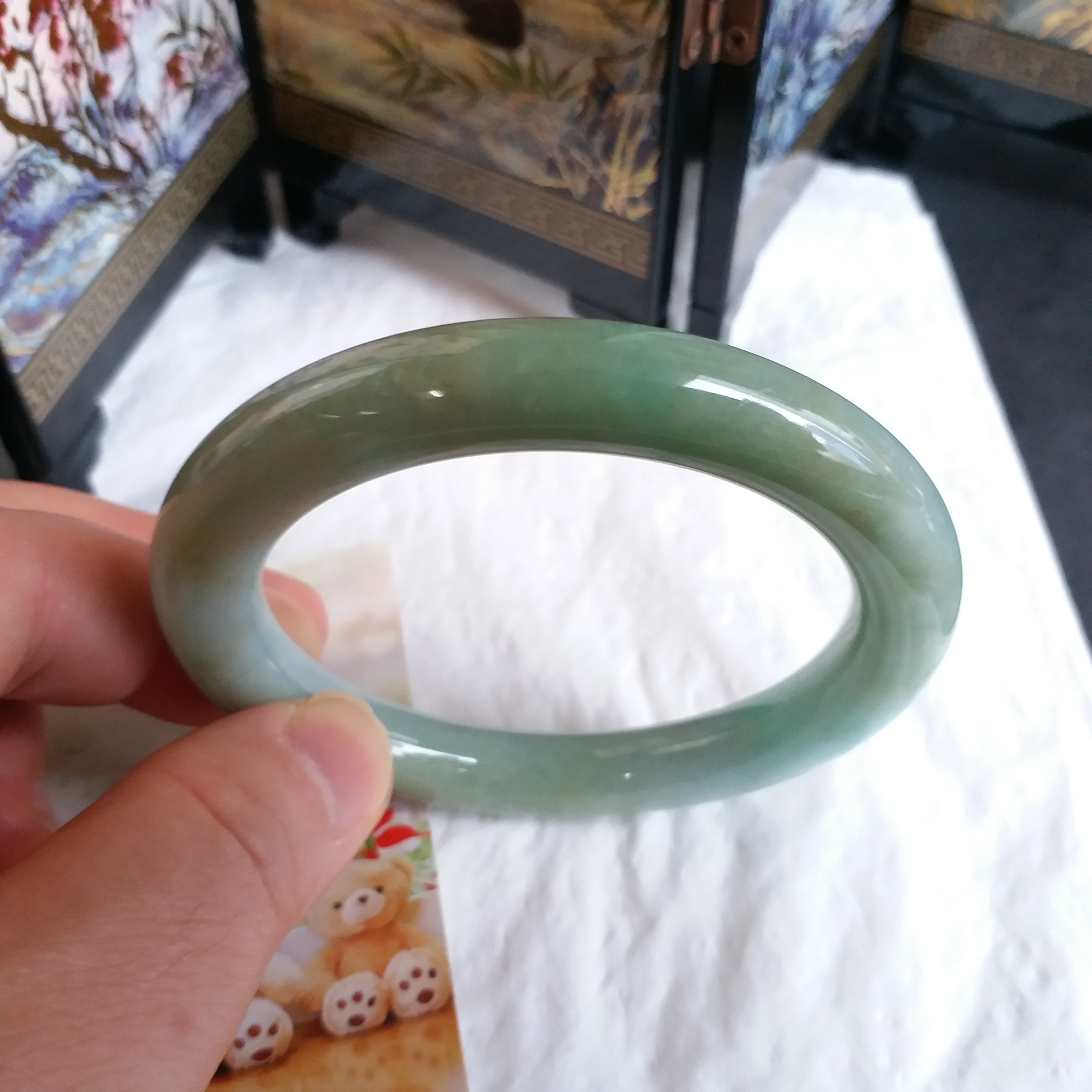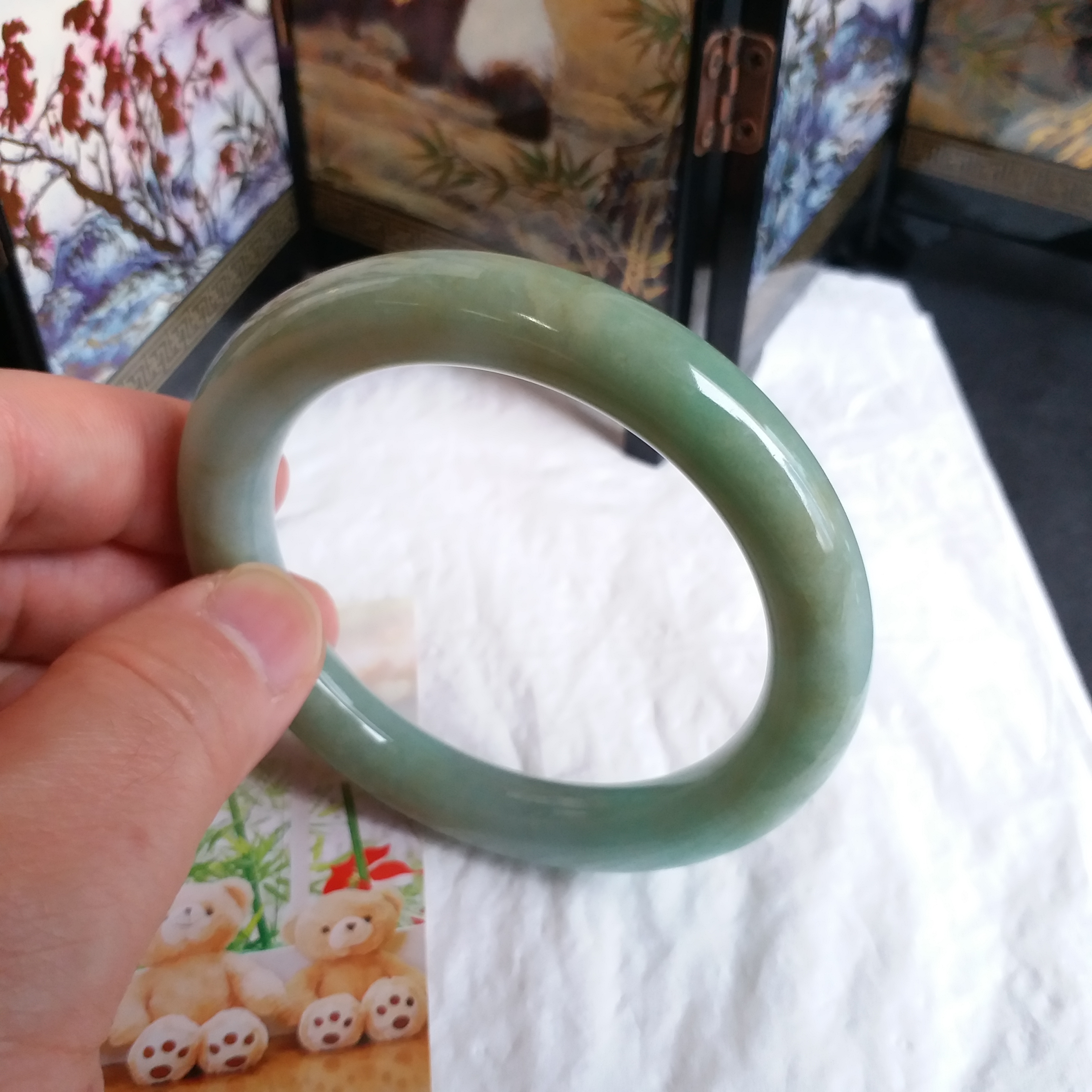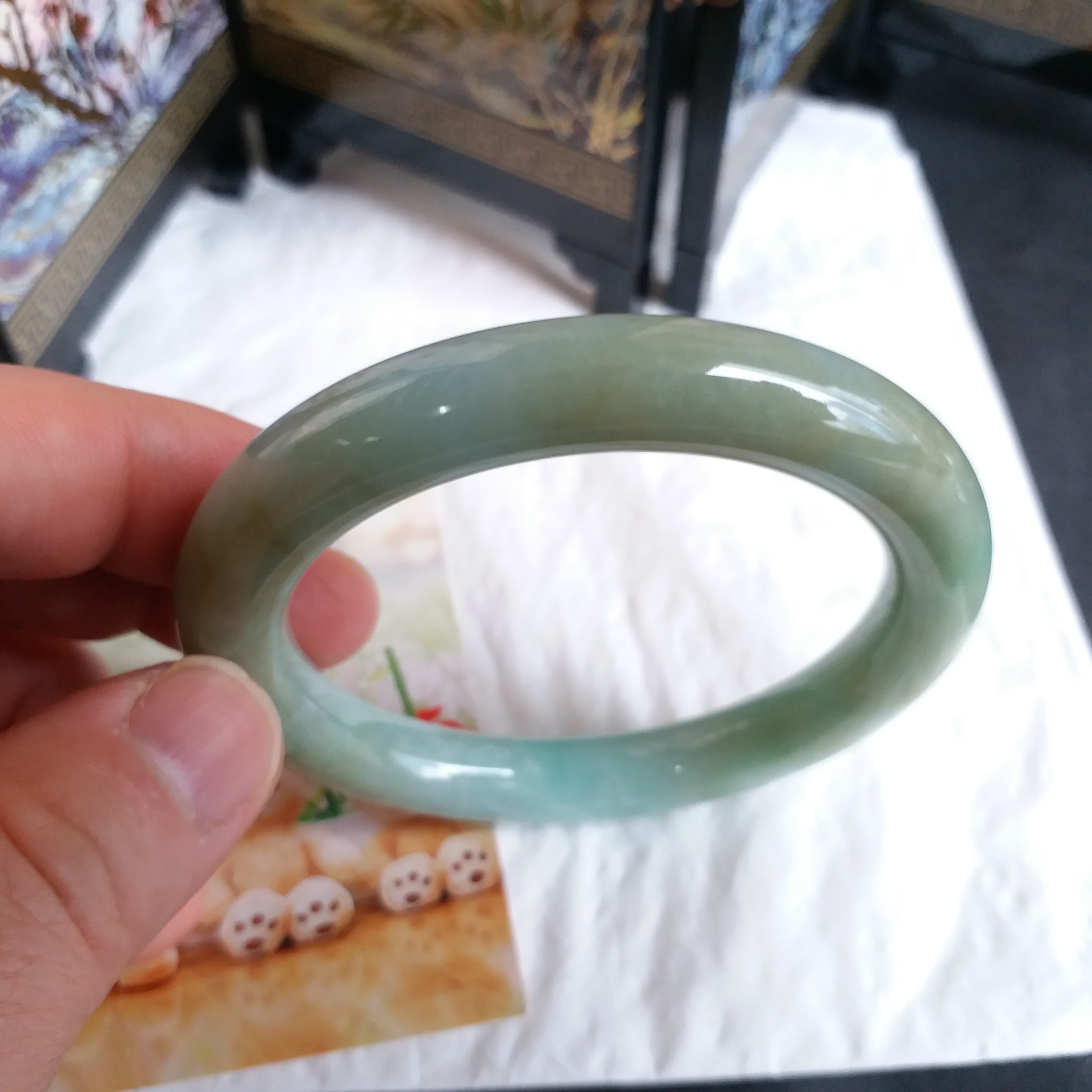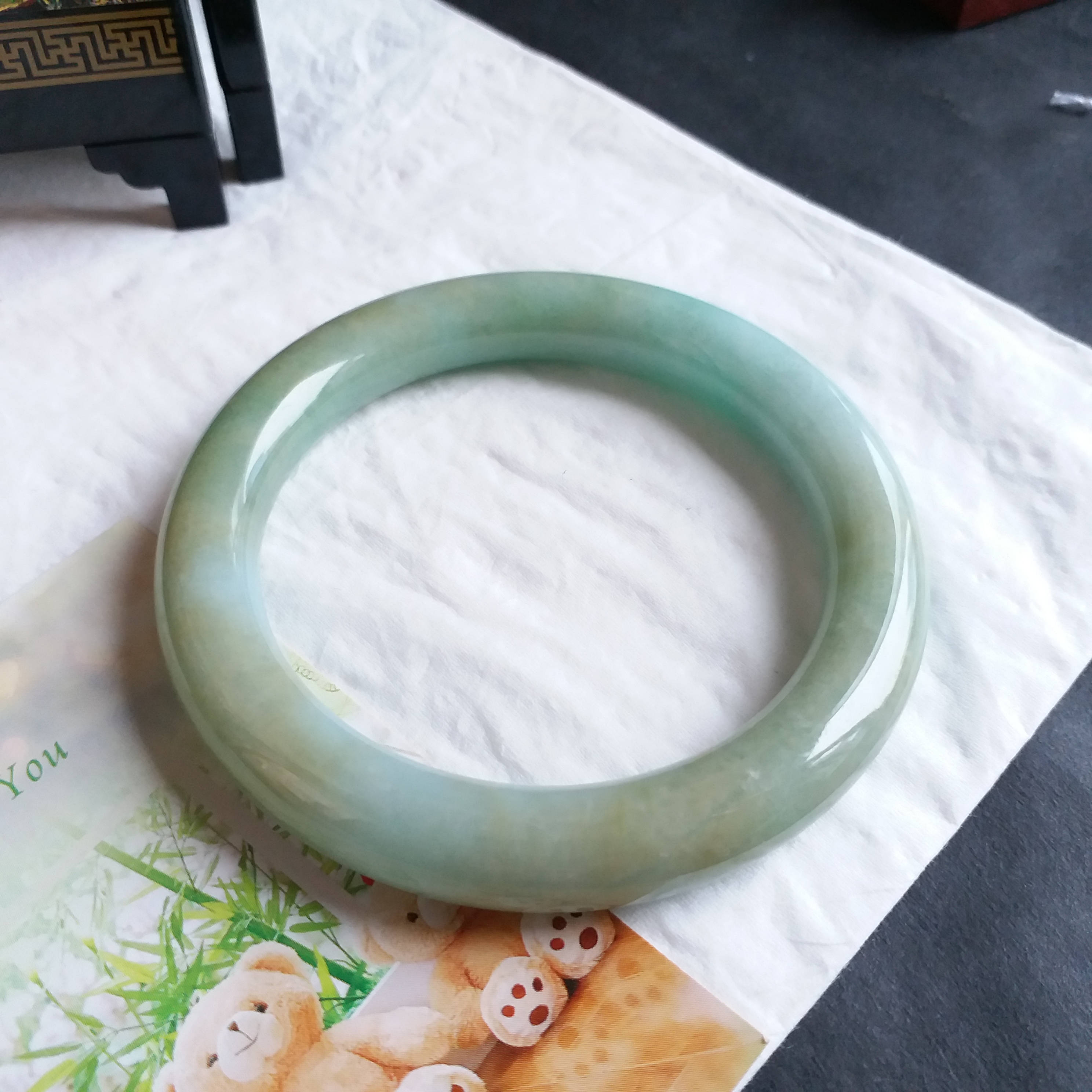 J1081 冰糯蜜黃果綠圓條玉鐲 56mm (1.5)