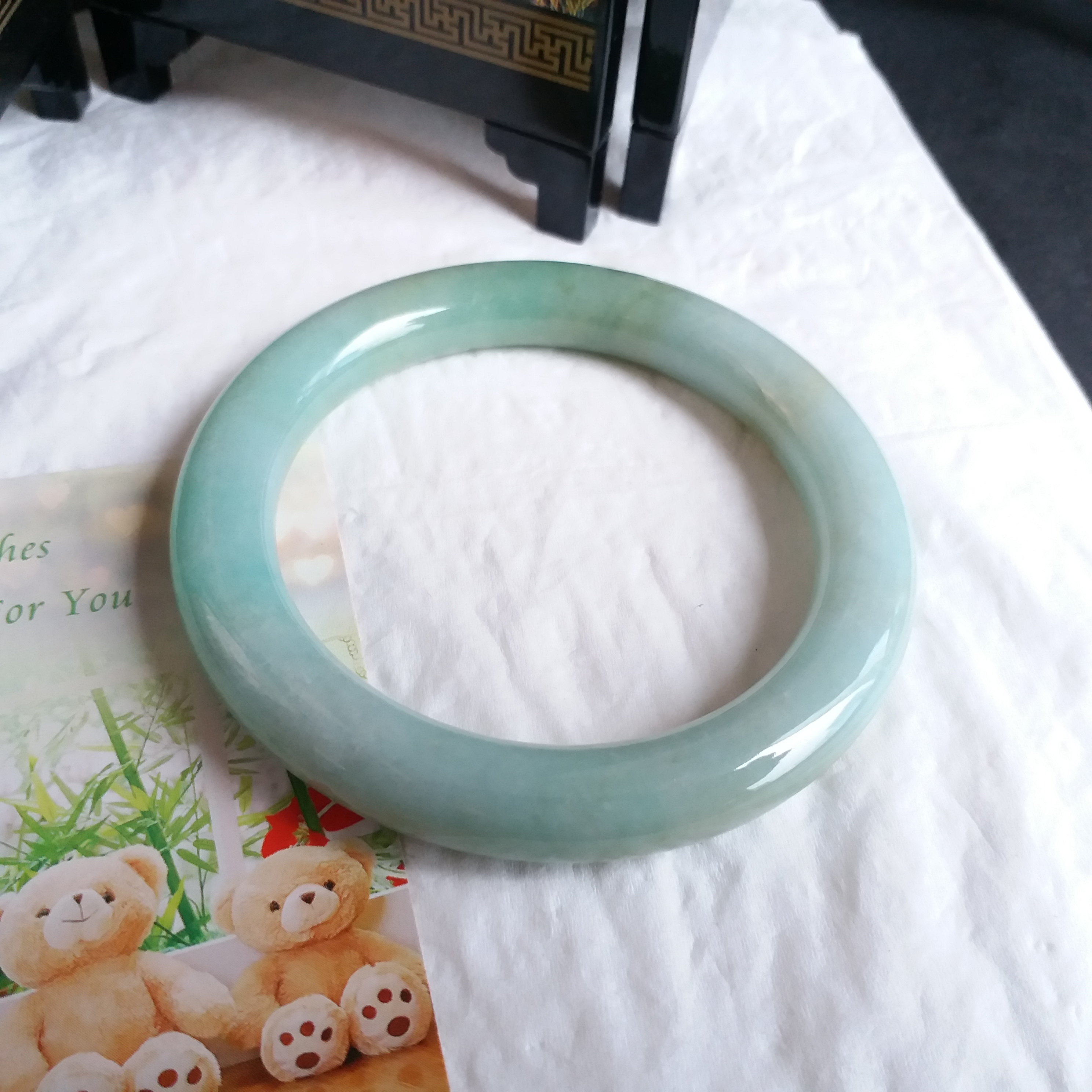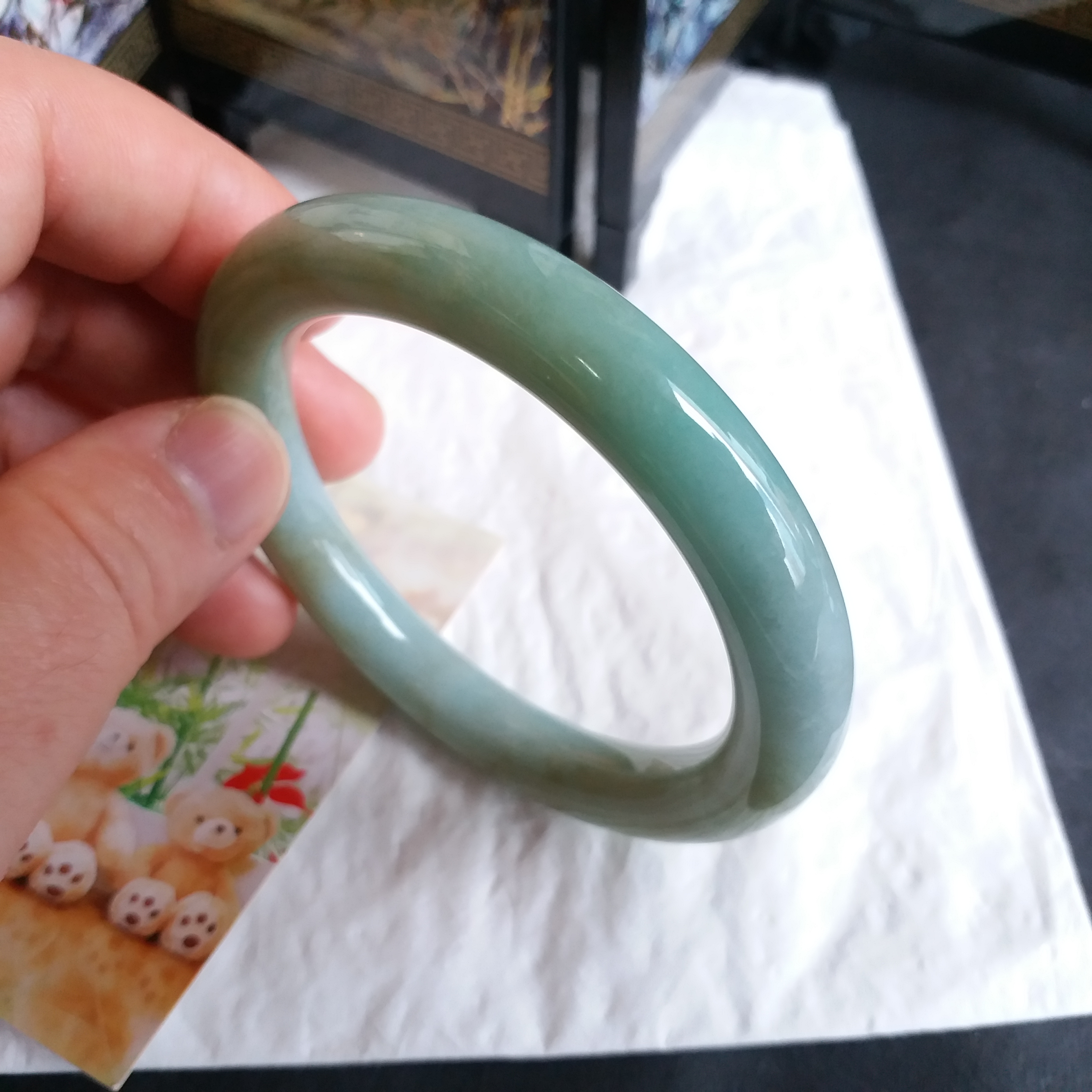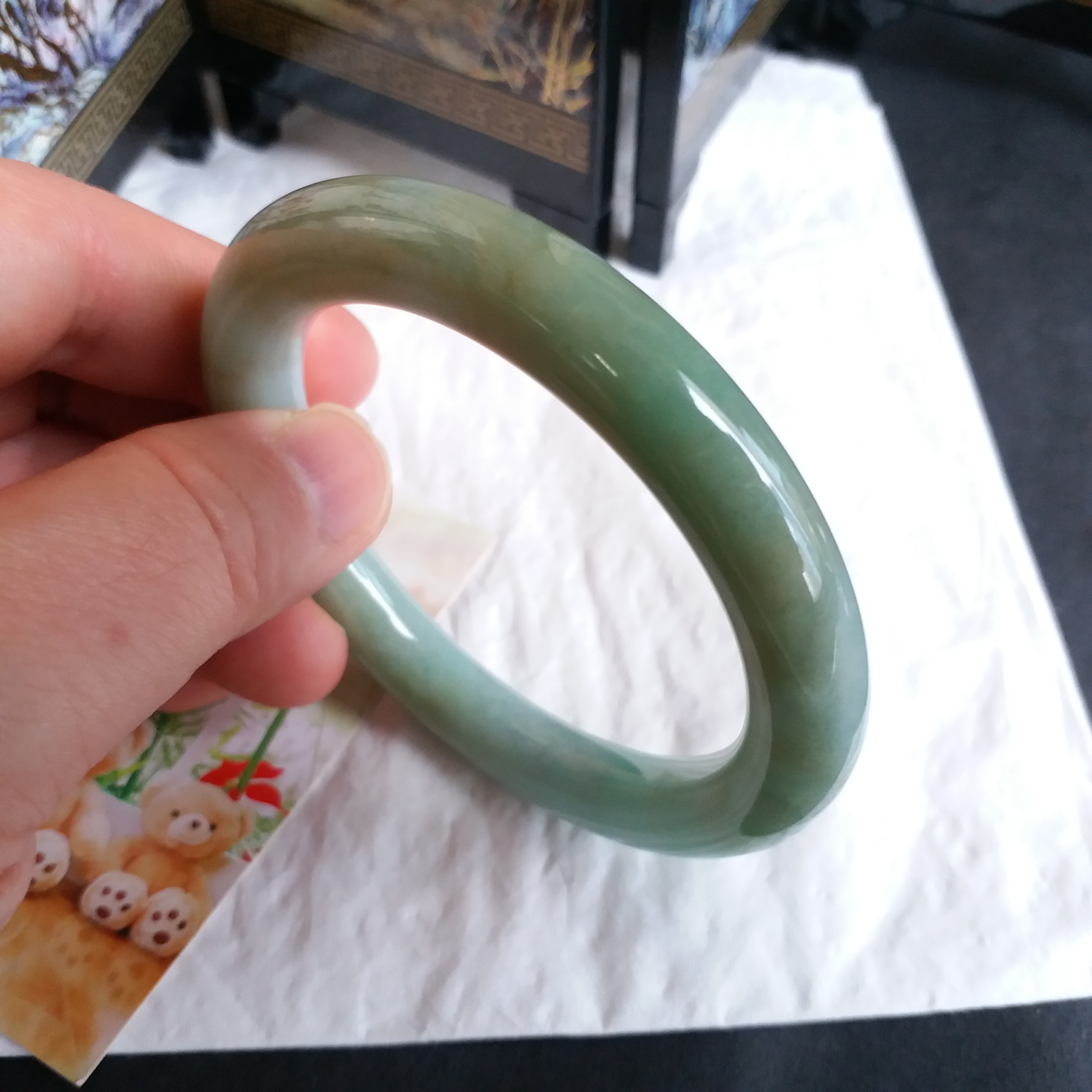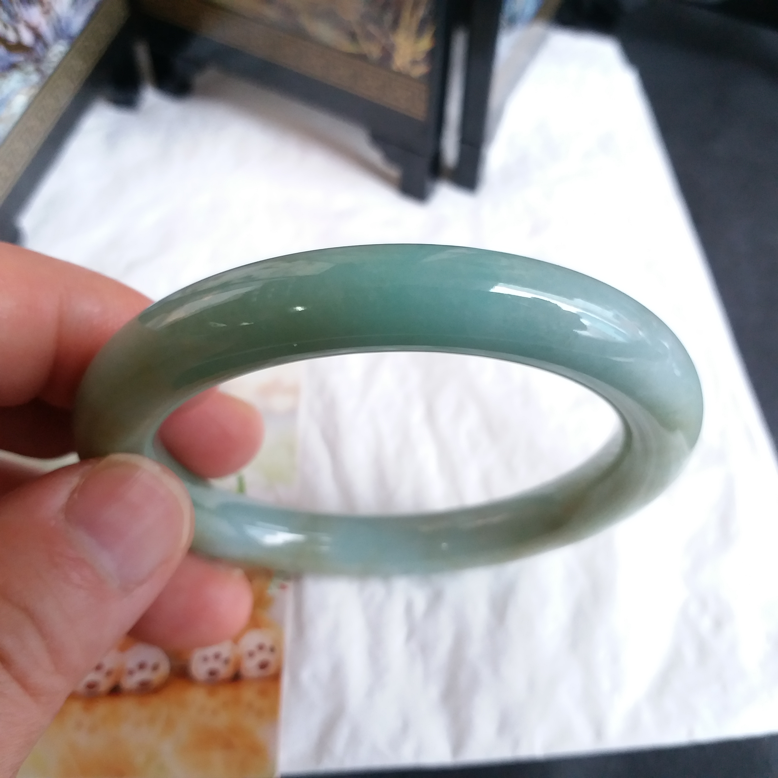 J1081 冰糯蜜黃果綠圓條玉鐲 56mm (1.5)