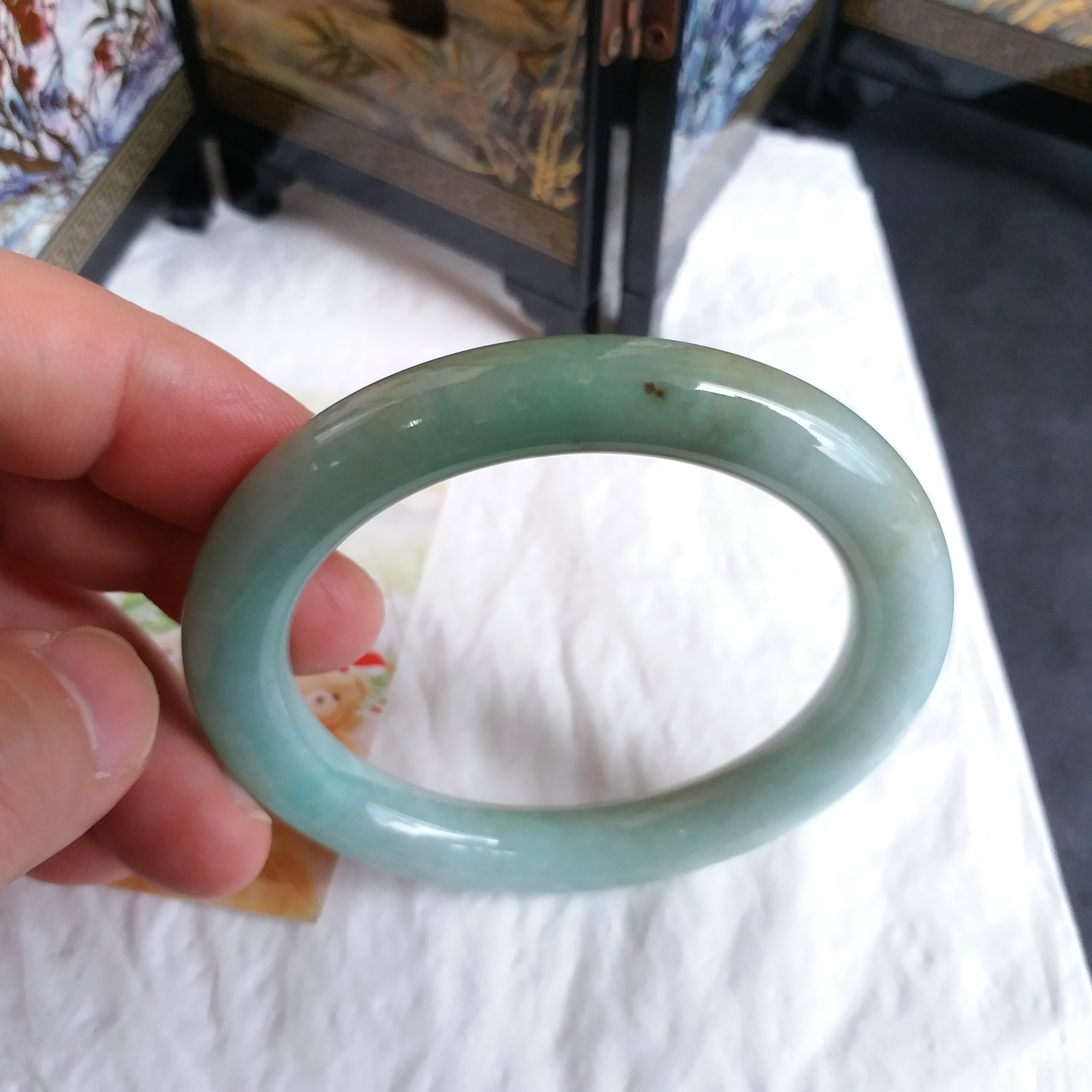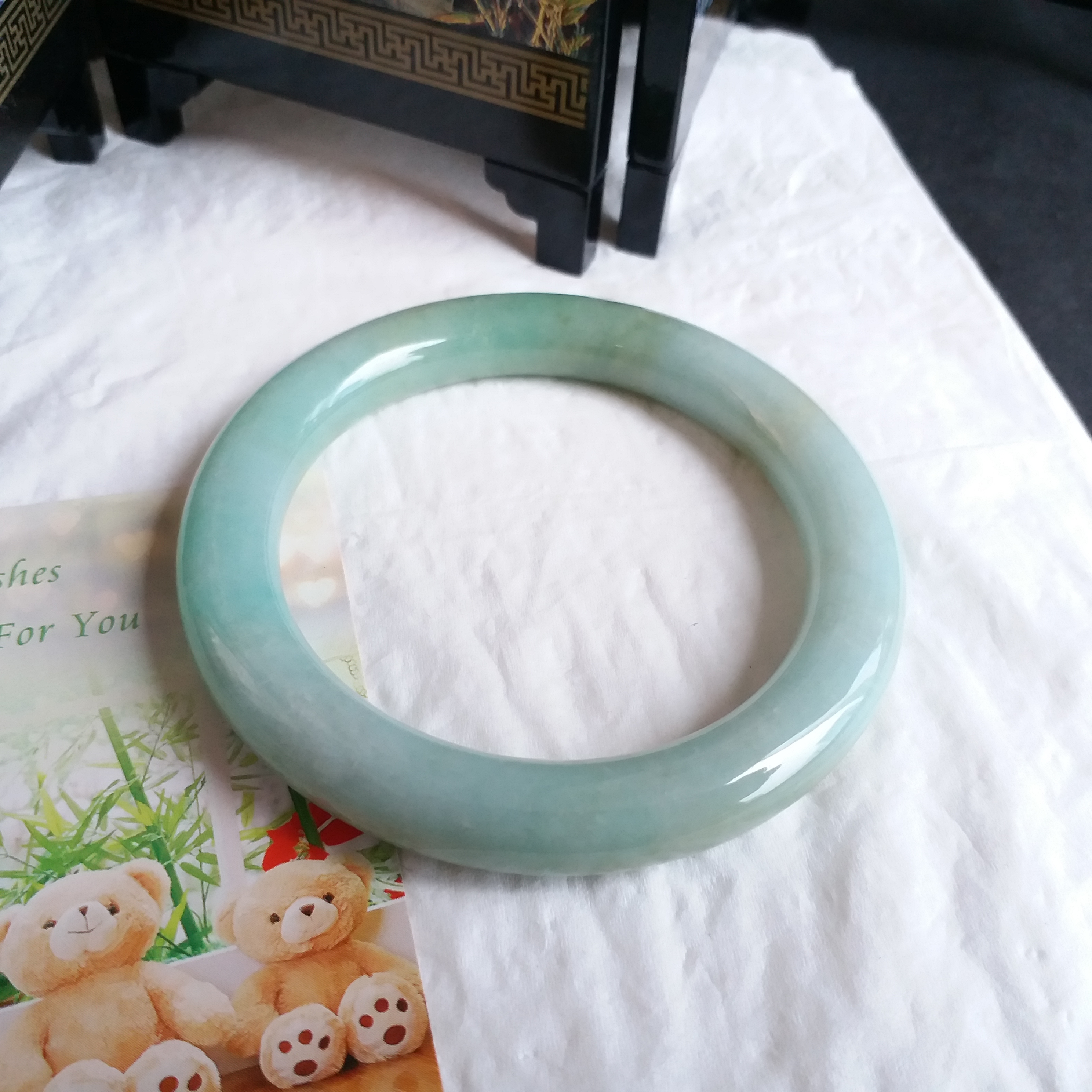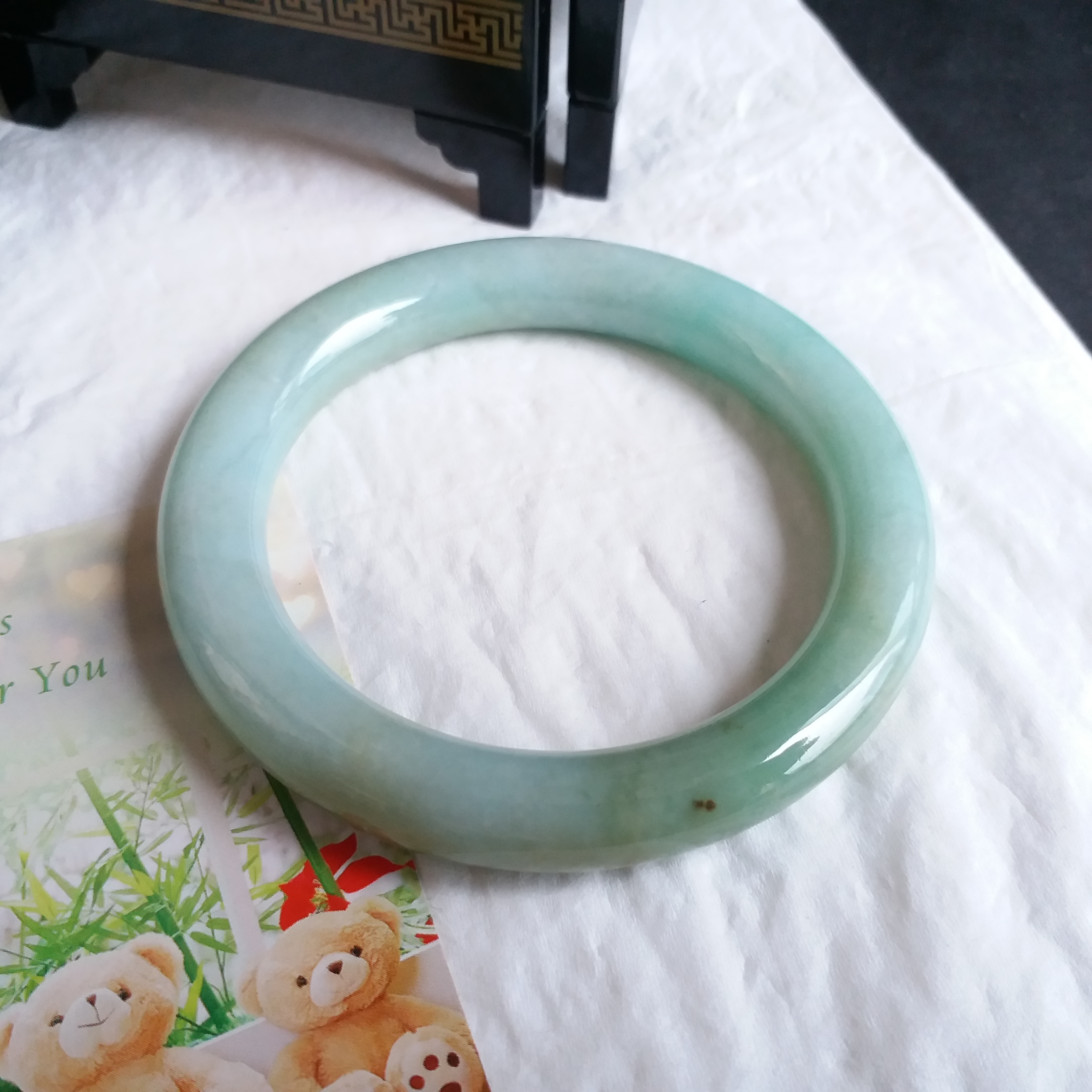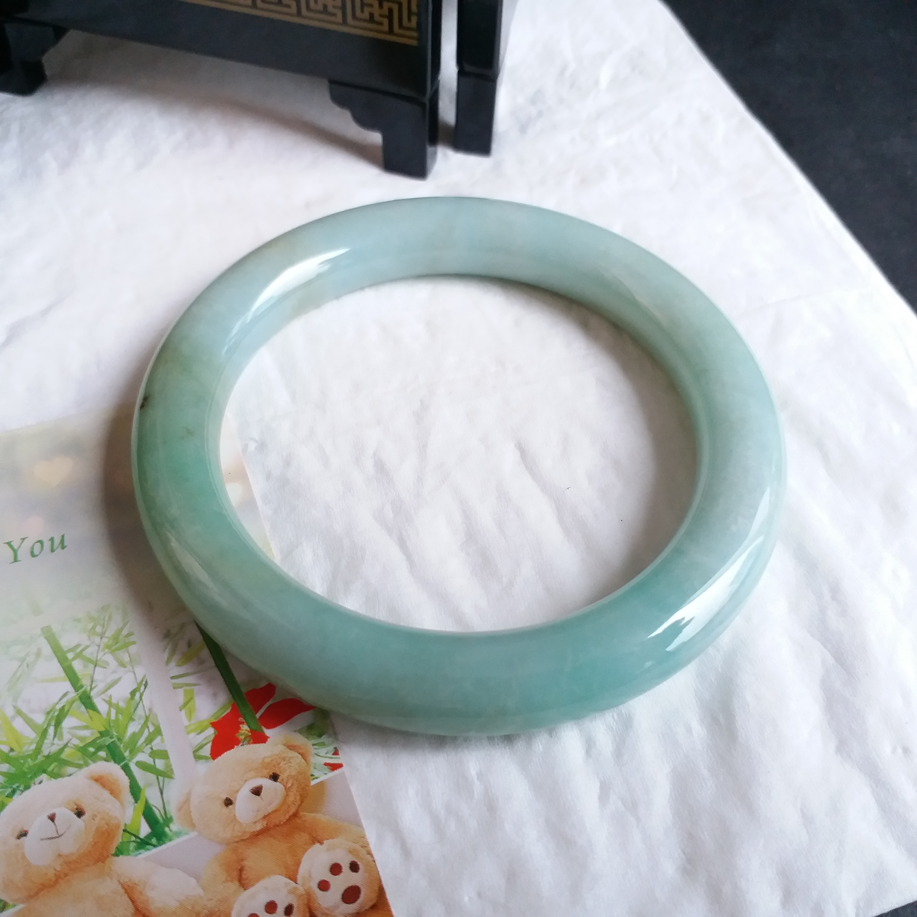J1081 冰糯蜜黃果綠圓條玉鐲 56mm (1.5)