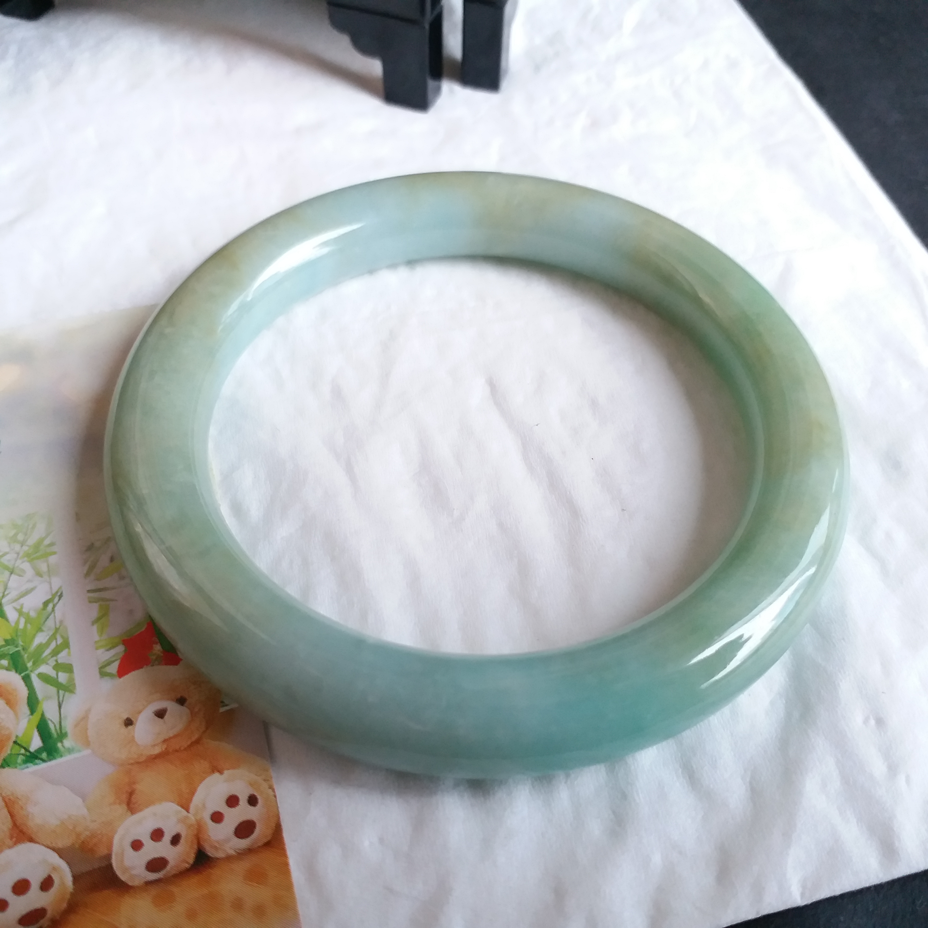 J1081 冰糯蜜黃果綠圓條玉鐲